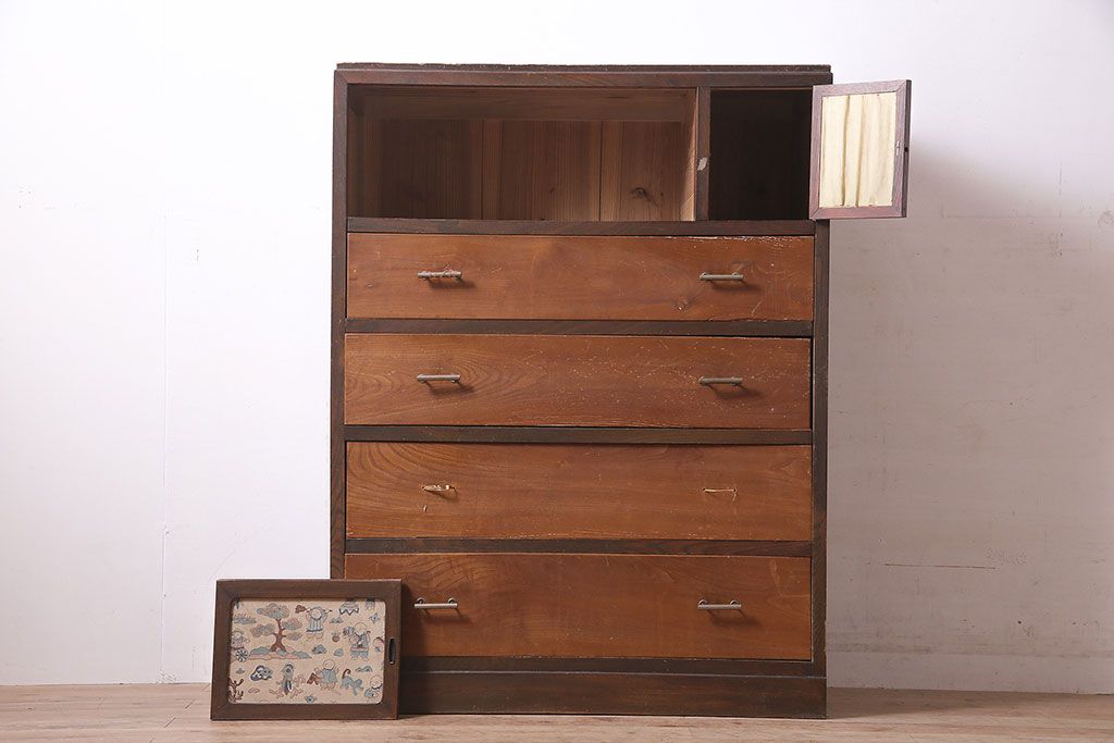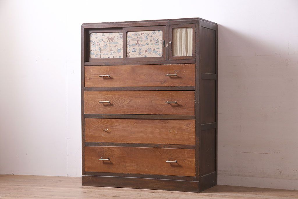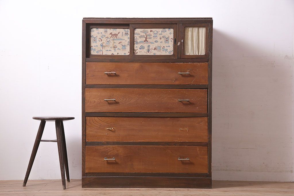 レトロ家具 戸棚付き 昭和レトロな雰囲気たっぷりのタンス(引き出し)(R-046965)です。