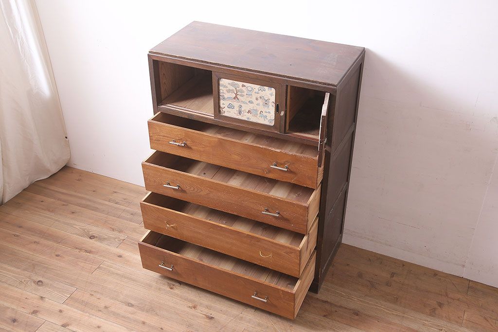 レトロ家具 戸棚付き 昭和レトロな雰囲気たっぷりのタンス(引き出し)(R-046965)