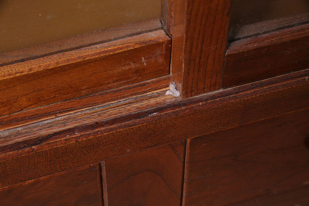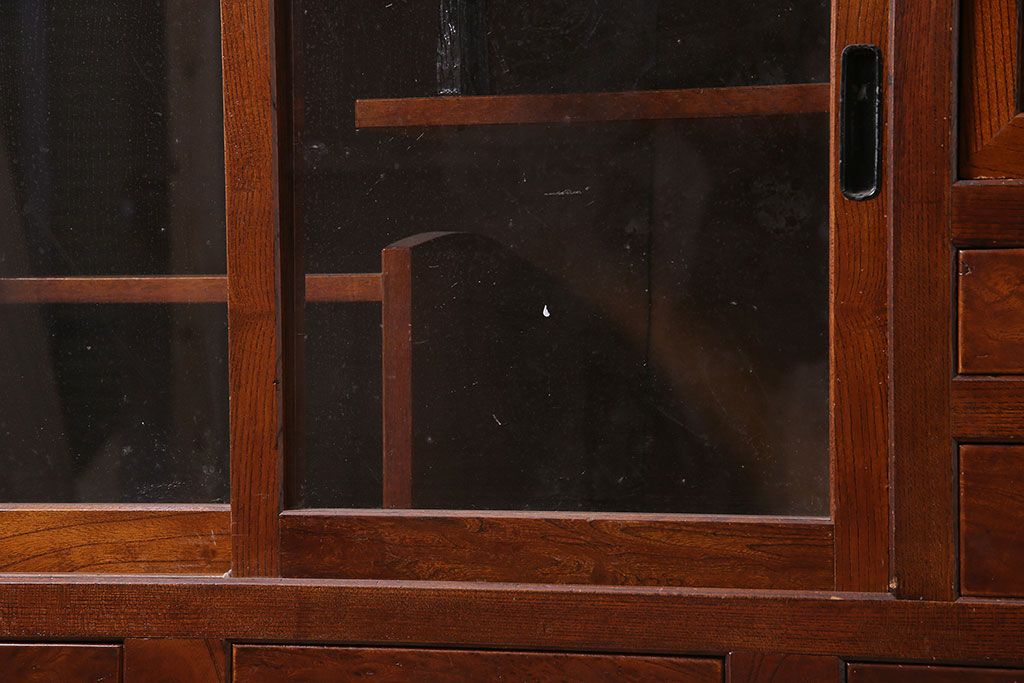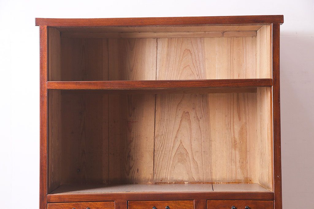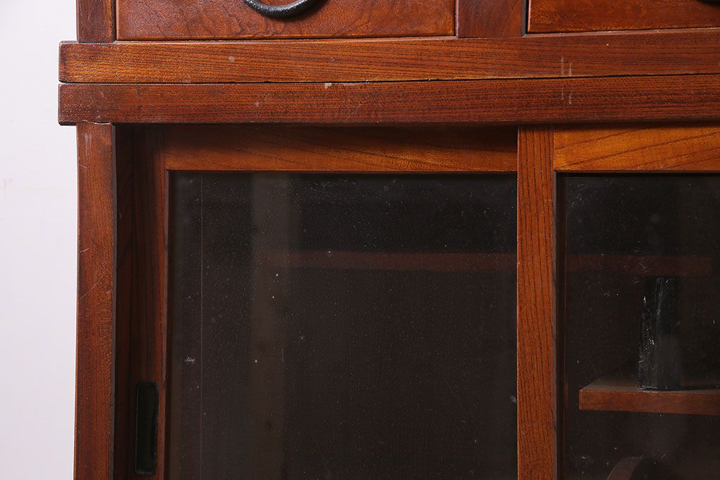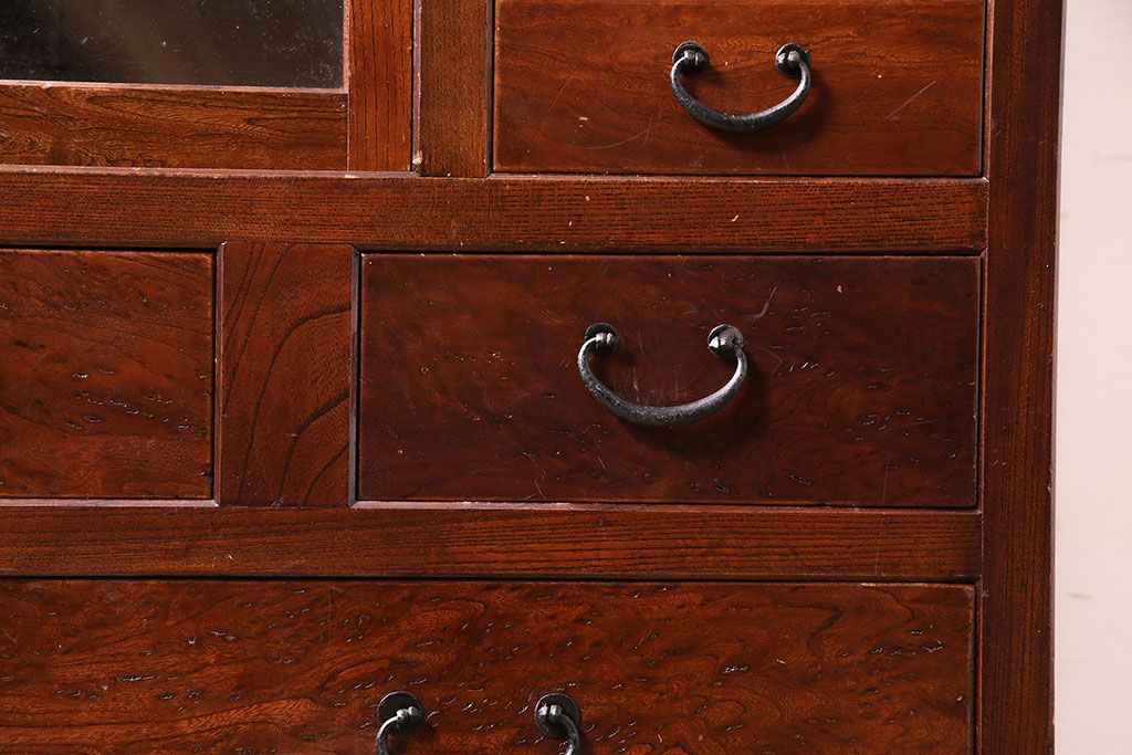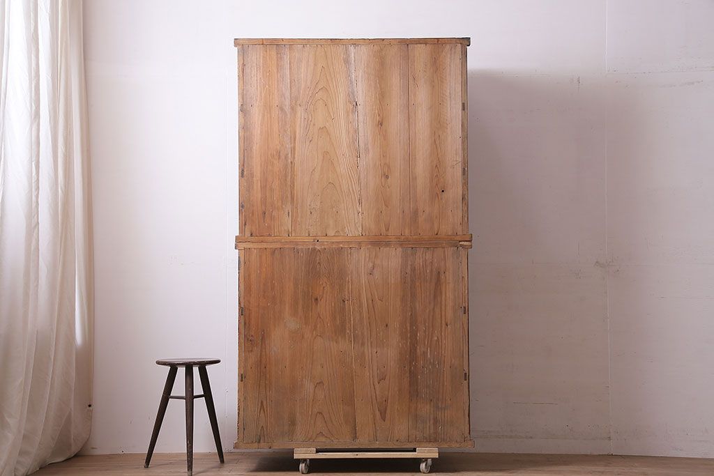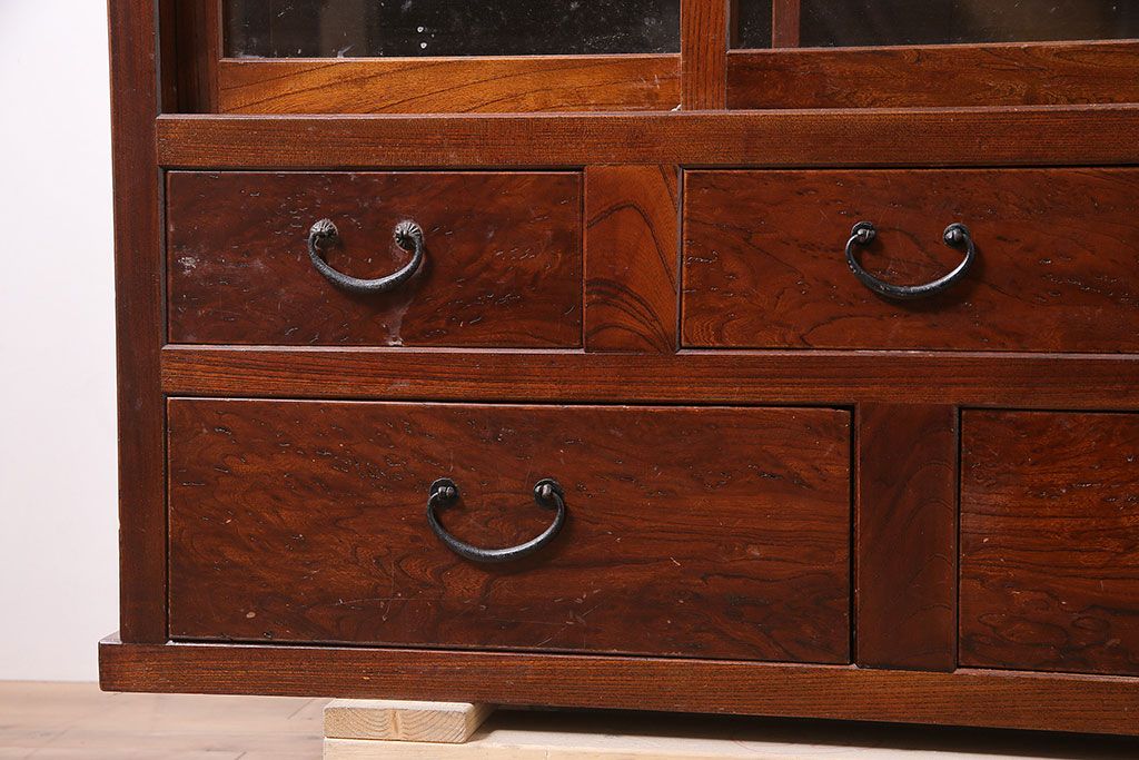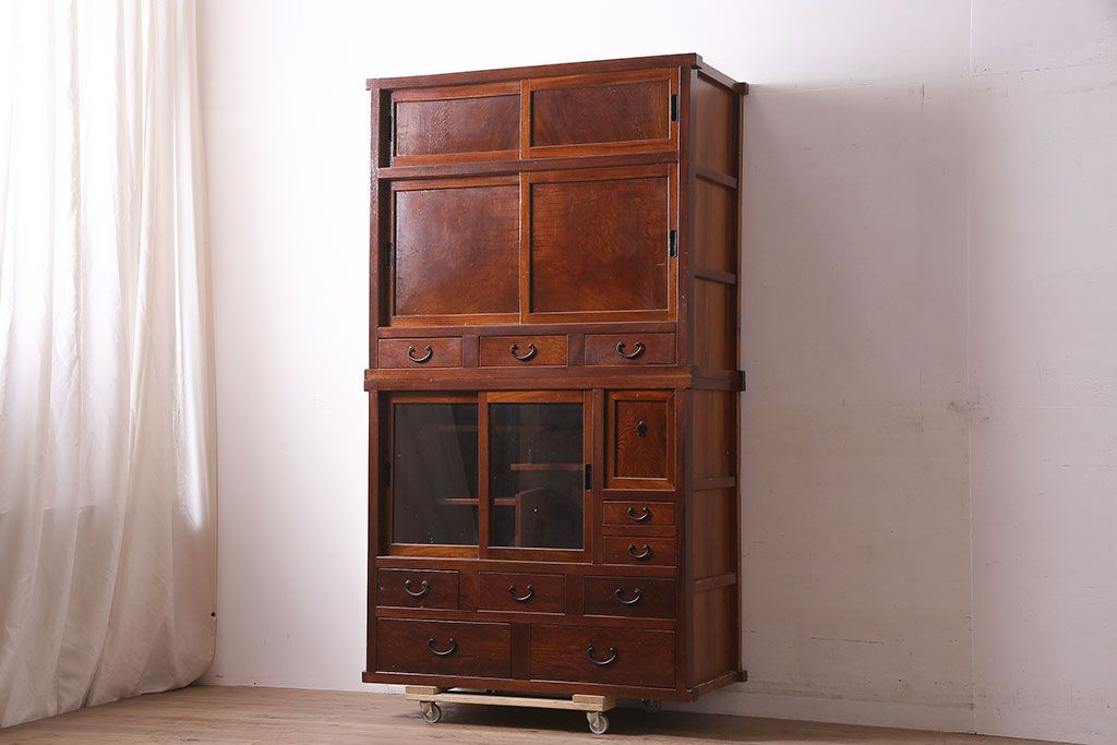 ラフジュ工房> キャビネット・戸棚> 食器棚・カップボード > 和製アンティーク 前面ケヤキ材 力強い杢目が魅力的な関東水屋箪笥(重ね箪笥、収納棚、キャビネット)(R-046968)