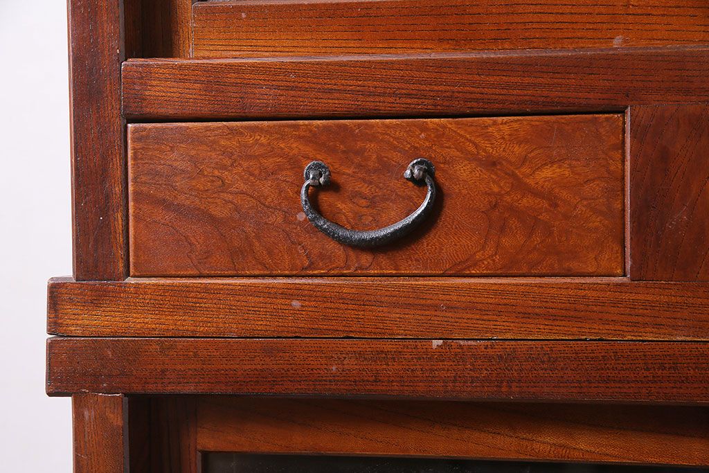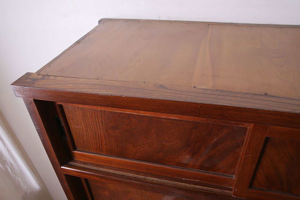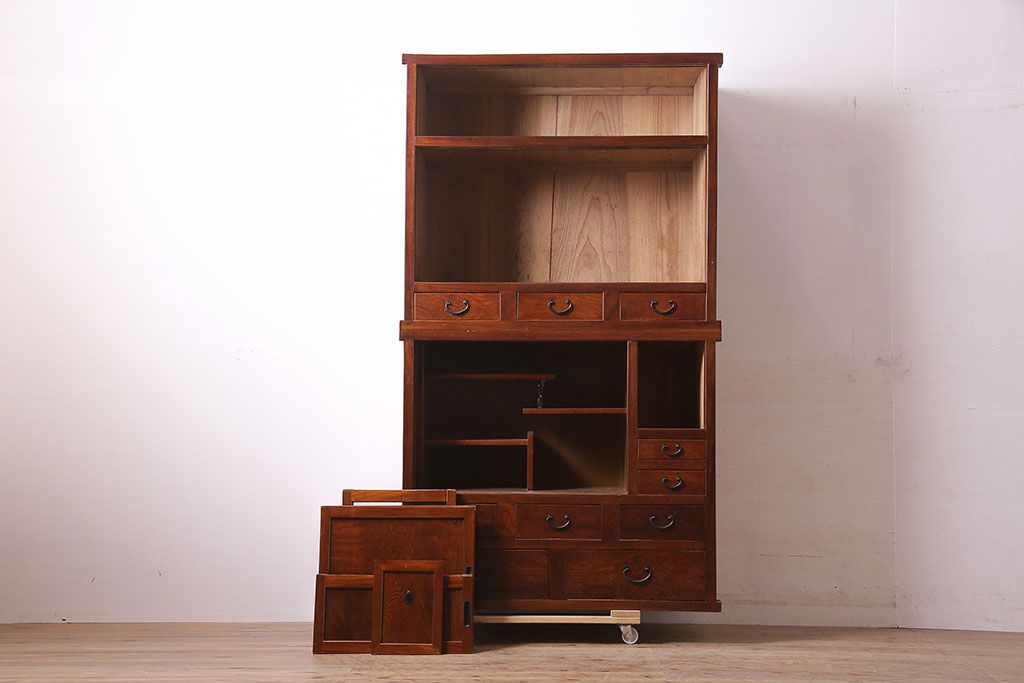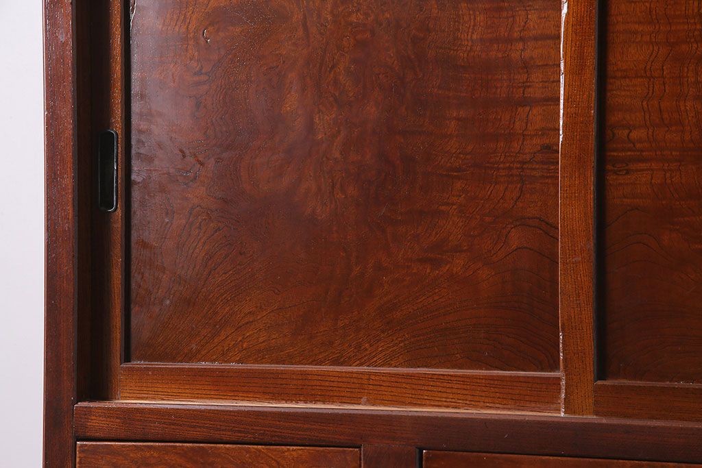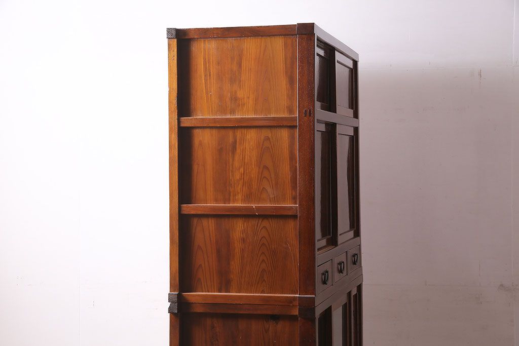 和製アンティーク 前面ケヤキ材 力強い杢目が魅力的な関東水屋箪笥(重ね箪笥、収納棚、キャビネット)(R-046968)