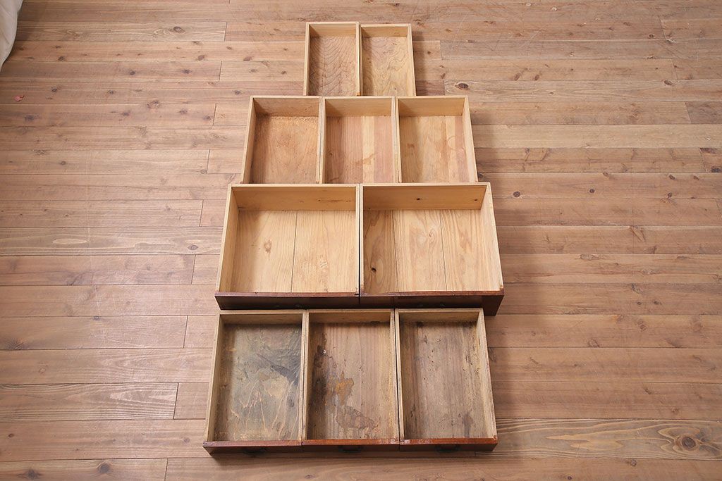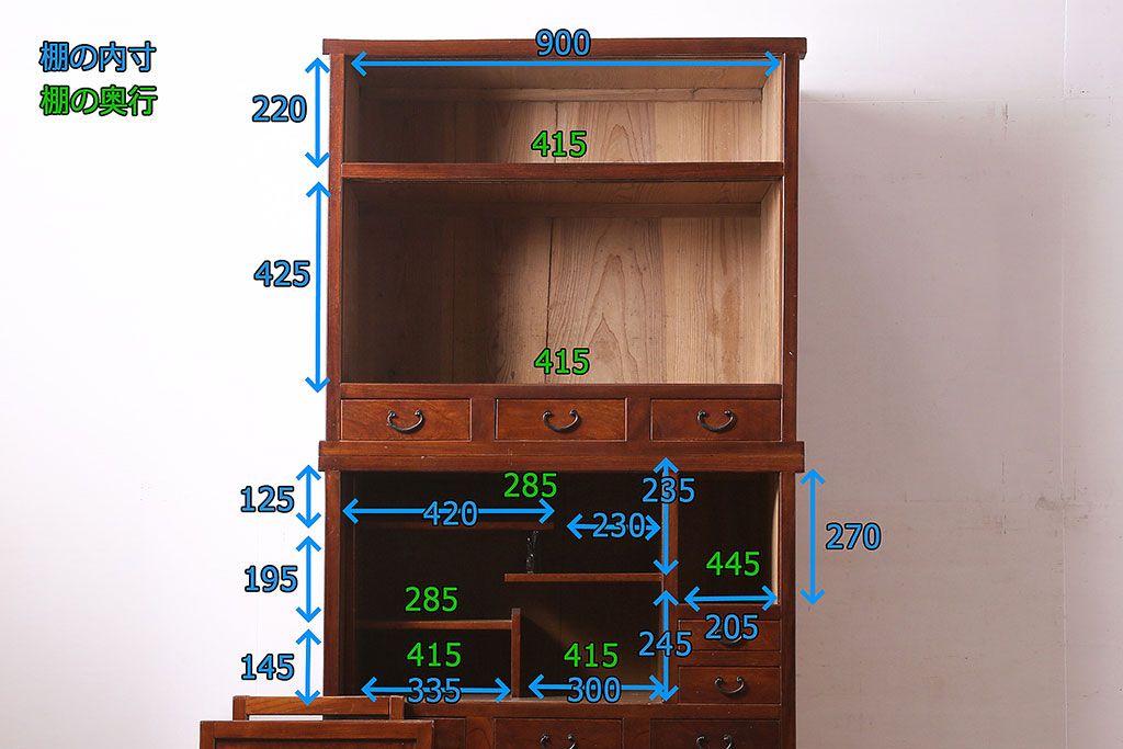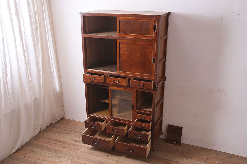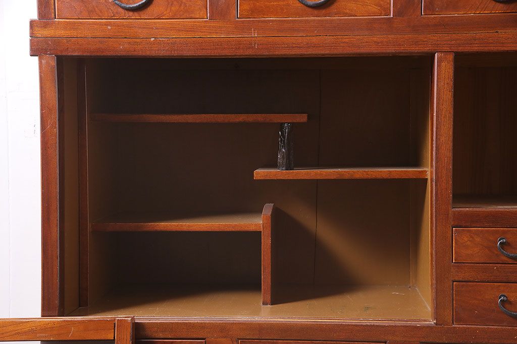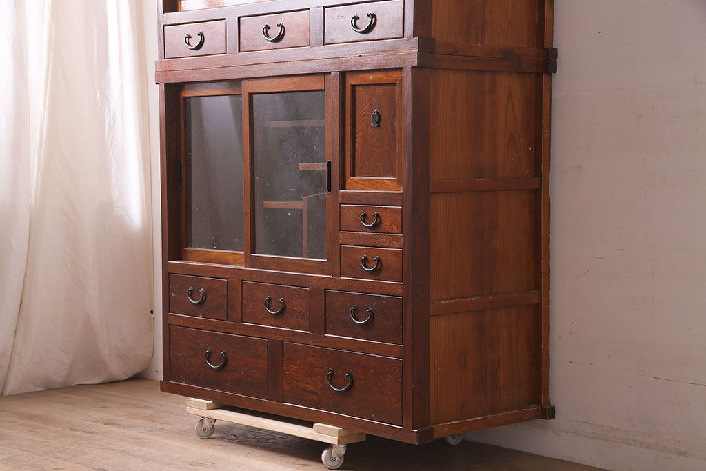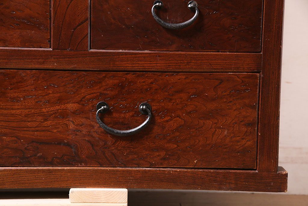 和製アンティーク 前面ケヤキ材 力強い杢目が魅力的な関東水屋箪笥(重ね箪笥、収納棚、キャビネット)(R-046968)
