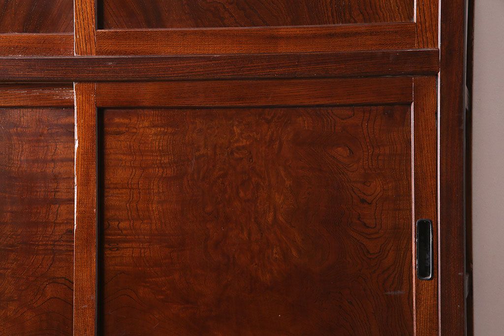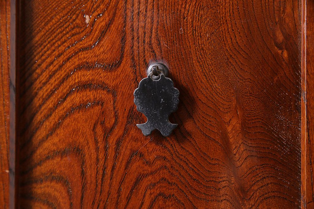ラフジュ工房> 和箪笥> 水屋箪笥 > 和製アンティーク 前面ケヤキ材 力強い杢目が魅力的な関東水屋箪笥(重ね箪笥、収納棚、キャビネット)(R-046968)