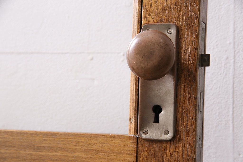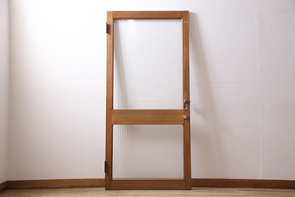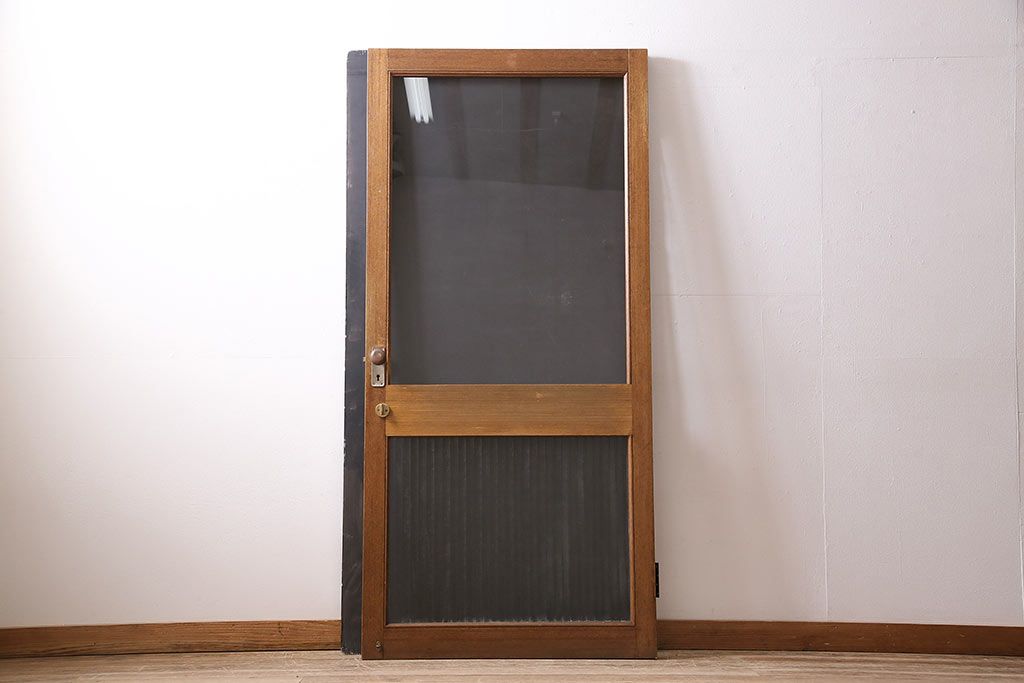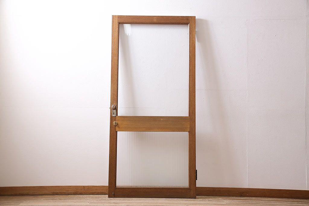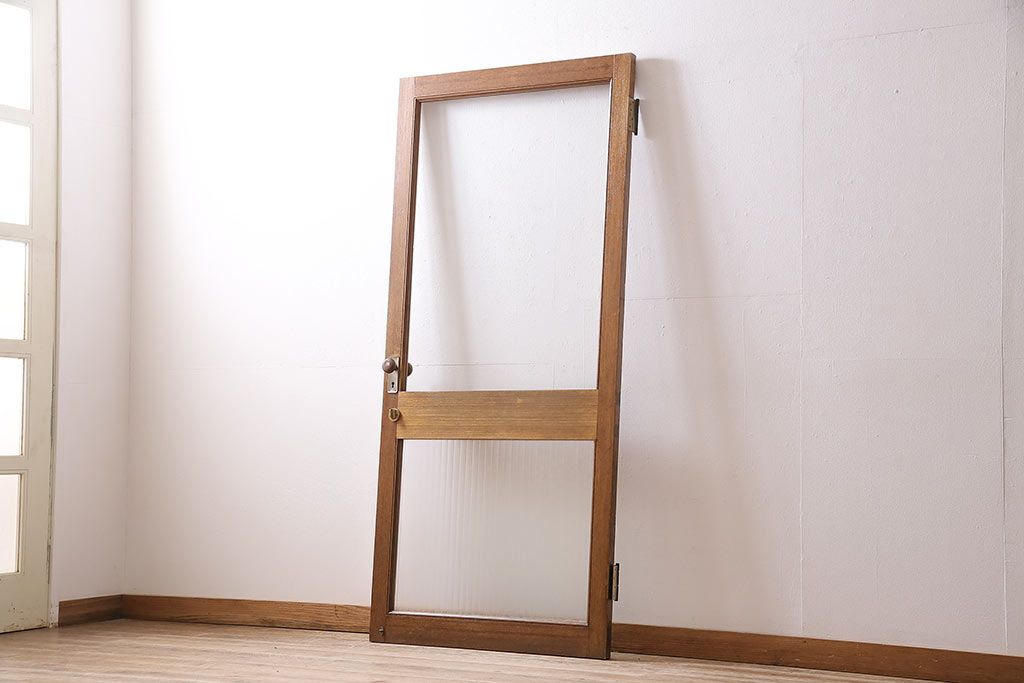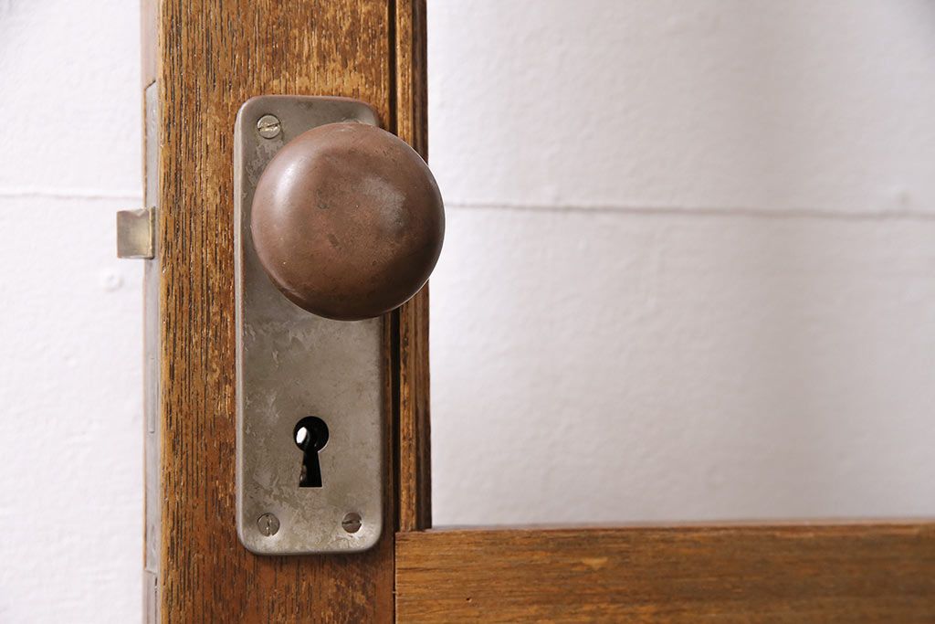 ドア・建具> ドア・扉 > ガラス扉をリペア&カスタム!設置場所に合わせてリサイズ。上部のガラスのみクリアガラスへ入れ替え。鍵の取り付け。(ガラスドア、建具)