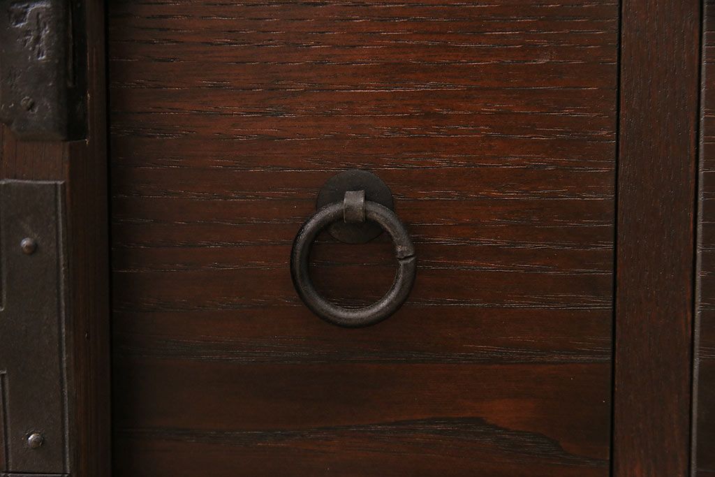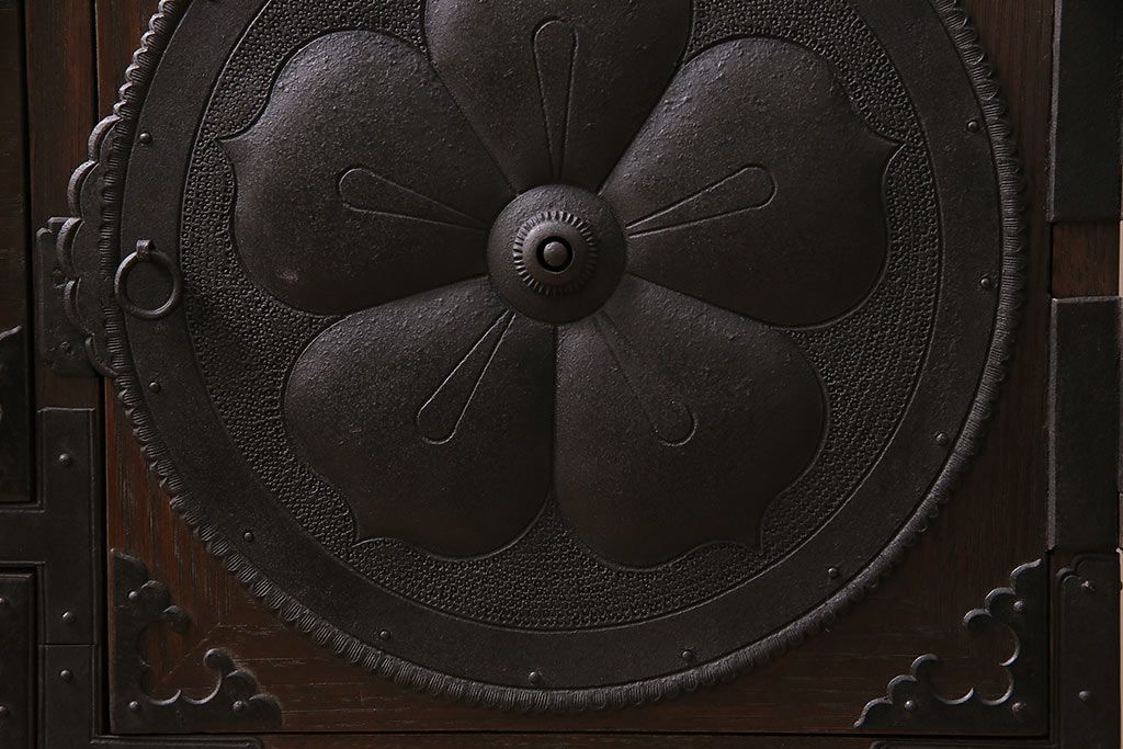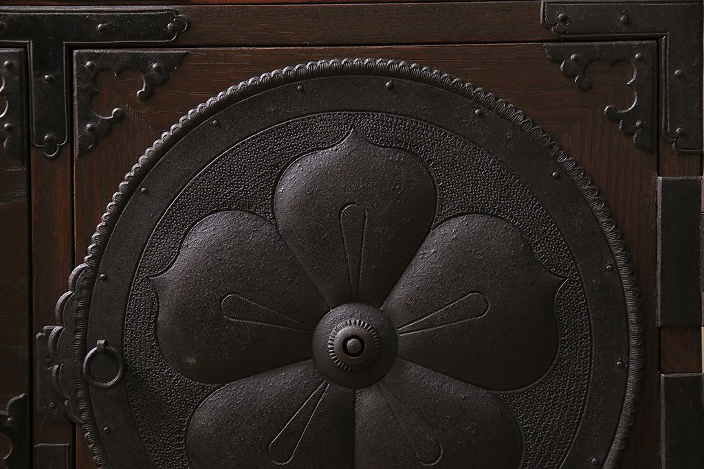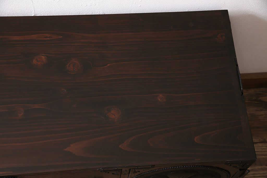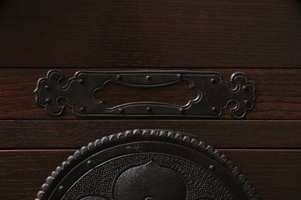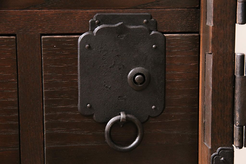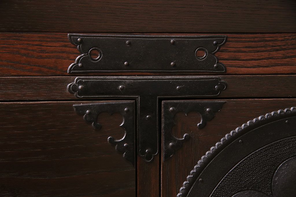 和箪笥> 衣装箪笥 > 重ね箪笥を新規製作!栗材、桐材、ヒノキ材で製作。アンティーク仙台箪笥の金具を使用。濃い茶色で着色し仕上げ。(衣装箪笥、収納箪笥、引き出し)