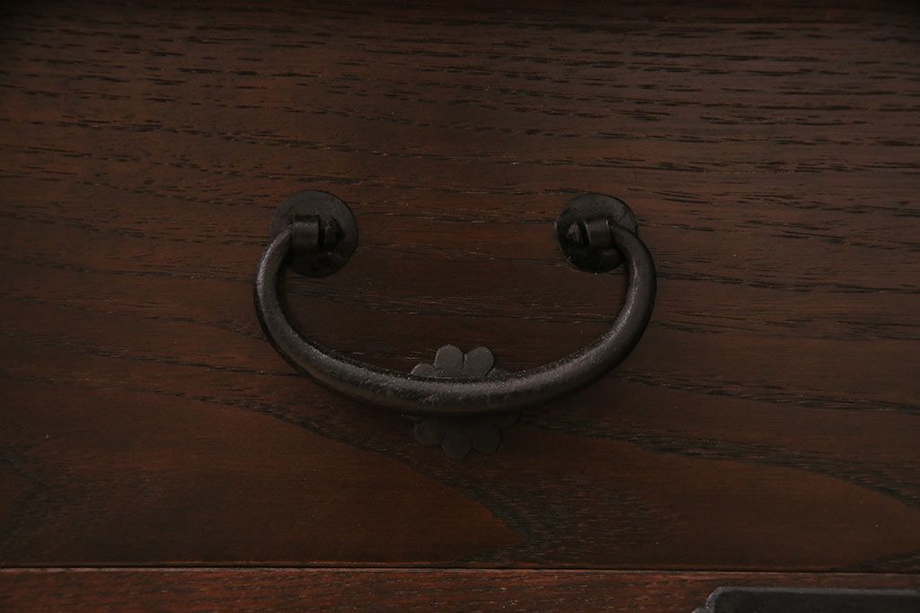 和箪笥 > 重ね箪笥を新規製作!栗材、桐材、ヒノキ材で製作。アンティーク仙台箪笥の金具を使用。濃い茶色で着色し仕上げ。(衣装箪笥、収納箪笥、引き出し)