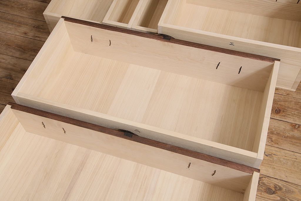 ◆使用材:(前面/縁・引き出し前板)栗新材 (引き出し内部)桐新材 (その他本体部分)ヒノキ新材