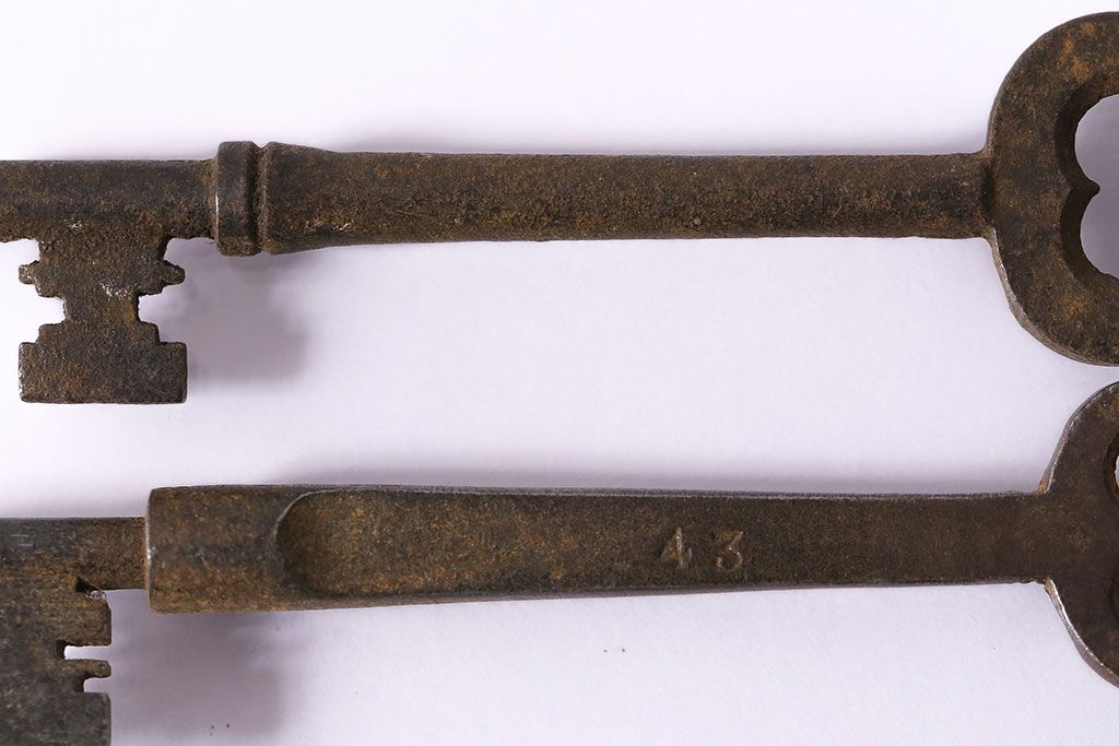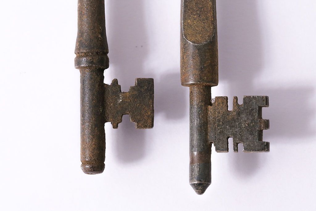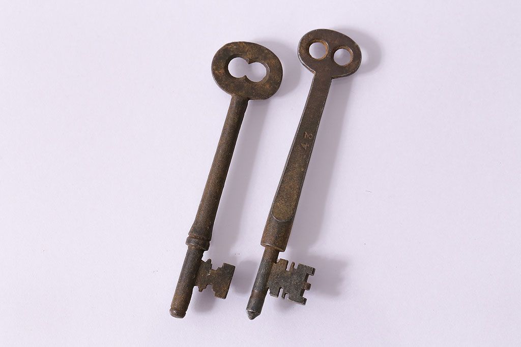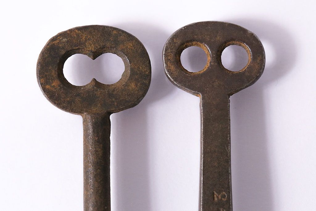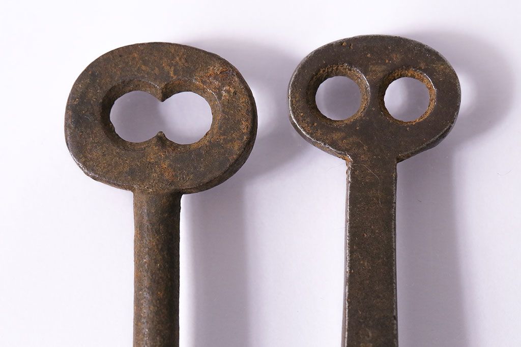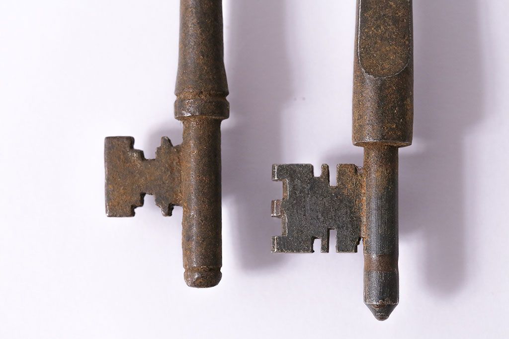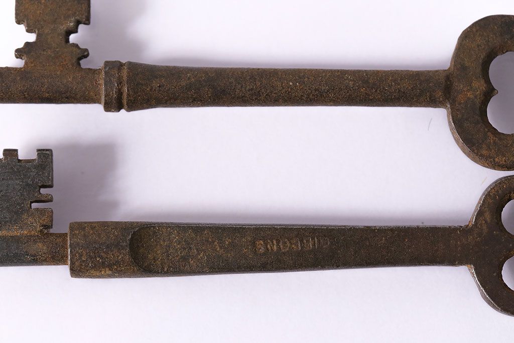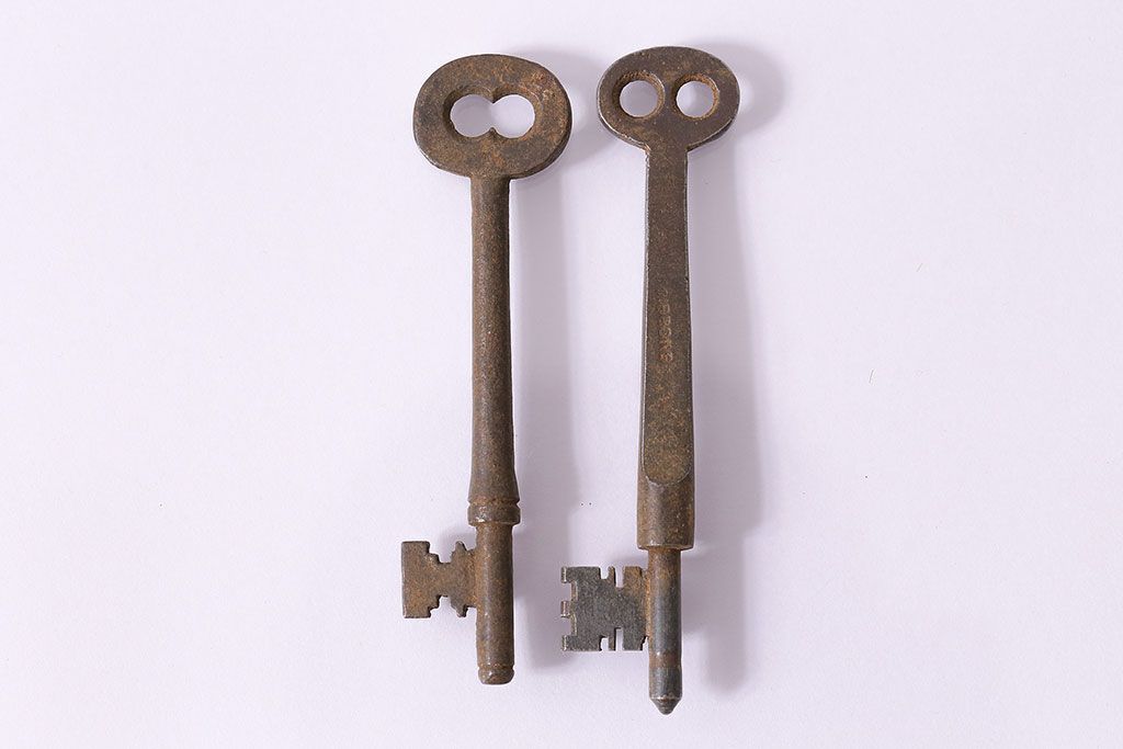 アンティーク雑貨 イギリスアンティーク 錆びた風合いの古いキー2本セット(鍵、カギ)(R-046608)