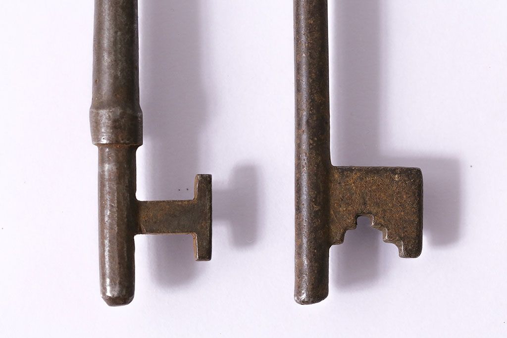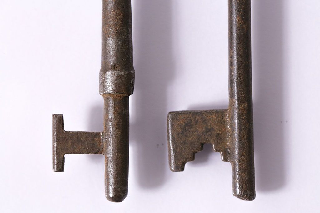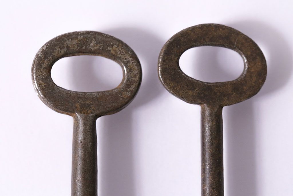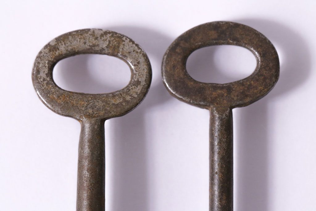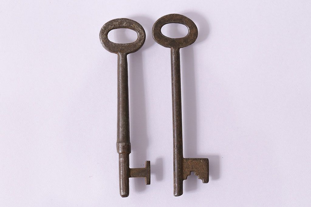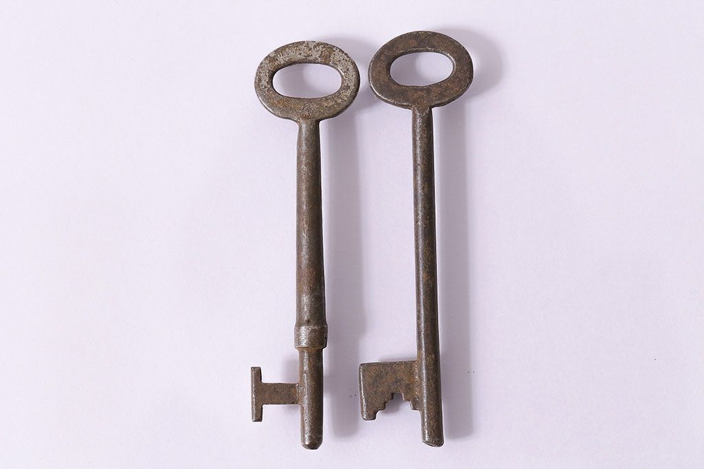 アンティーク雑貨 イギリスアンティーク 古びた風合いが味のあるキー2本セット(鍵、カギ)(R-046611)