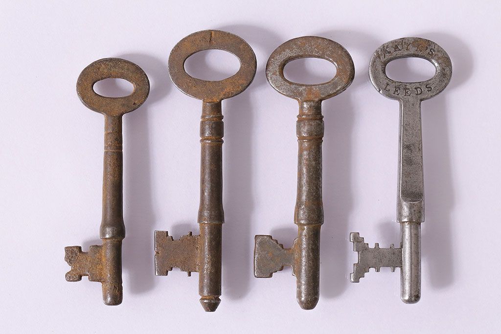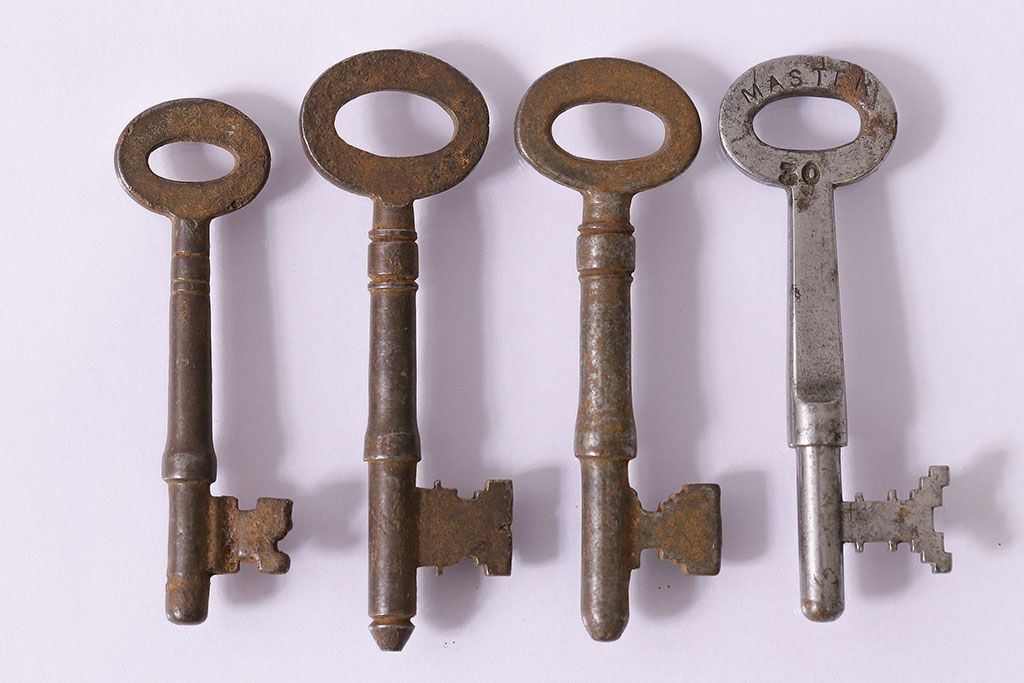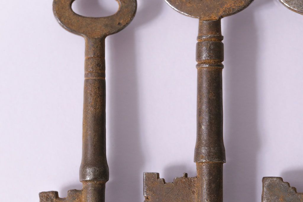アンティーク雑貨 イギリスアンティーク シャビーな質感がお洒落なキー4本セット(鍵、カギ)(R-046877)