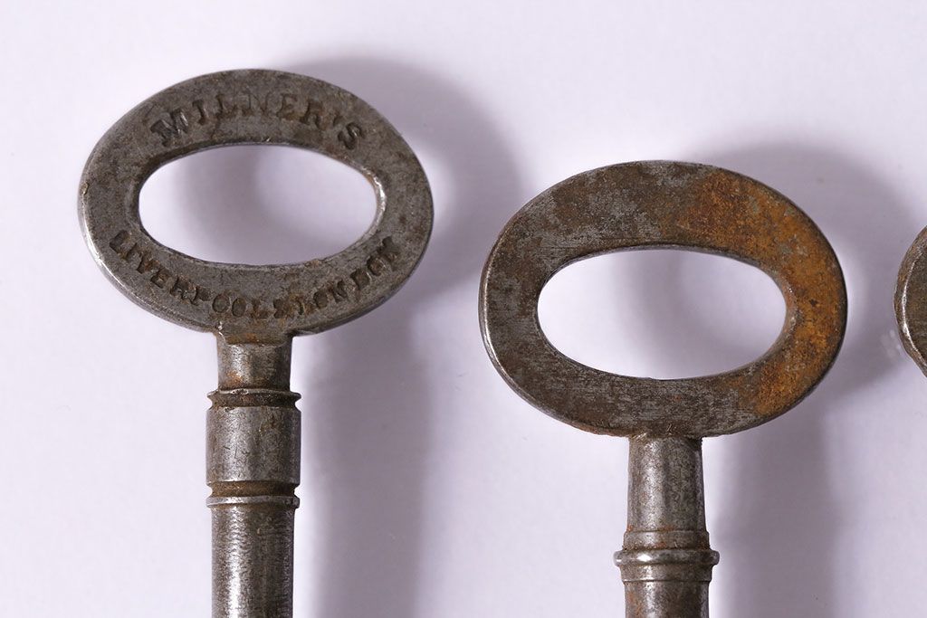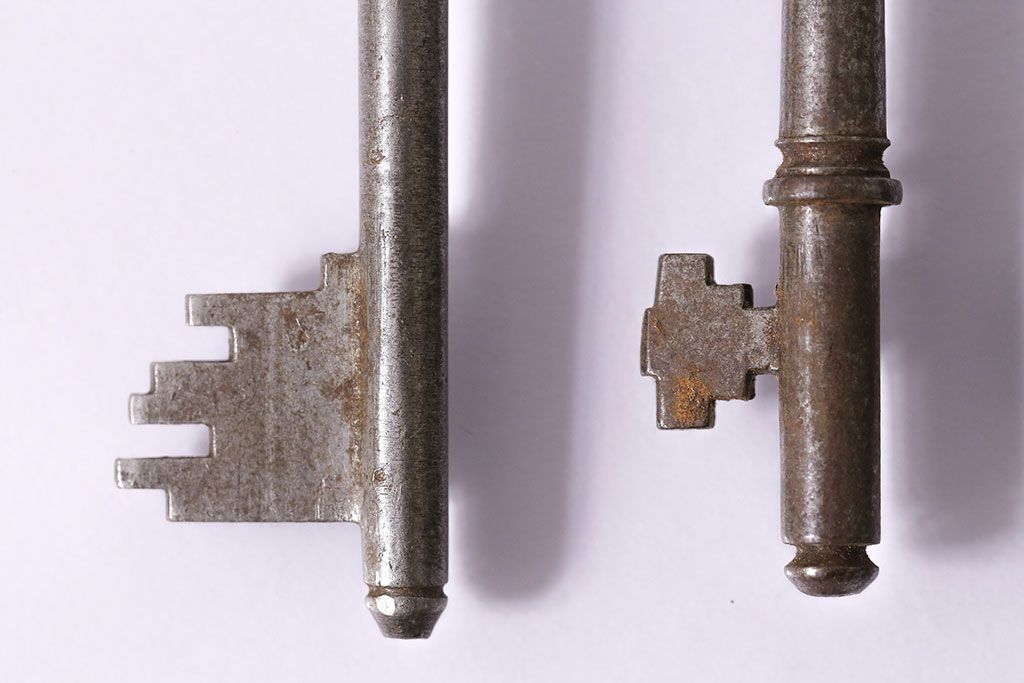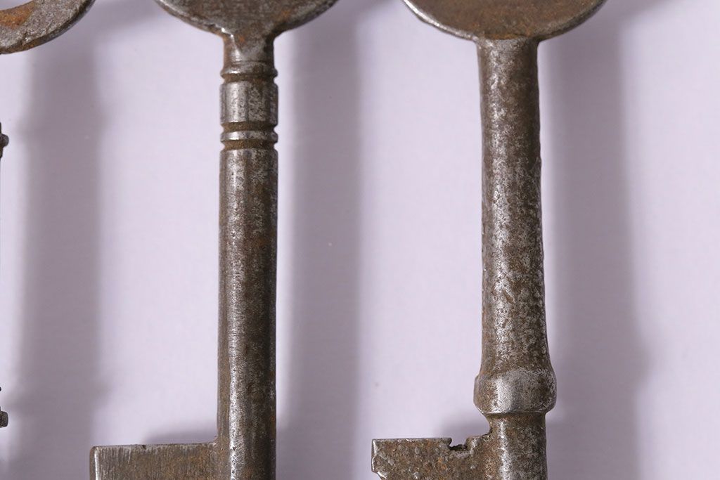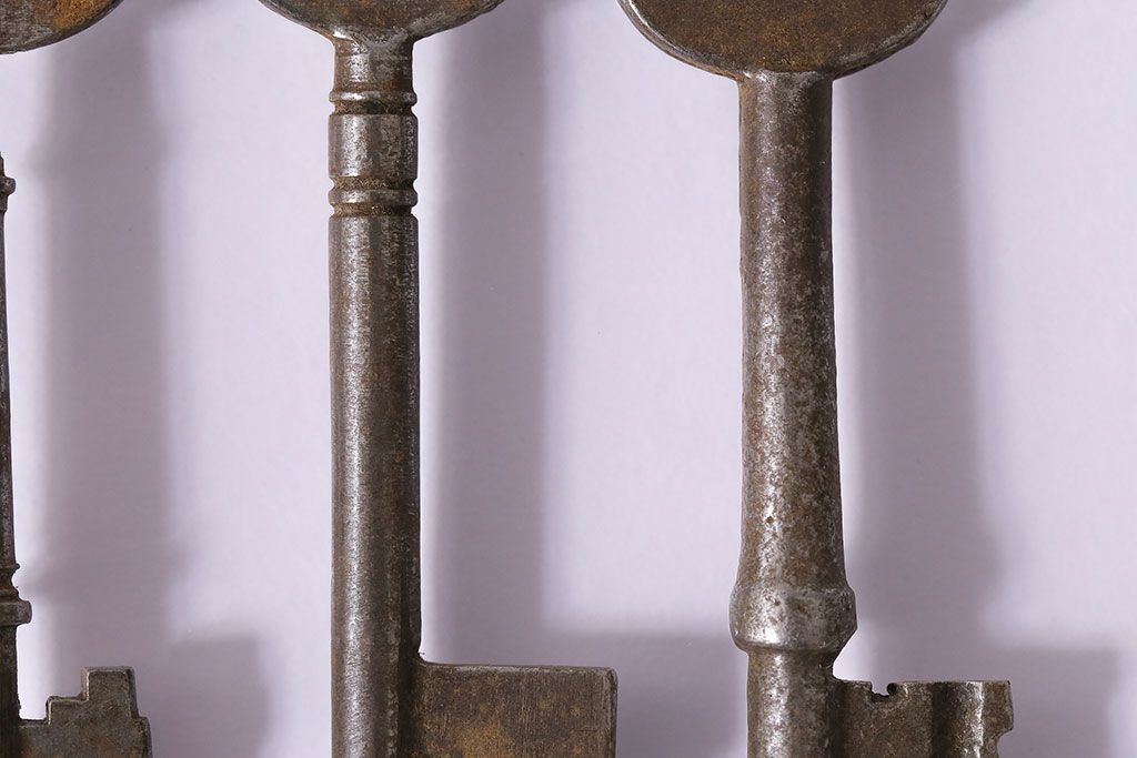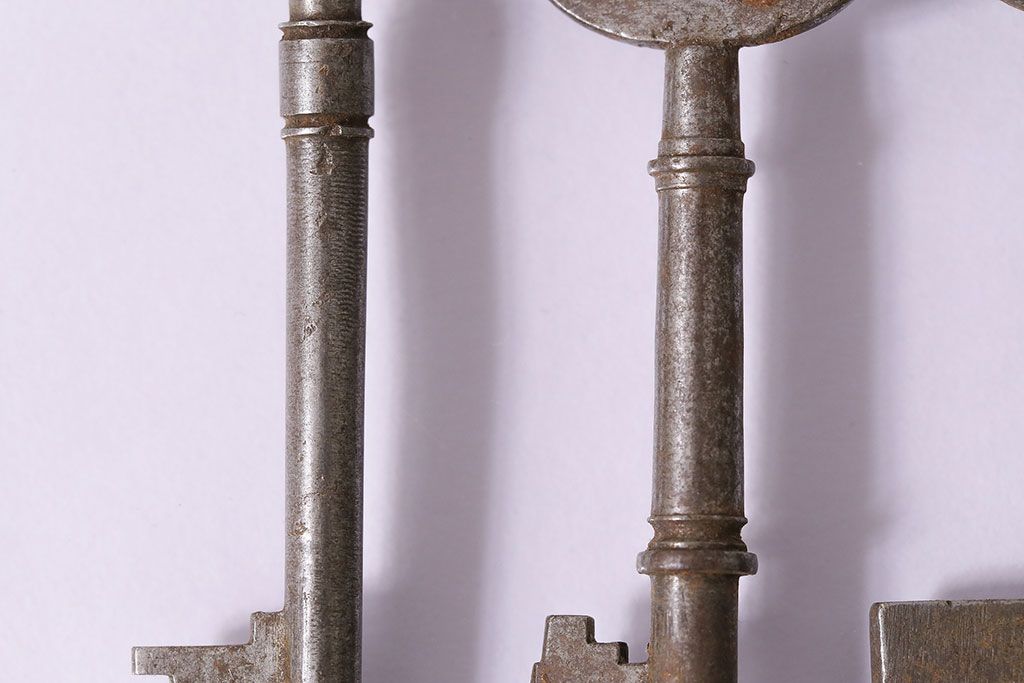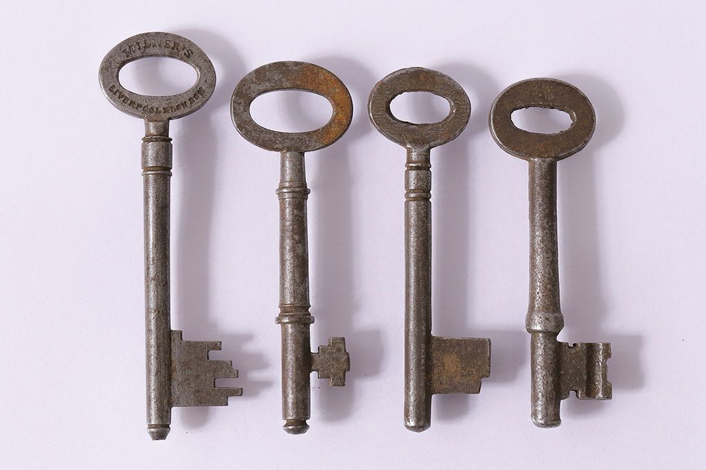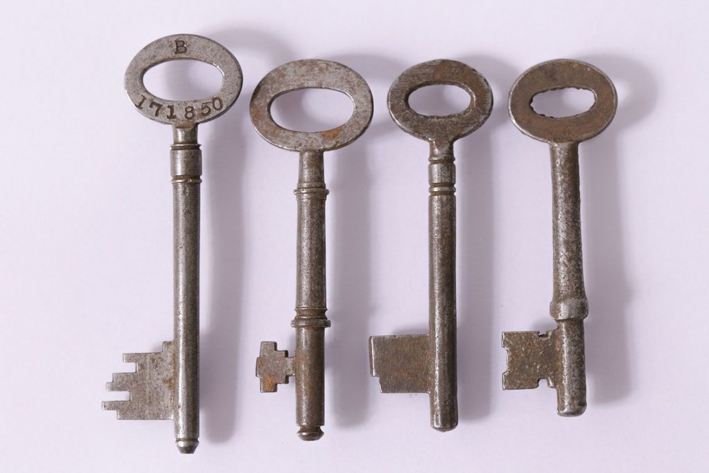 アンティーク雑貨 イギリスアンティーク シャビーな質感の古いキー4本セット(鍵、カギ)(R-046876)