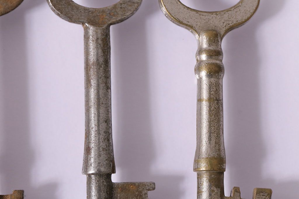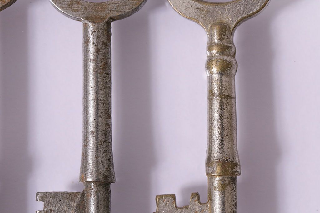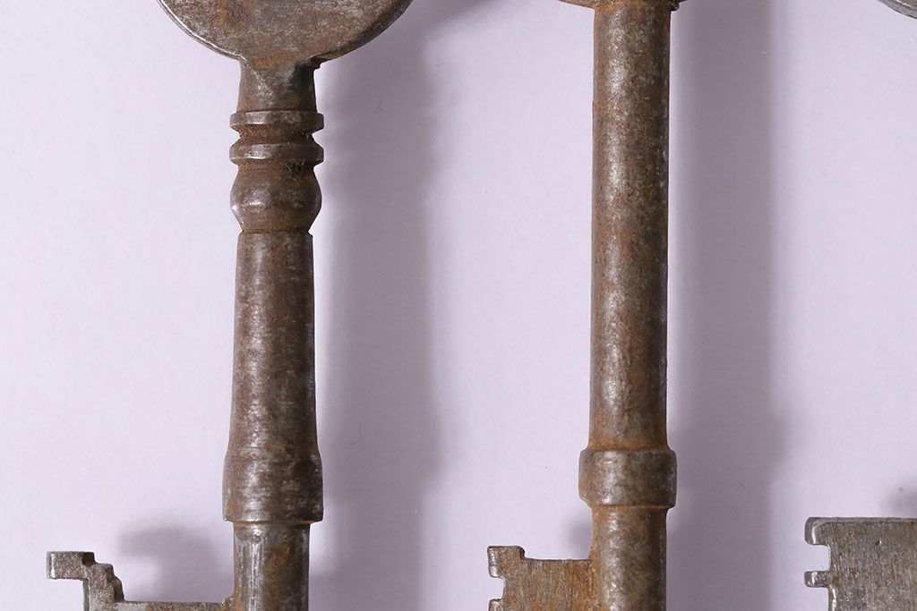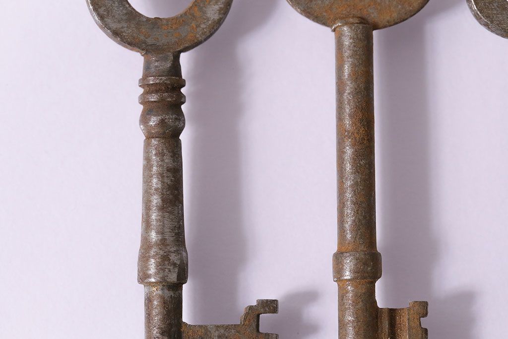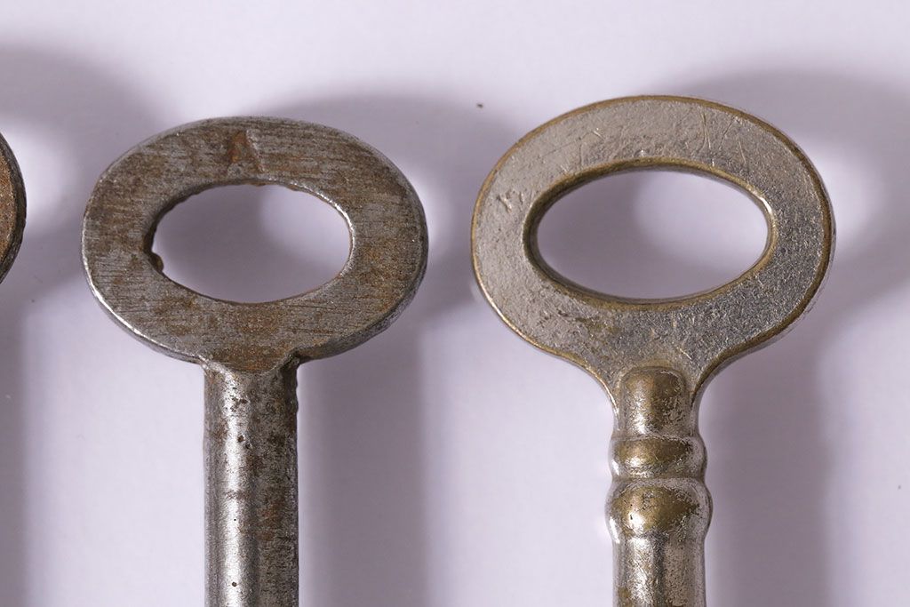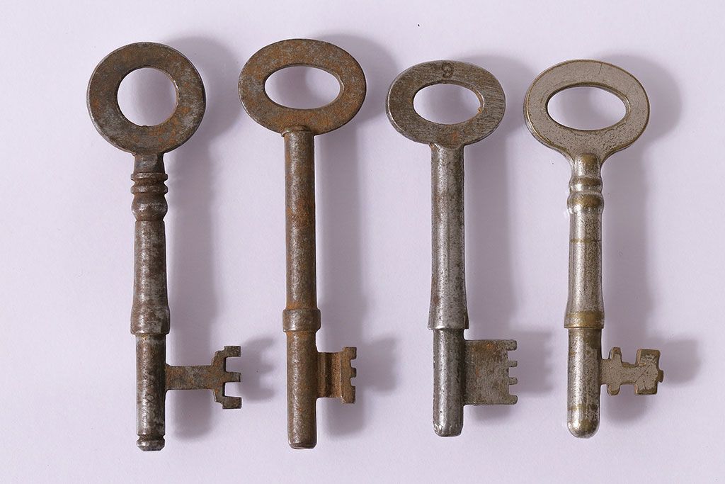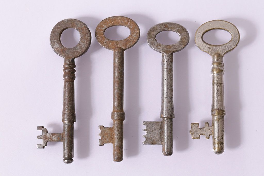 アンティーク雑貨 イギリスアンティーク シャビーな風合いの古いキー4本セット(鍵、カギ)(R-046878)