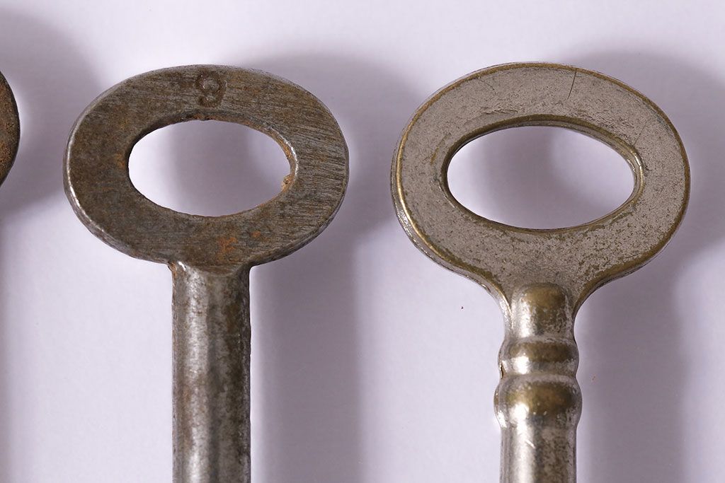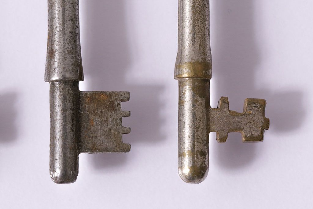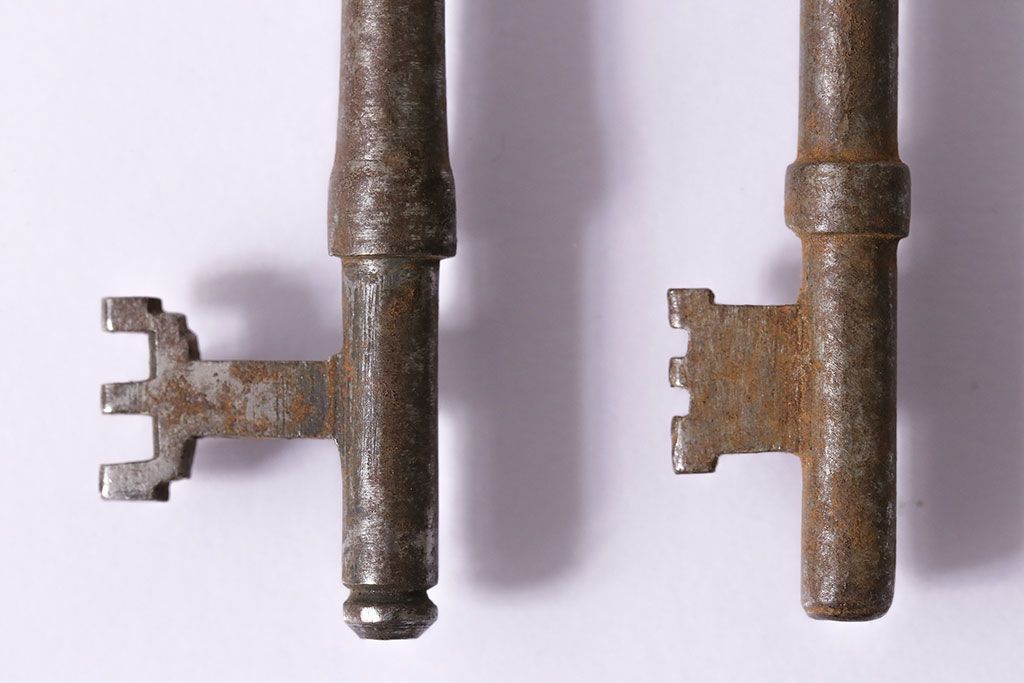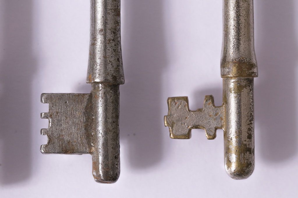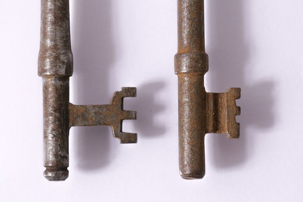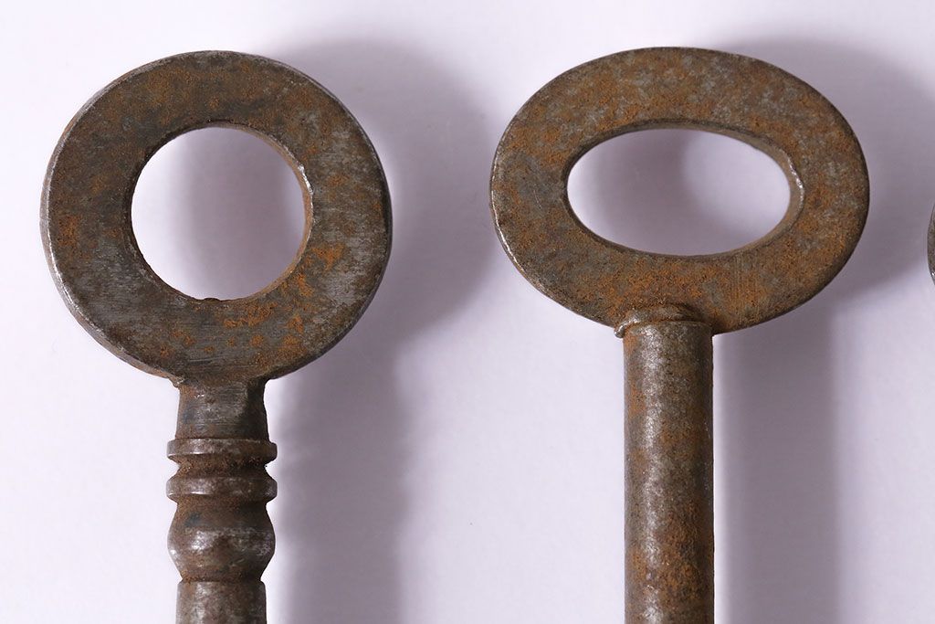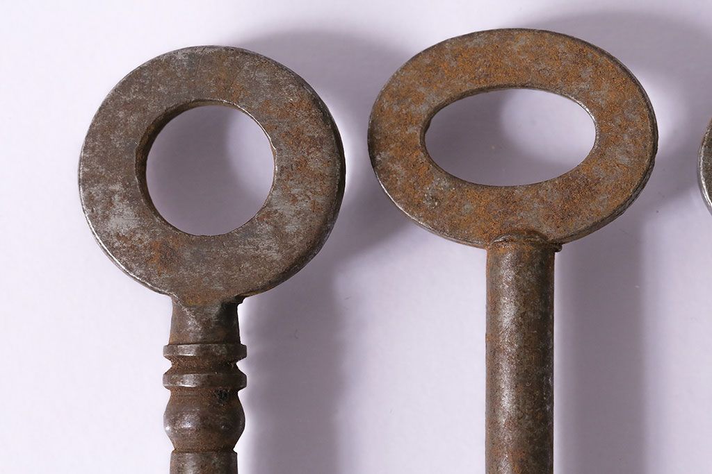 アンティーク雑貨 イギリスアンティーク シャビーな風合いの古いキー4本セット(鍵、カギ)(R-046878)