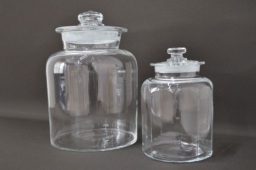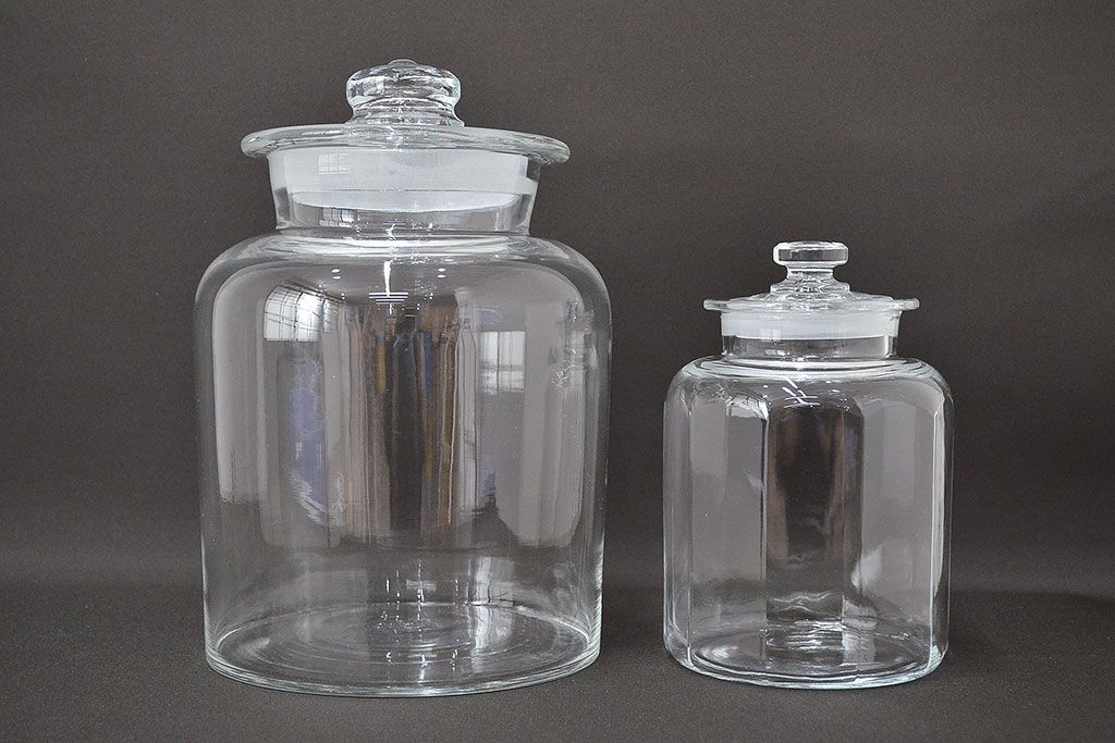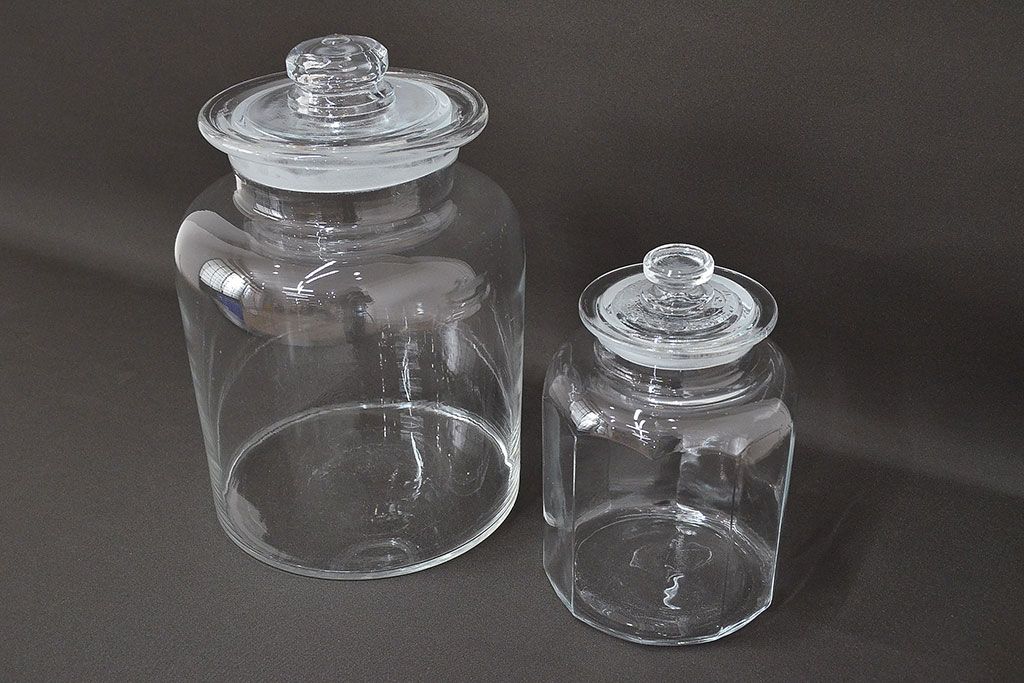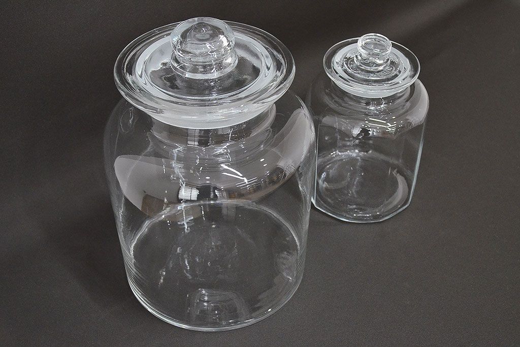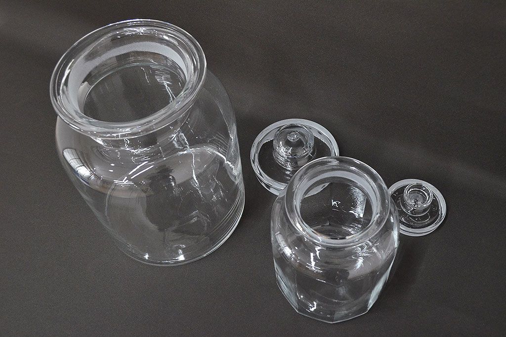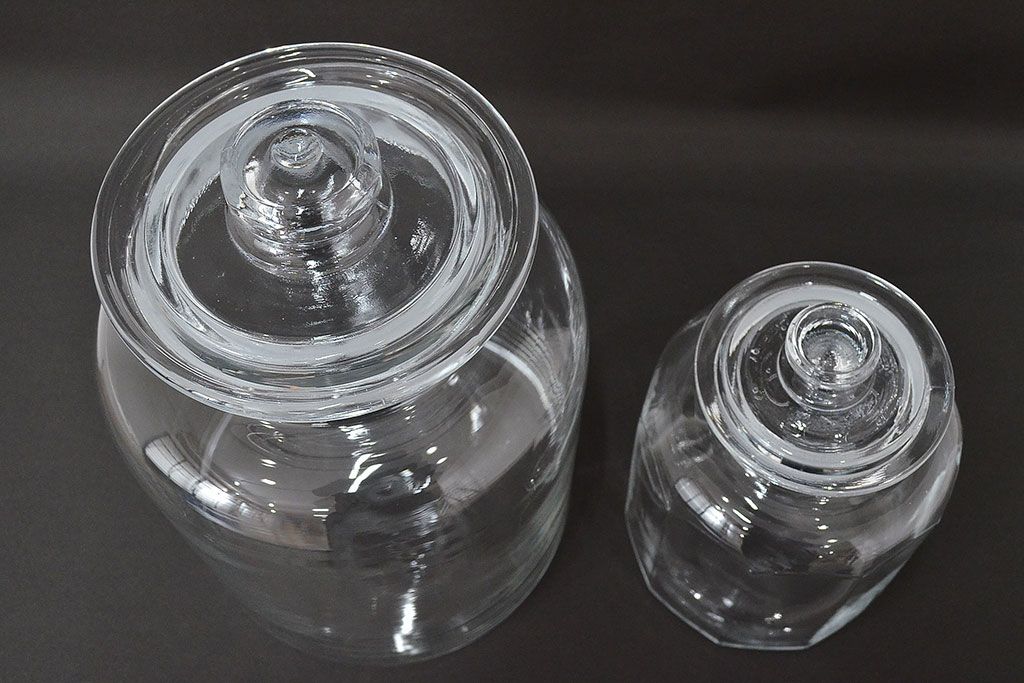 ラフジュ工房> 雑貨> ガラス瓶・花瓶 > 昭和レトロ ガラス瓶大・小 2個セット(蓋付き、キャニスター)(R-047170)