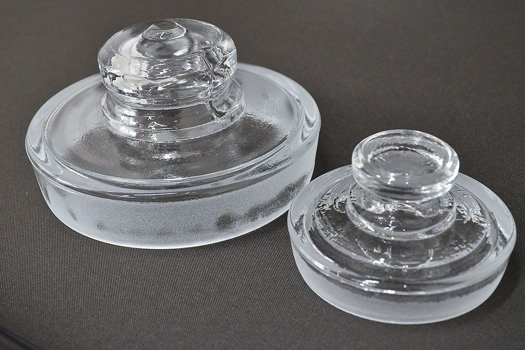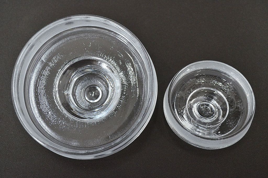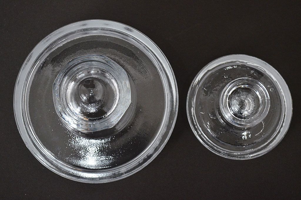昭和レトロ ガラス瓶大・小 2個セット(蓋付き、キャニスター)(R-047170)