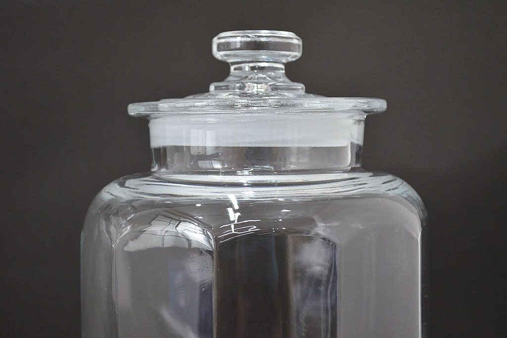 ラフジュ工房> 洋食器・キッチン用品> キャニスター > 昭和レトロ ガラス瓶大・小 2個セット(蓋付き、キャニスター)(R-047170)