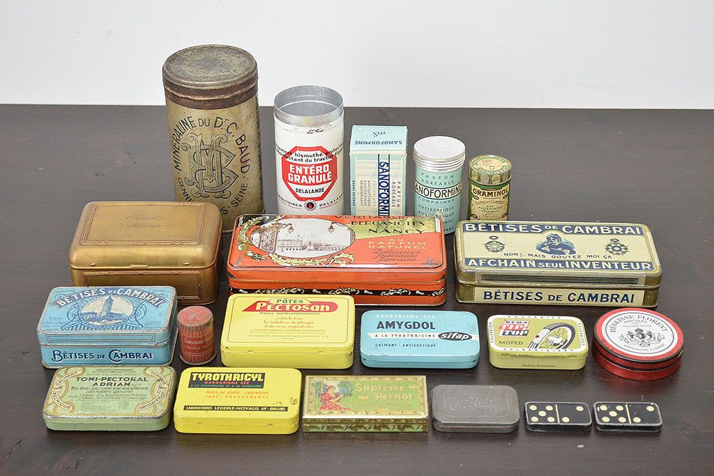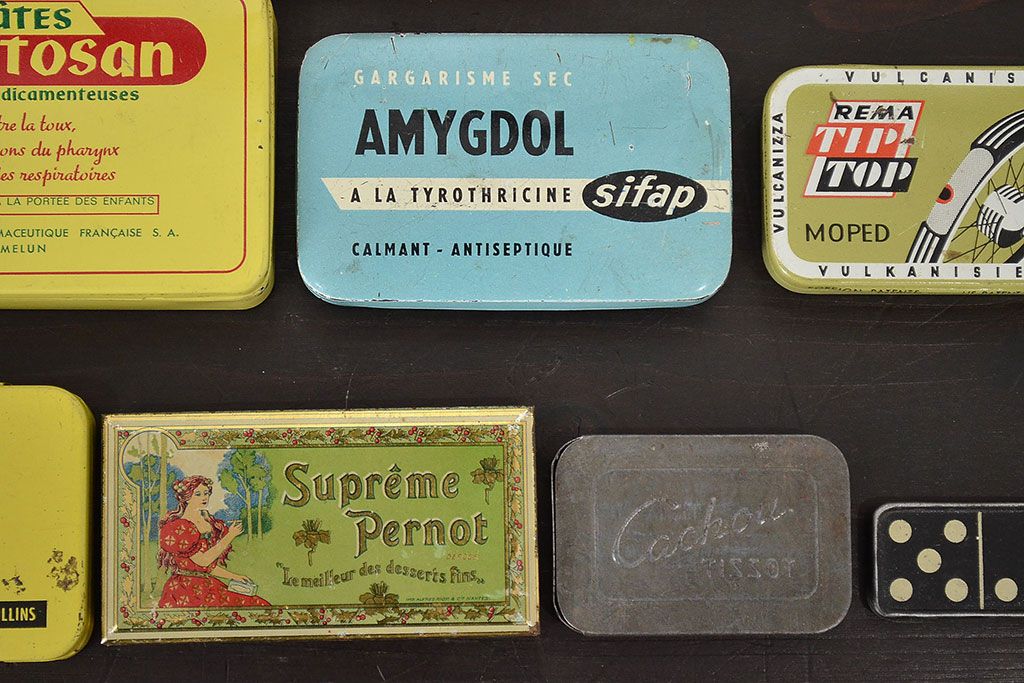 フランスビンテージ ブリキ缶20個(アンティーク、小物入れ)(R-047177)