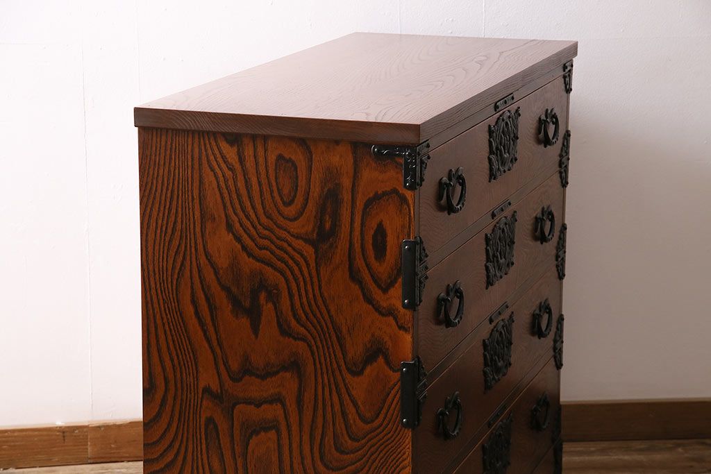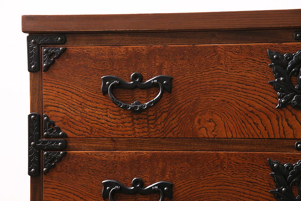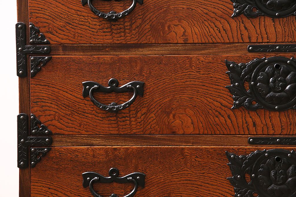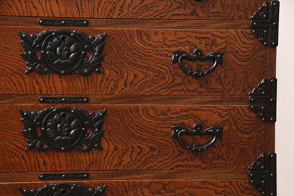 和箪笥 > 中古 伝統工芸 岩谷堂箪笥 天板リメイク・極厚手栗無垢材 ダイナミックな杢目を堪能できる衣装タンス(引き出し、チェスト)(R-047125)