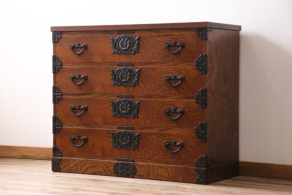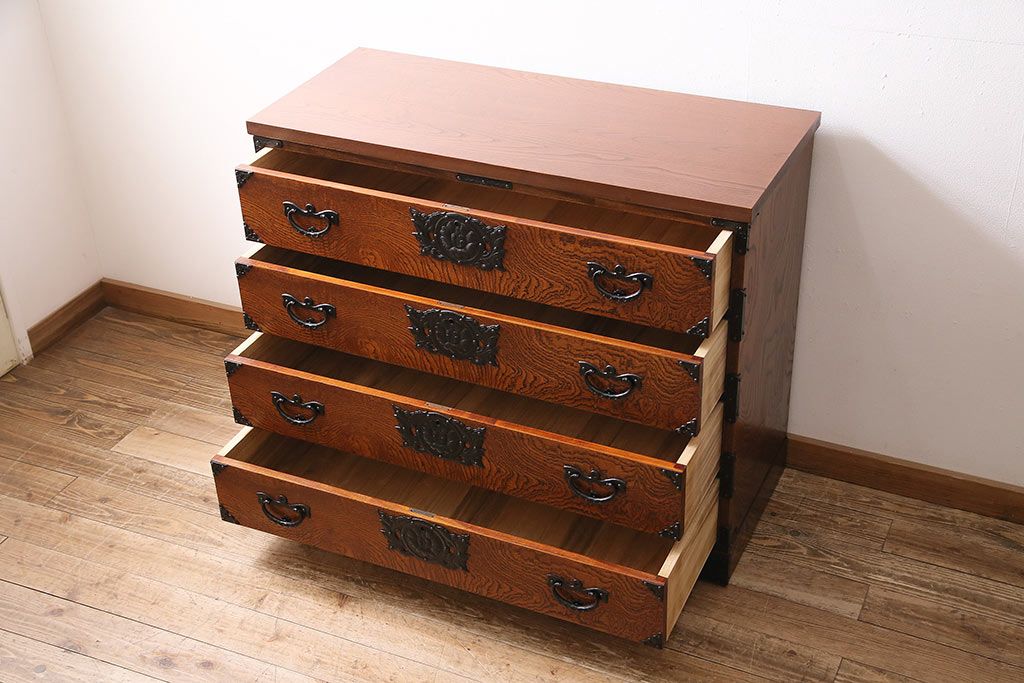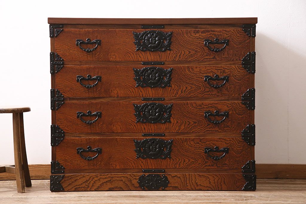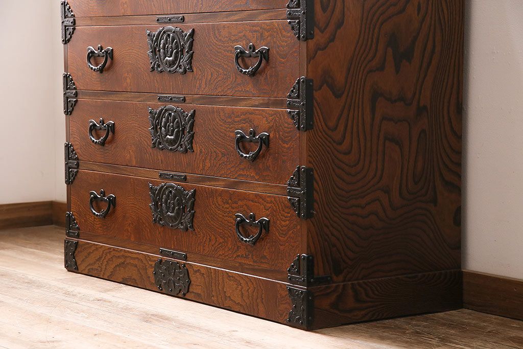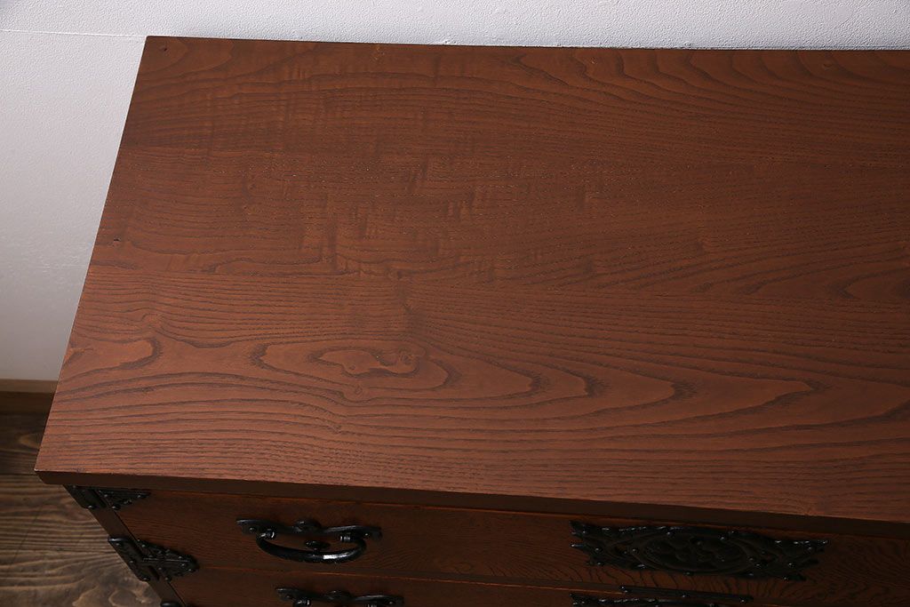 和箪笥 > 中古 伝統工芸 岩谷堂箪笥 天板リメイク・極厚手栗無垢材 ダイナミックな杢目を堪能できる衣装タンス(引き出し、チェスト)(R-047125)