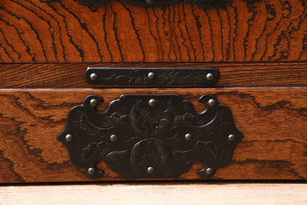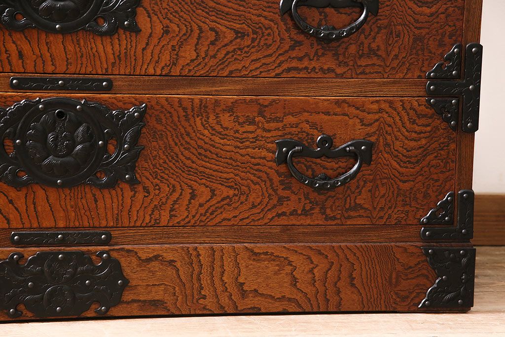 中古 伝統工芸 岩谷堂箪笥 天板リメイク・極厚手栗無垢材 ダイナミックな杢目を堪能できる衣装タンス(引き出し、チェスト)(R-047125)