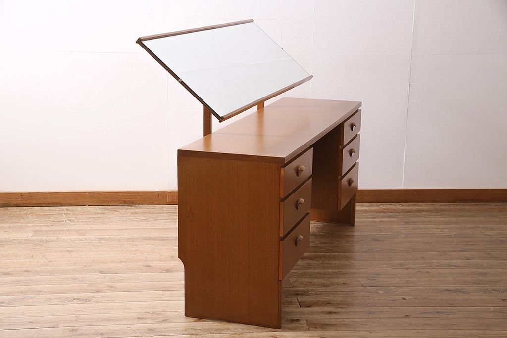 イギリスヴィンテージ Austinsuite(オースティンスイート) チーク材 北欧スタイルにぴったりなスツール付きドレッサー(鏡台、ビンテージ)(R-047124)