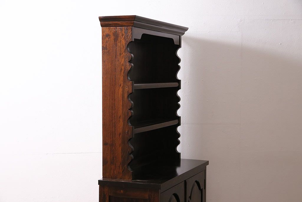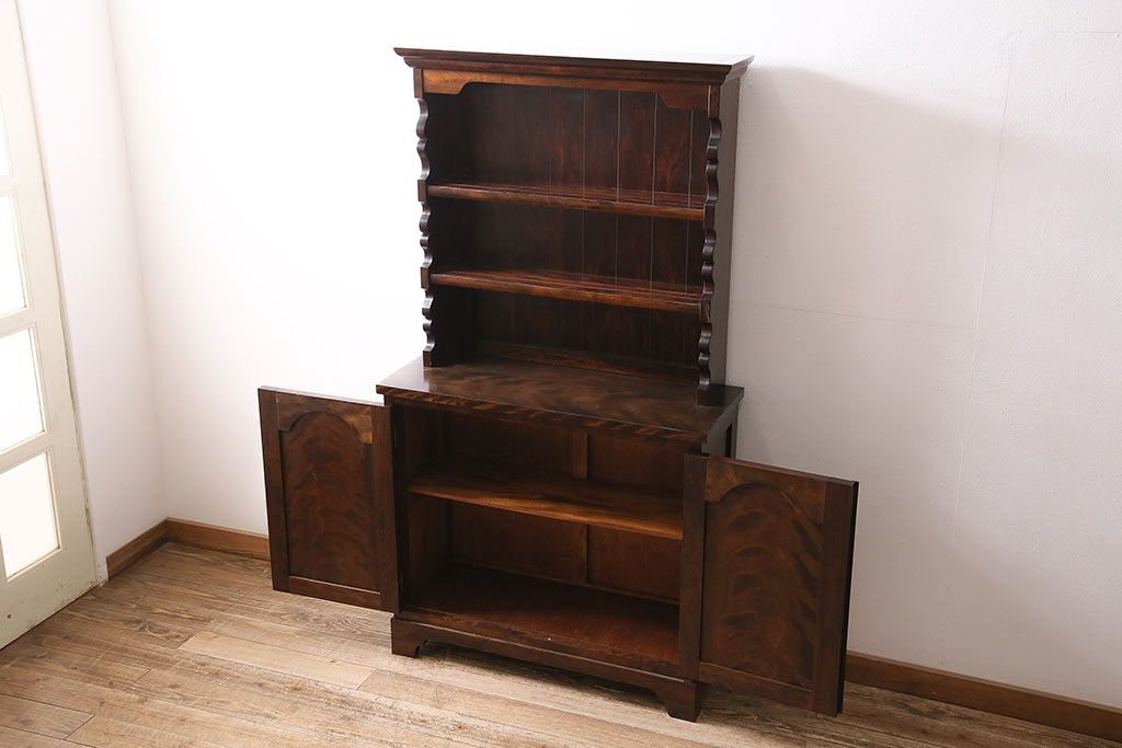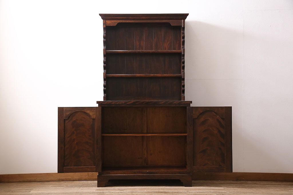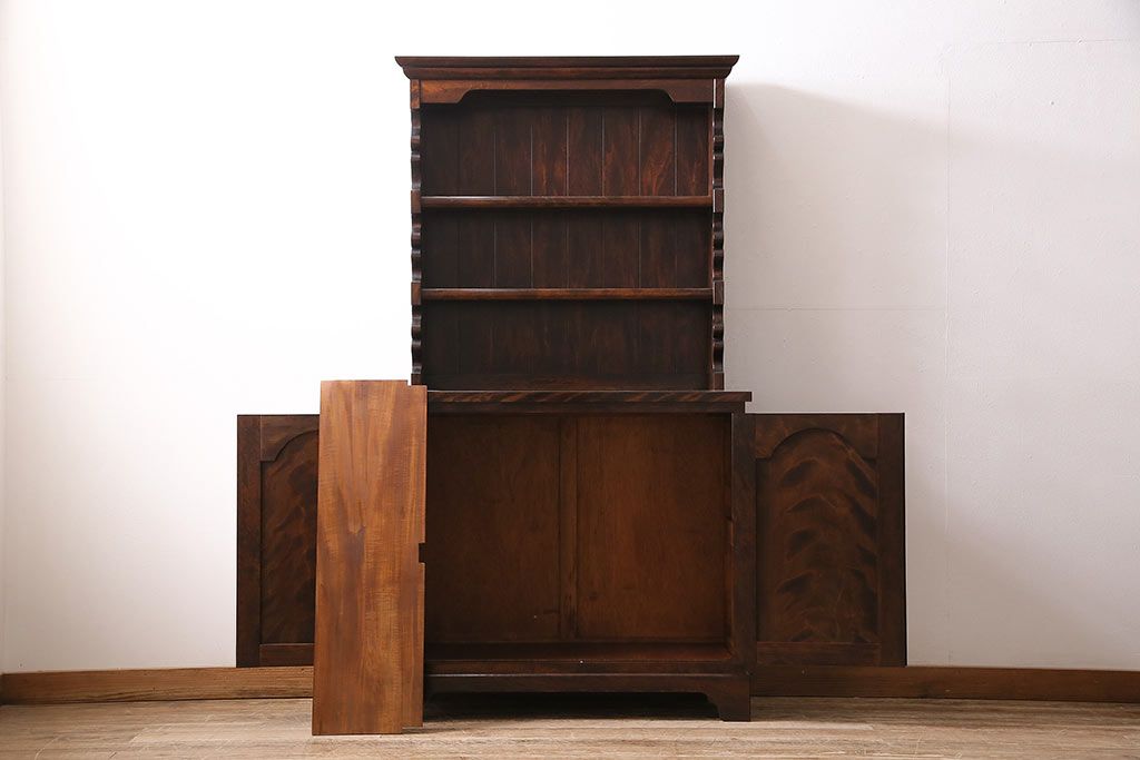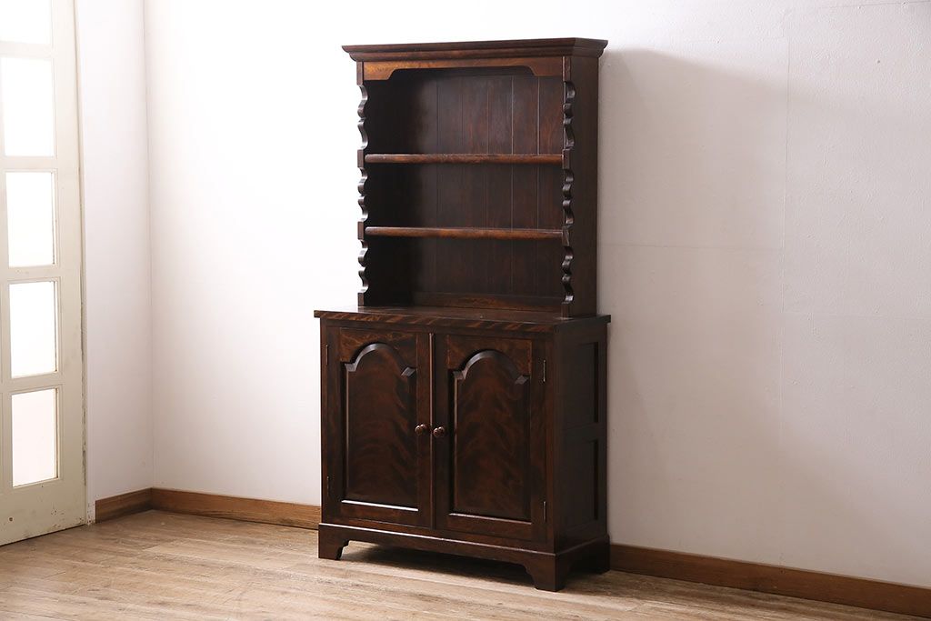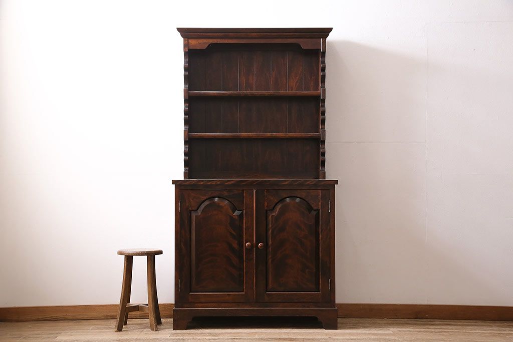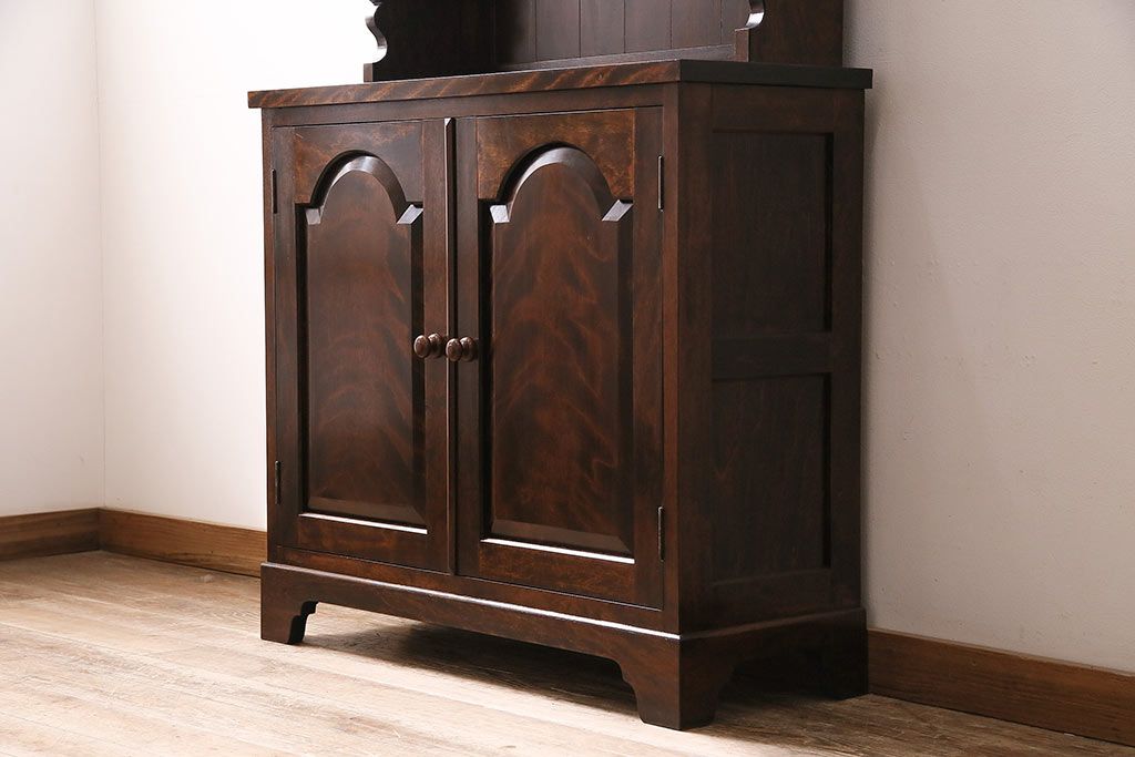 民芸家具 > 和製ヴィンテージ 松本民芸家具 #36型皿棚 深い色合いと独特の木目が美しい食器棚(収納棚、カップボード、ビンテージ)(R-047115)
