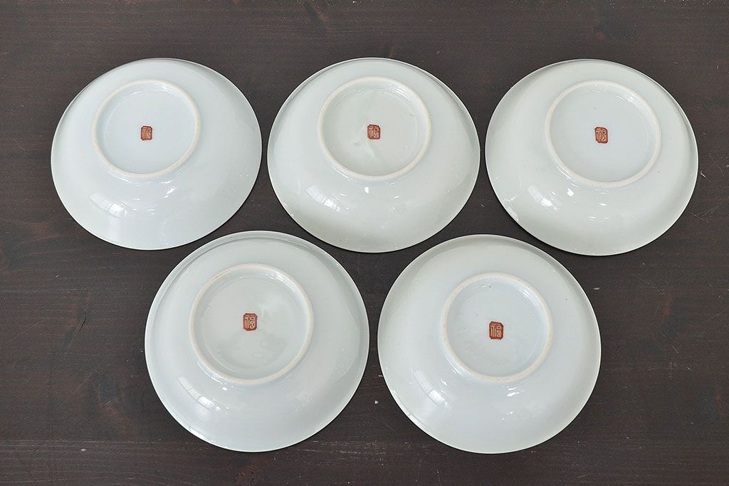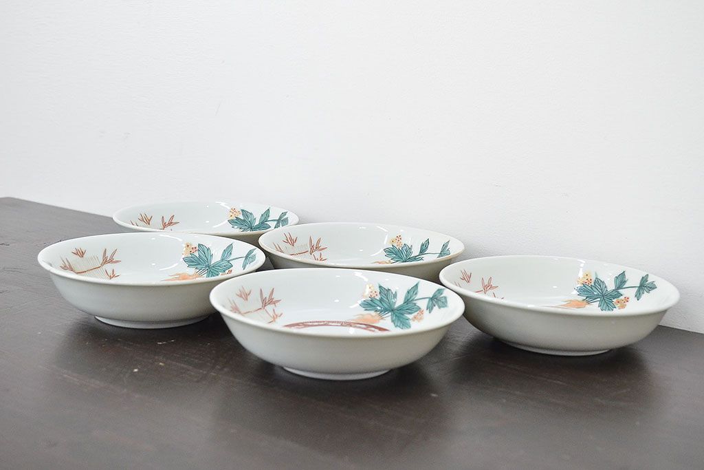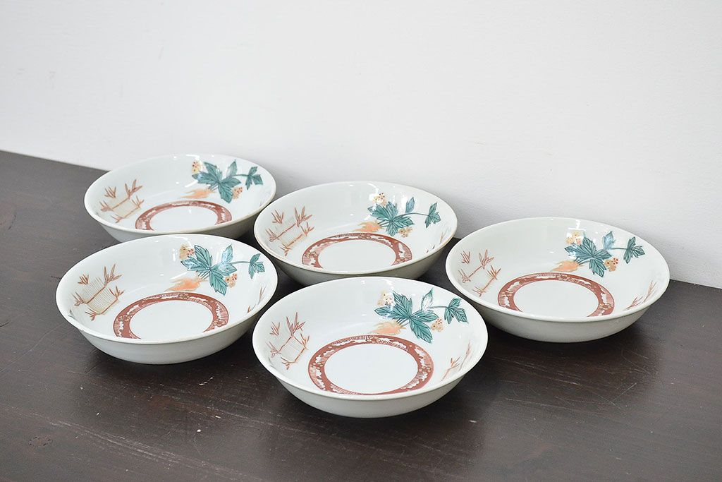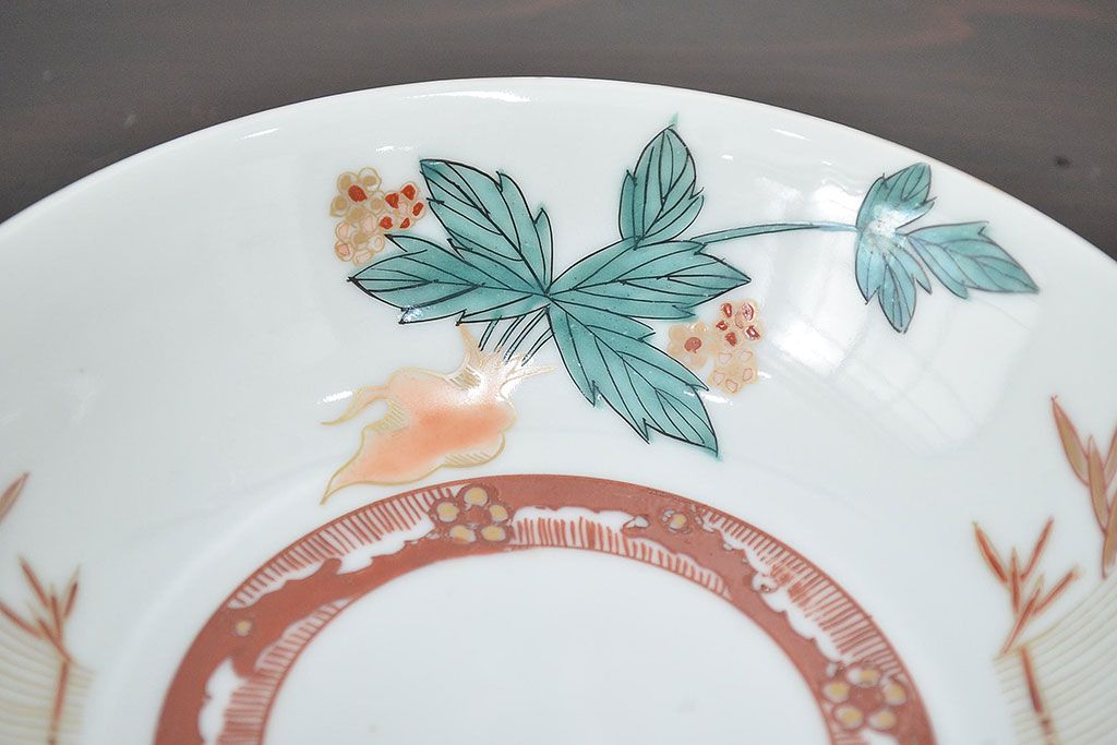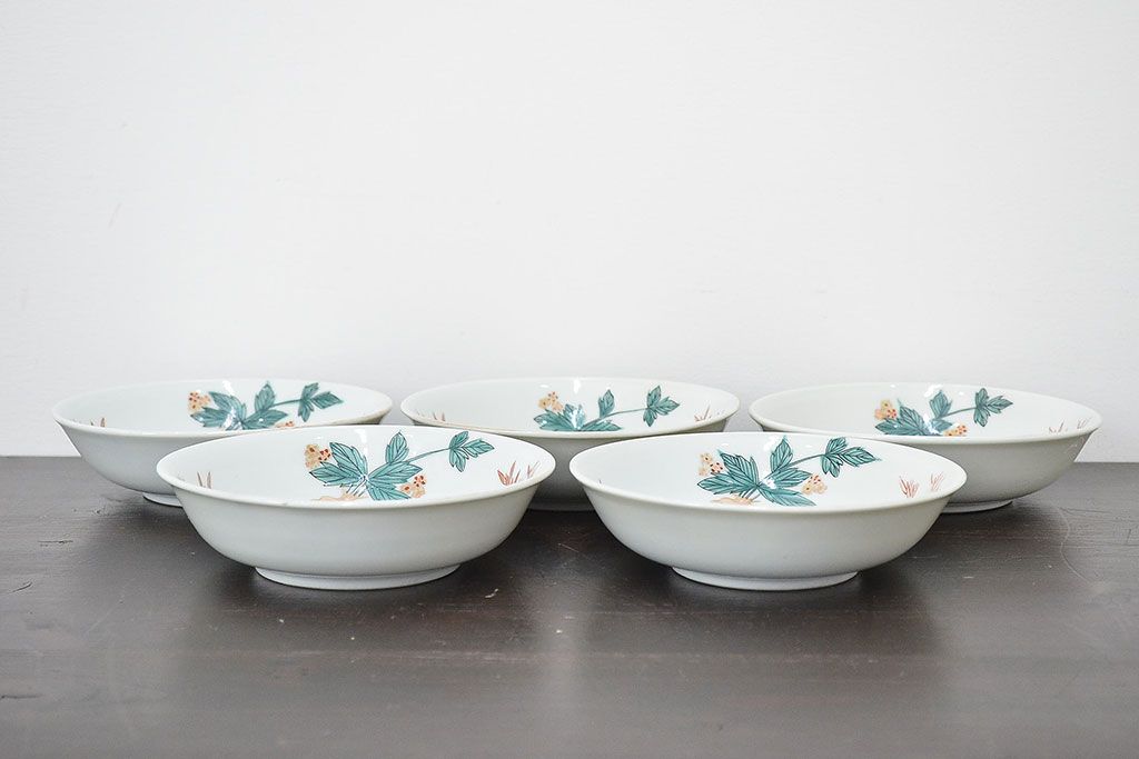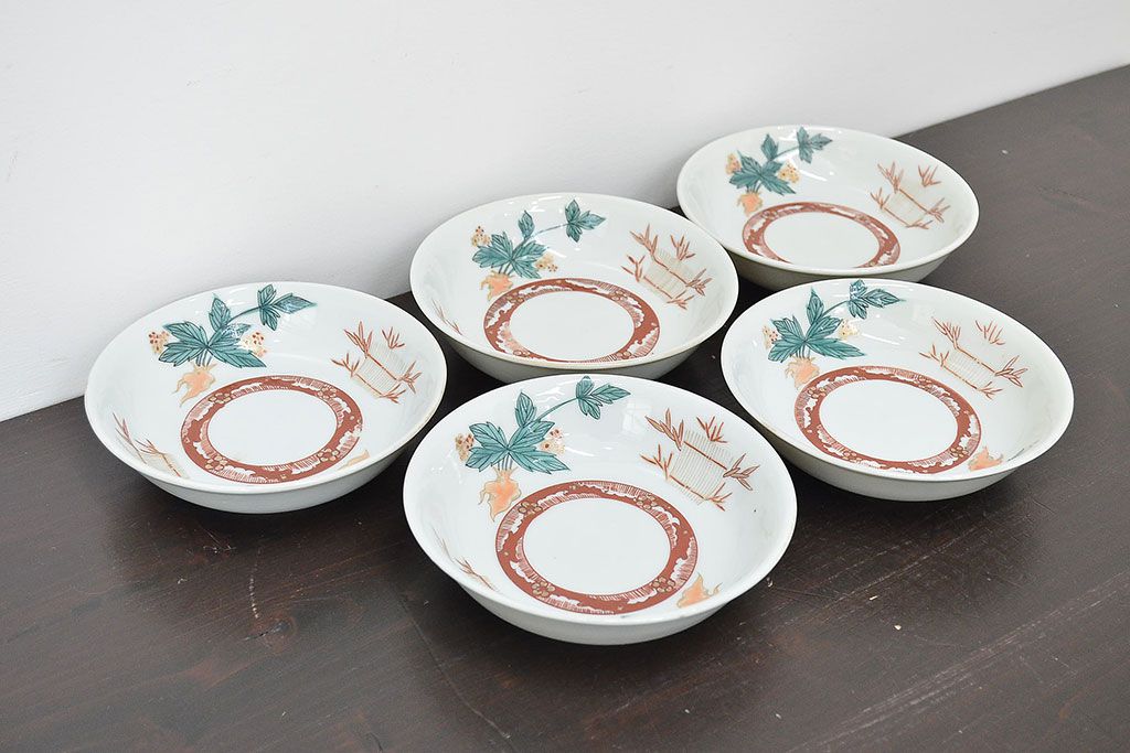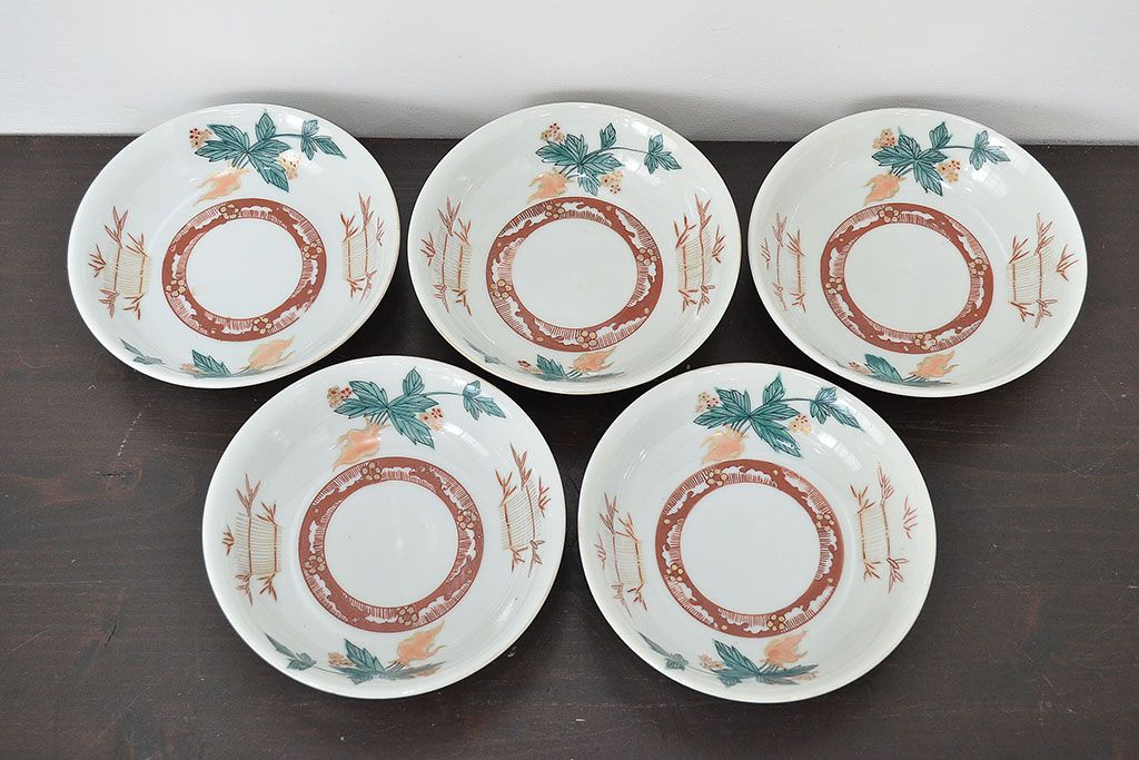 明治期 九谷焼 人参図 色絵 五寸なます皿5枚(和食器)(R-047184)