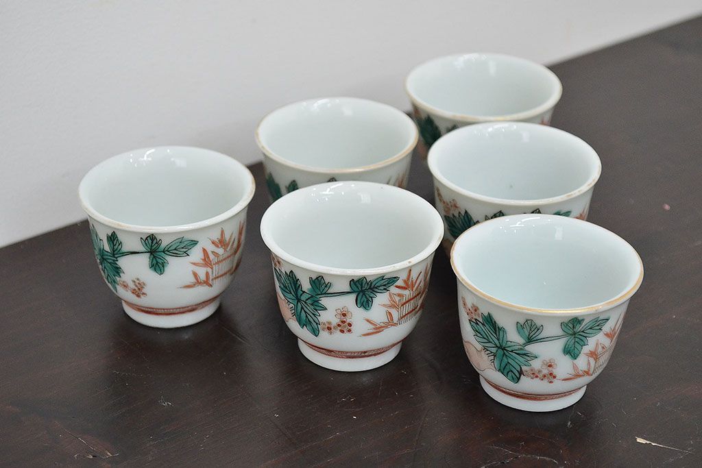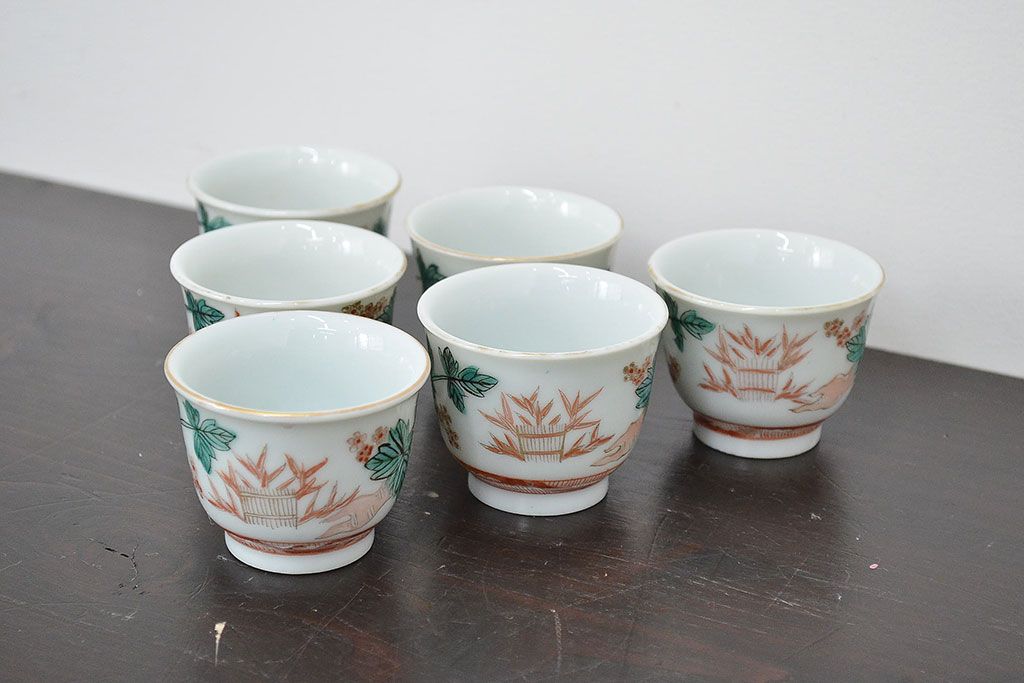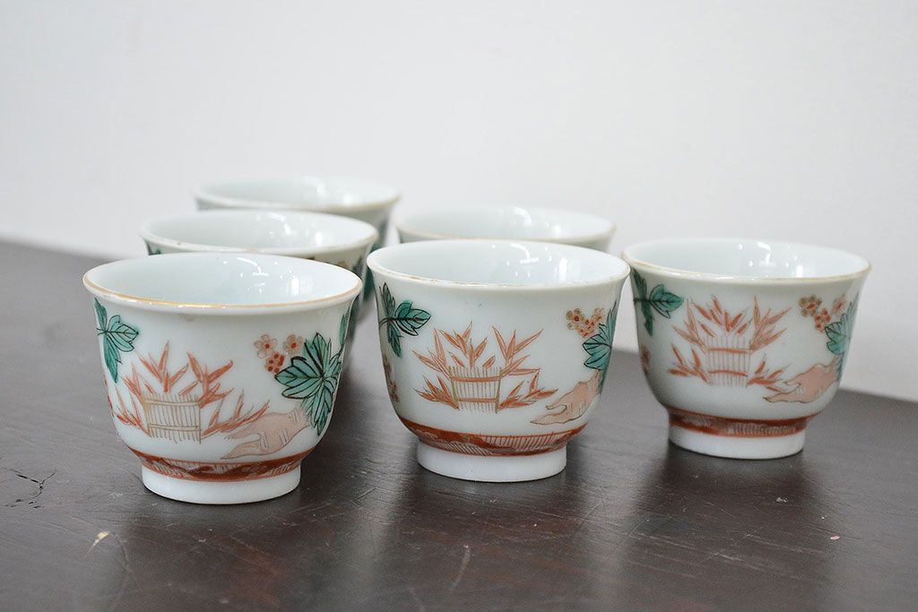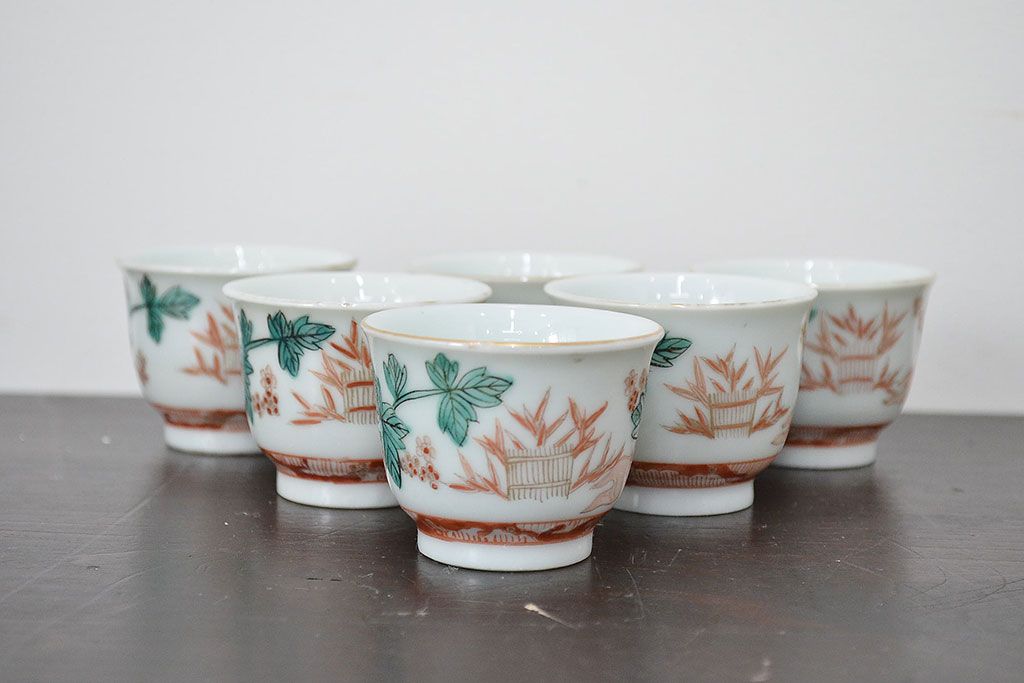 ラフジュ工房> 和食器・茶道具 > 明治期 九谷焼 人参図 色絵 猪口6個(和食器、向付)(R-047185)