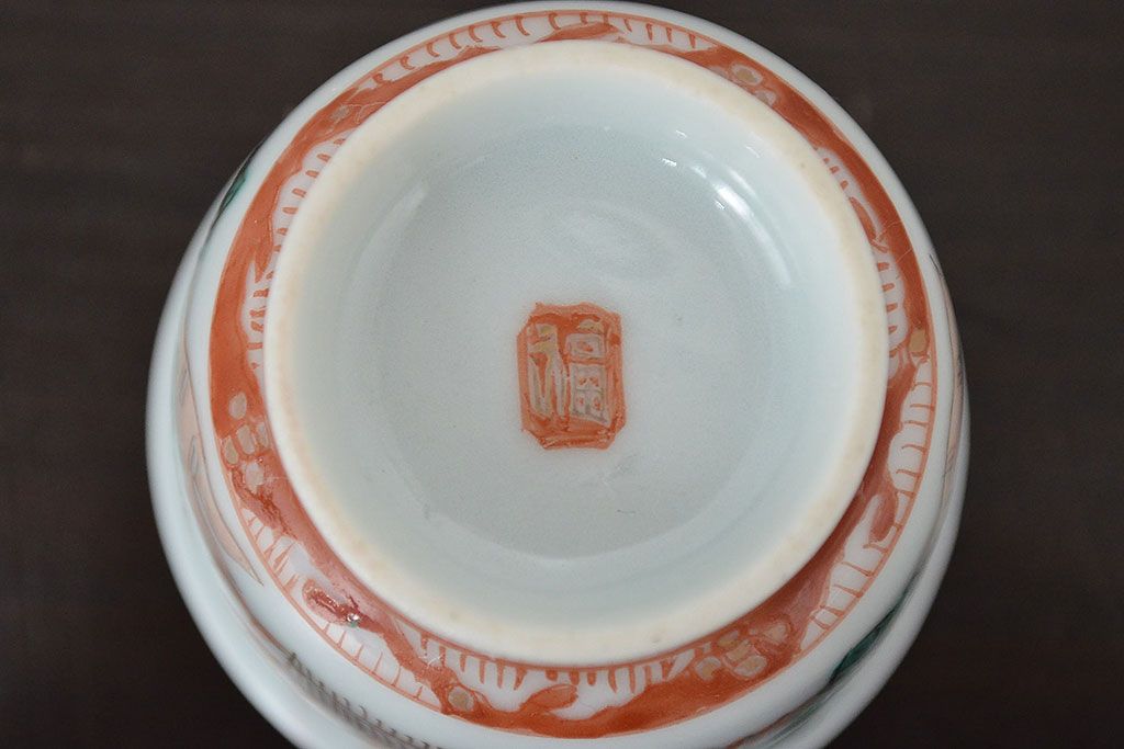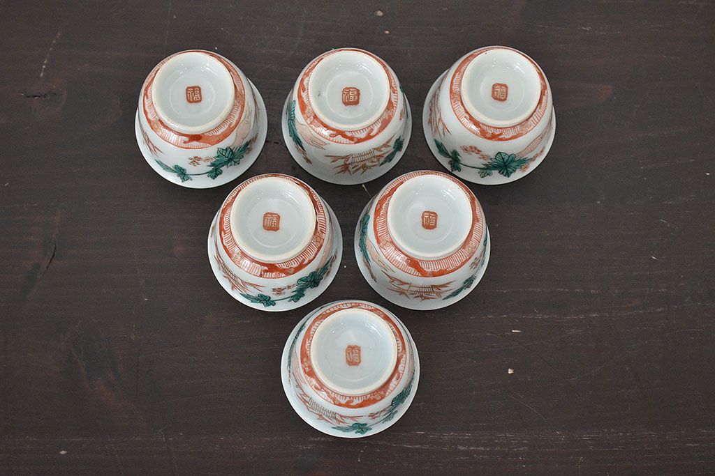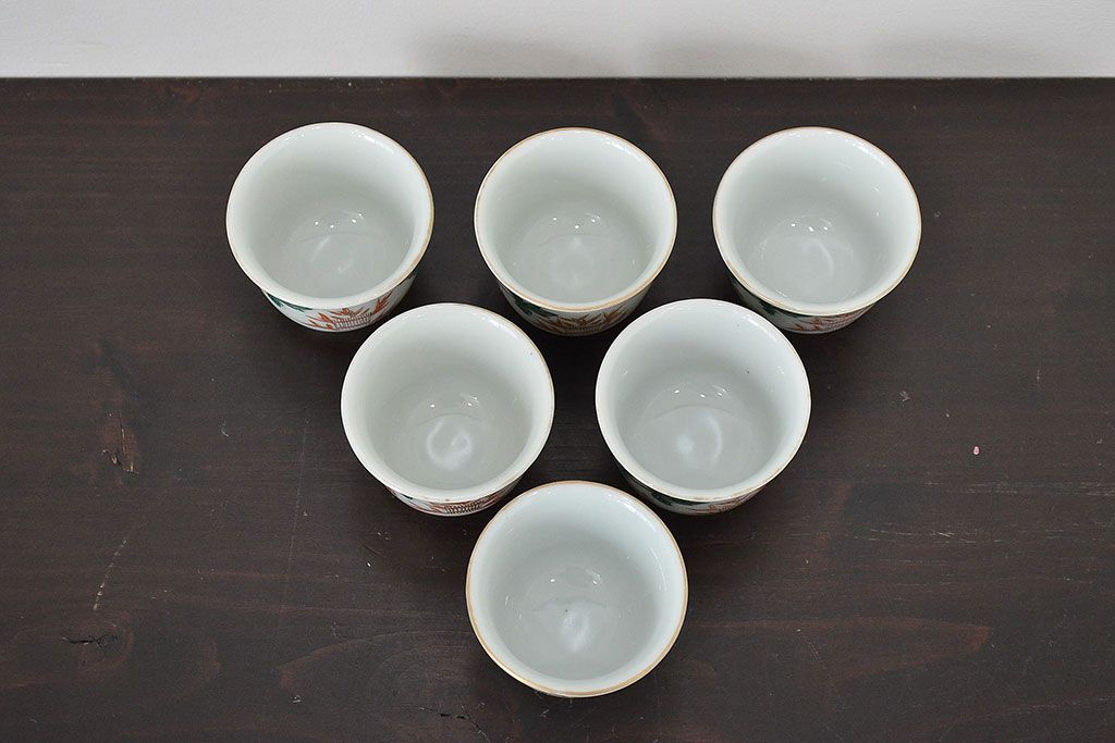 明治期 九谷焼 人参図 色絵 猪口6個(和食器、向付)(R-047185)
