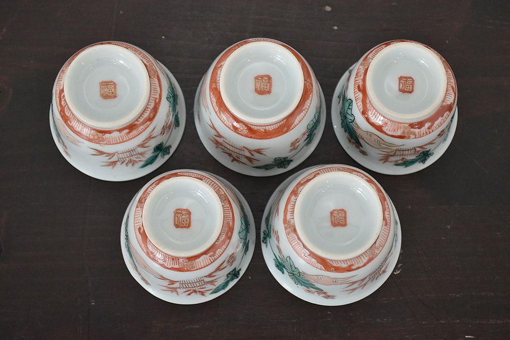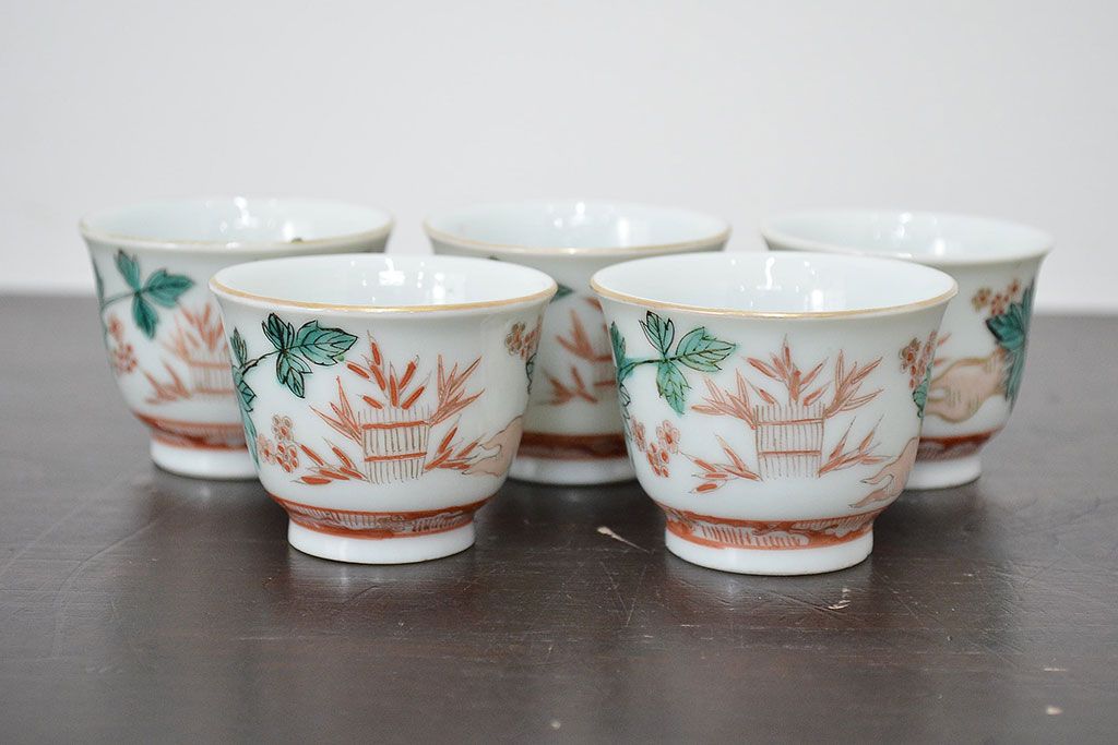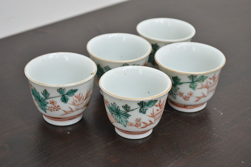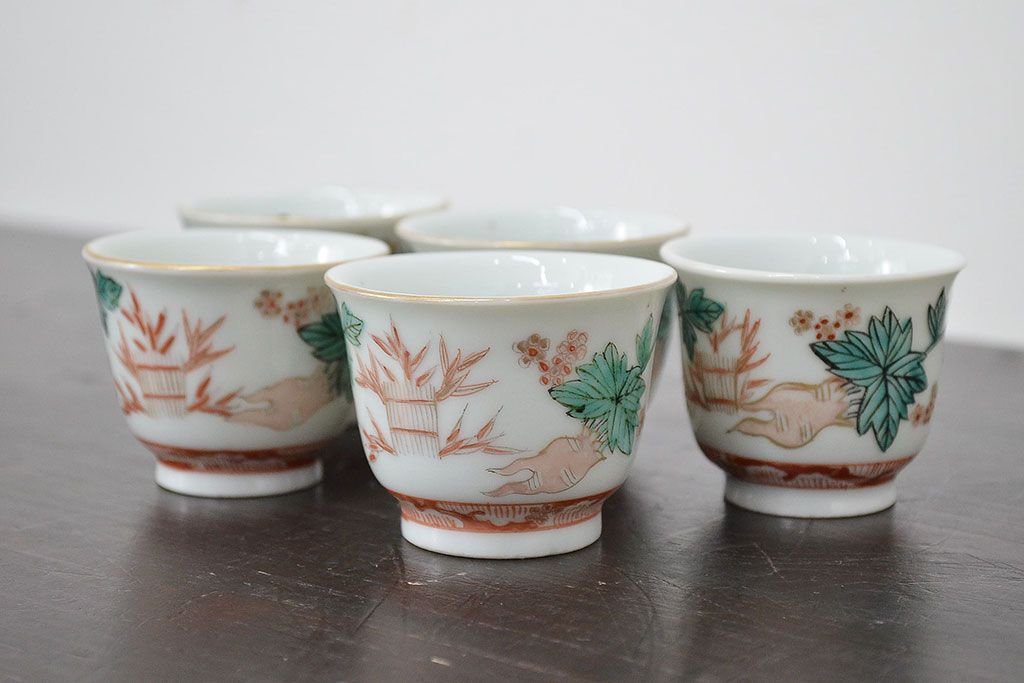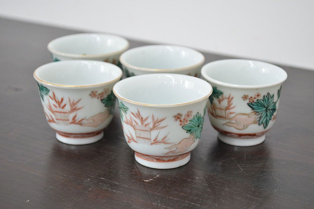 ラフジュ工房> 和食器・茶道具 > 明治期 九谷焼 人参図 色絵 猪口5個(和食器、向付)(R-047186)