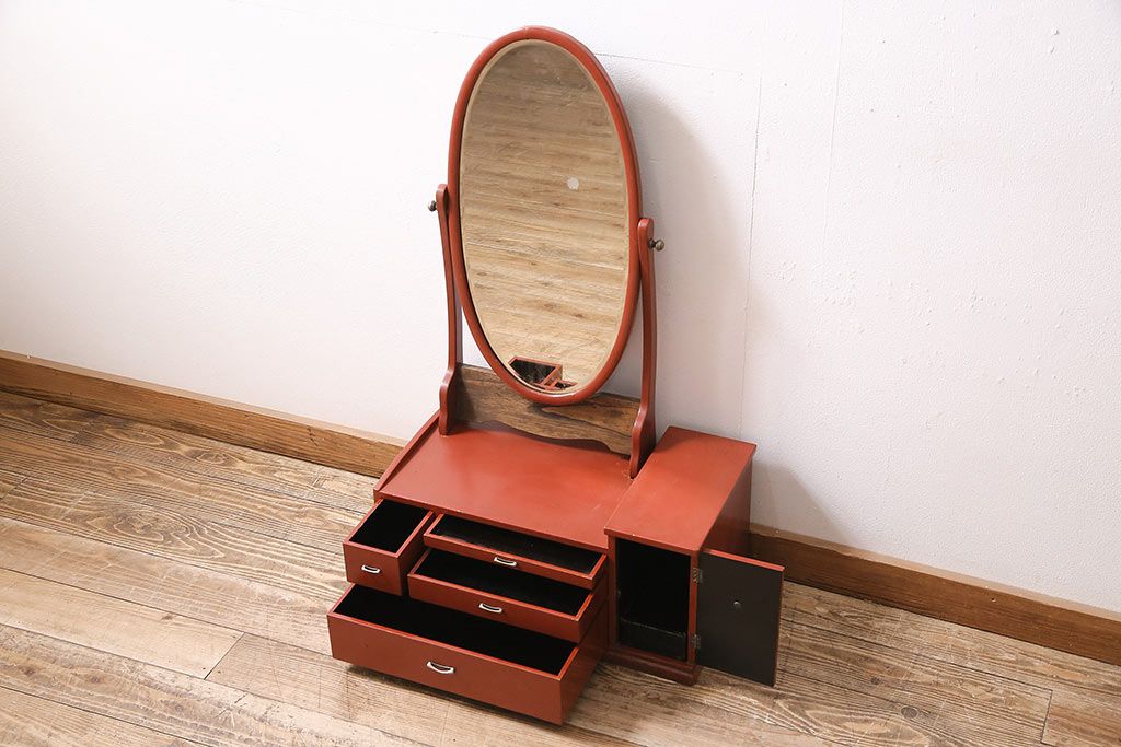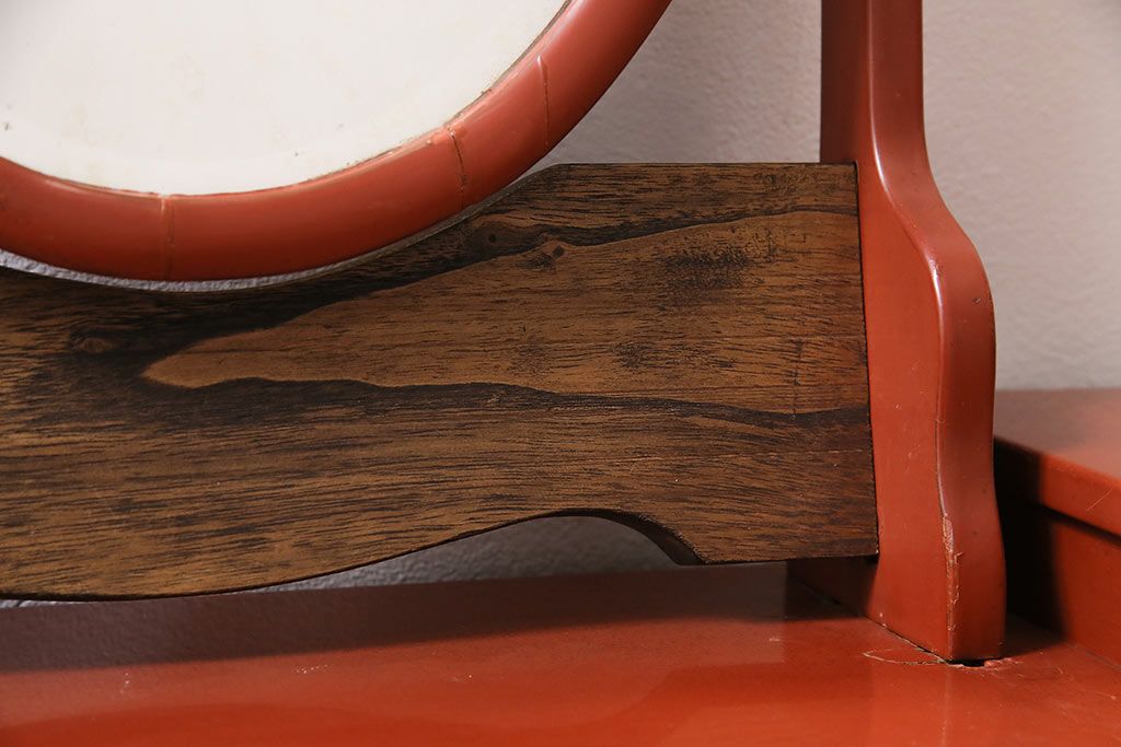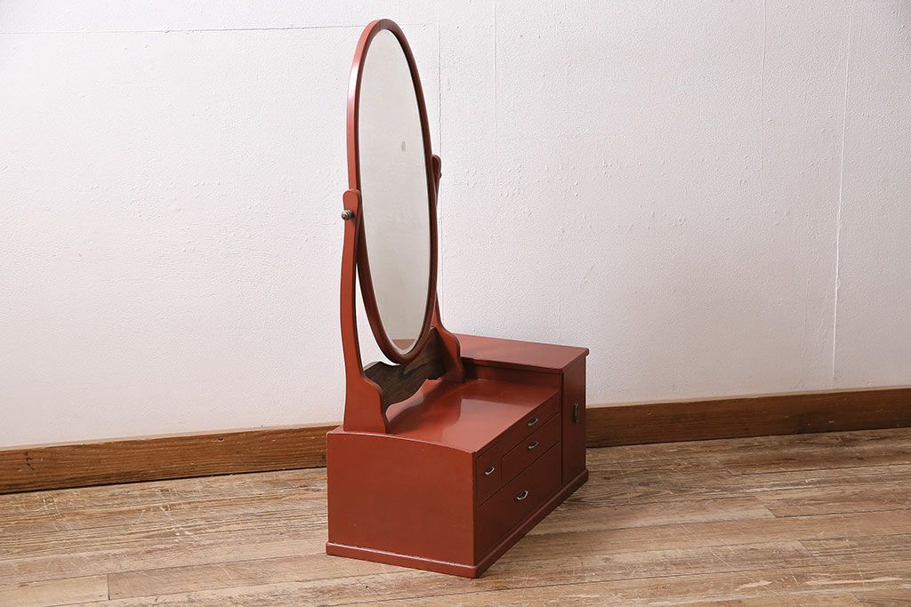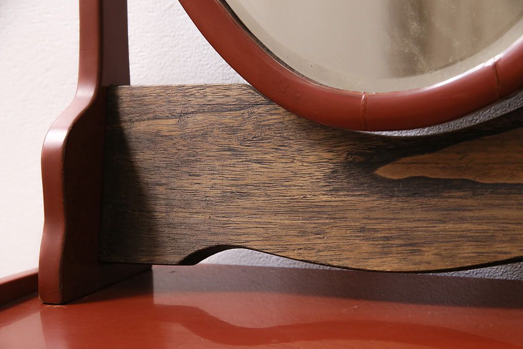 鏡 > 和製アンティーク 漆塗り 艶やかな朱が目を引く上品な佇まいの鏡台(化粧台、ドレッサー)(R-047126)