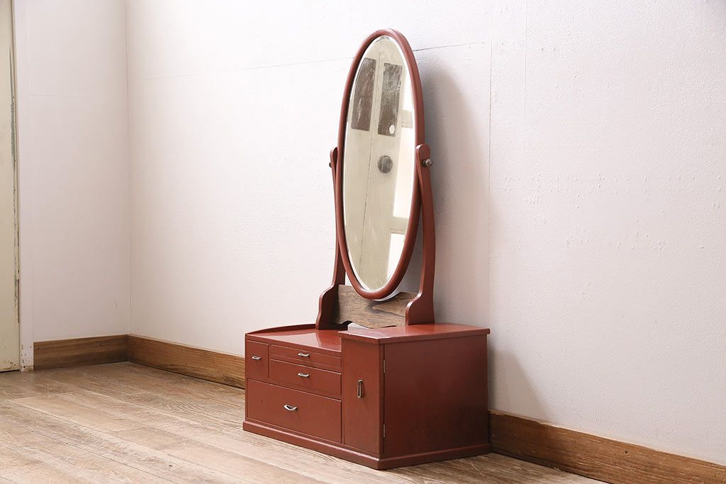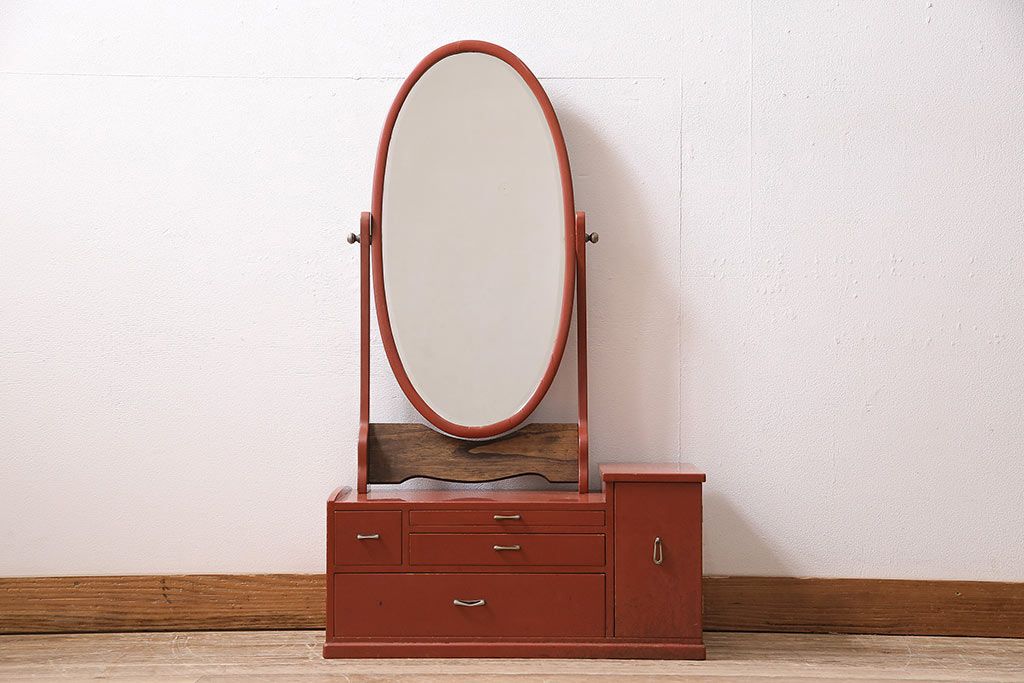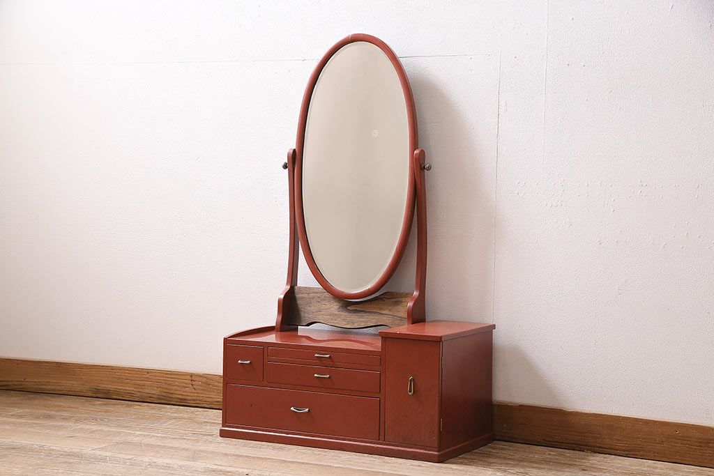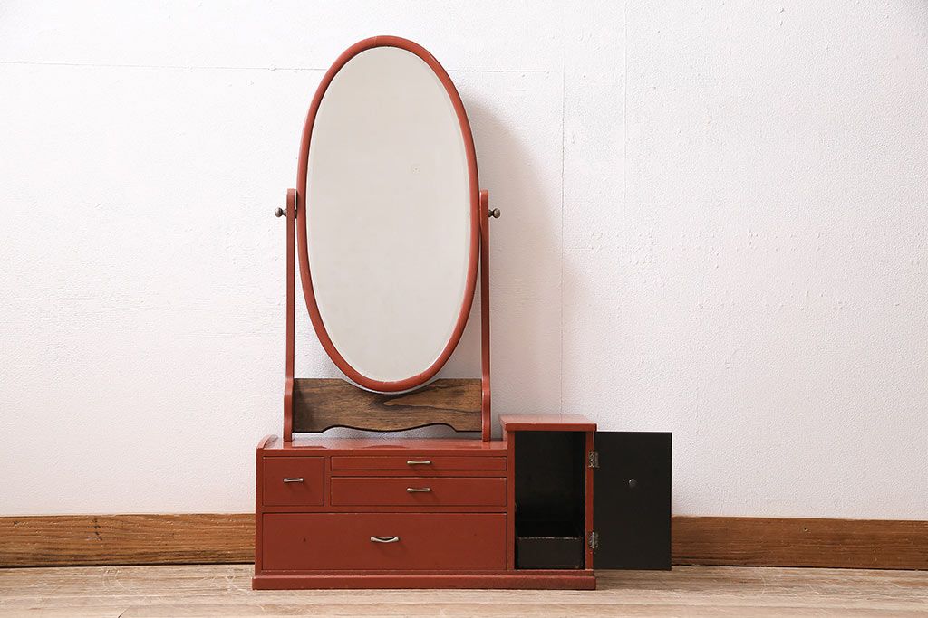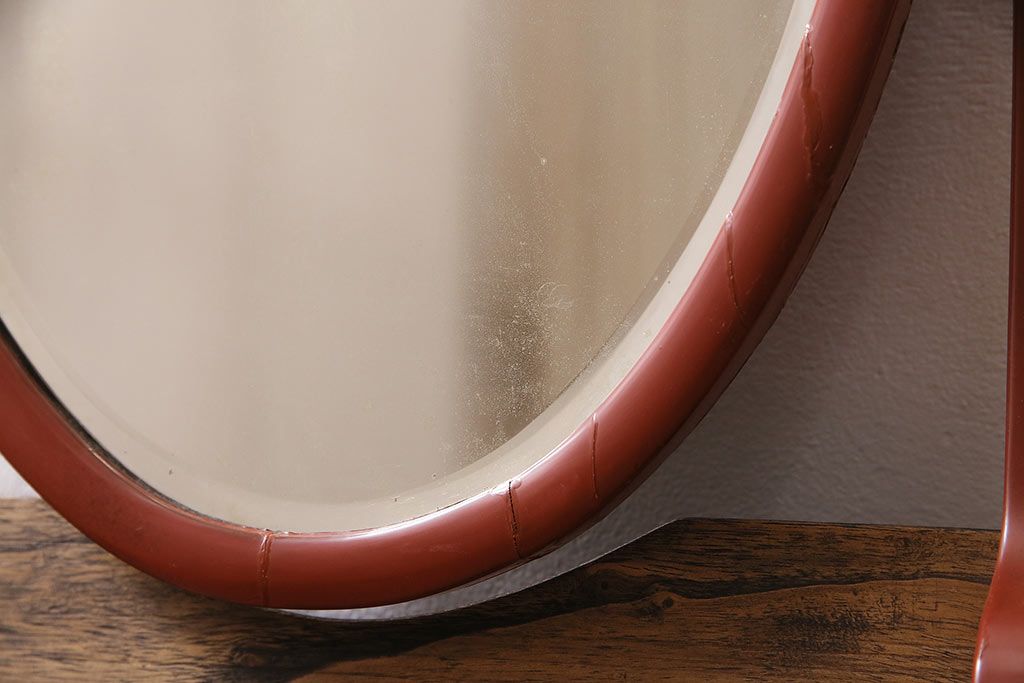鏡 > 和製アンティーク 漆塗り 艶やかな朱が目を引く上品な佇まいの鏡台(化粧台、ドレッサー)(R-047126)