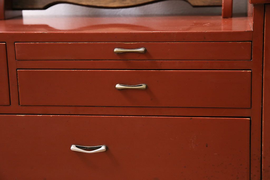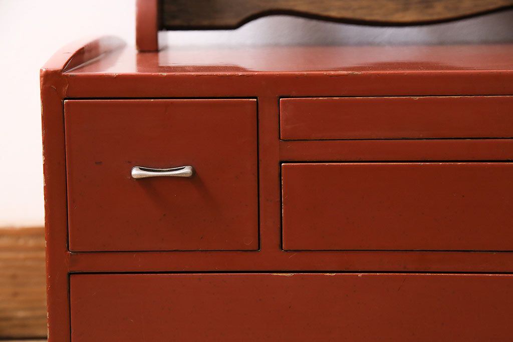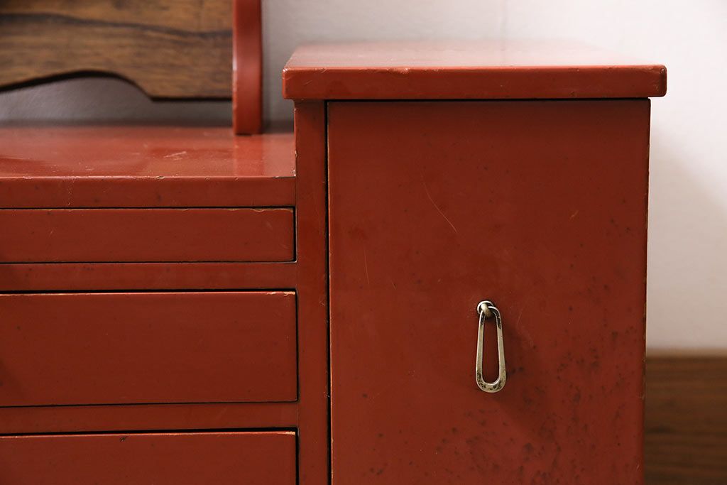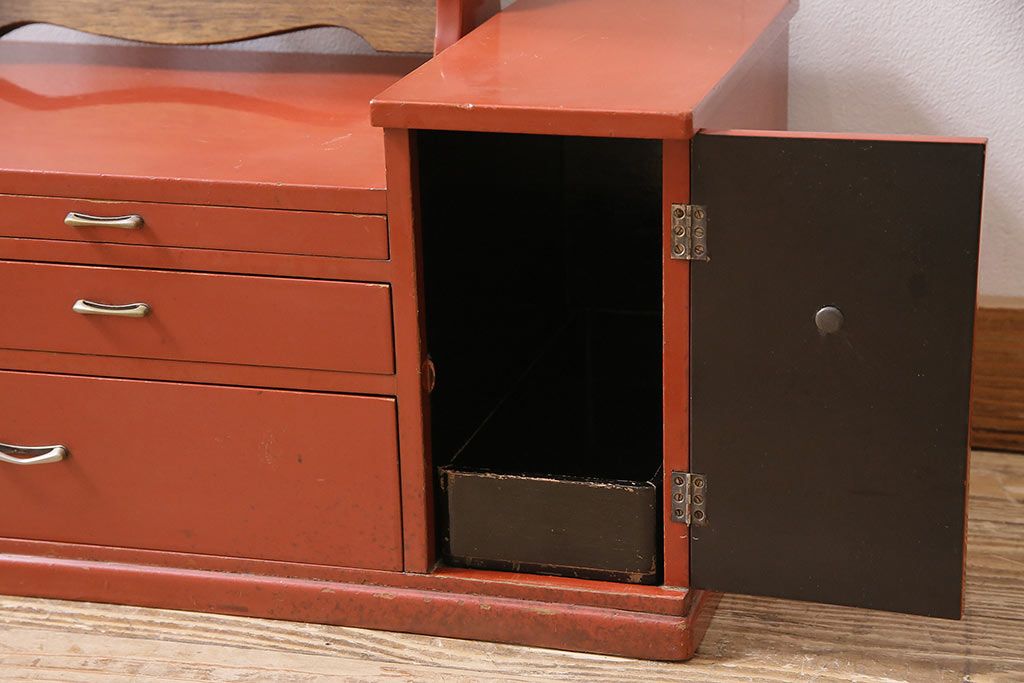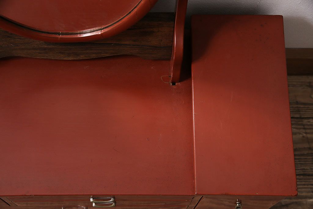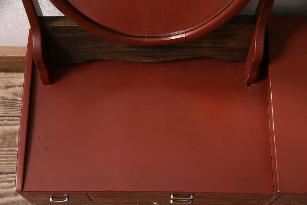 和製アンティーク 漆塗り 艶やかな朱が目を引く上品な佇まいの鏡台(化粧台、ドレッサー)(R-047126)です。