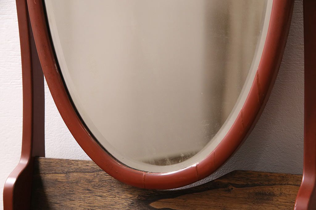 鏡> 卓上鏡 > 和製アンティーク 漆塗り 艶やかな朱が目を引く上品な佇まいの鏡台(化粧台、ドレッサー)(R-047126)