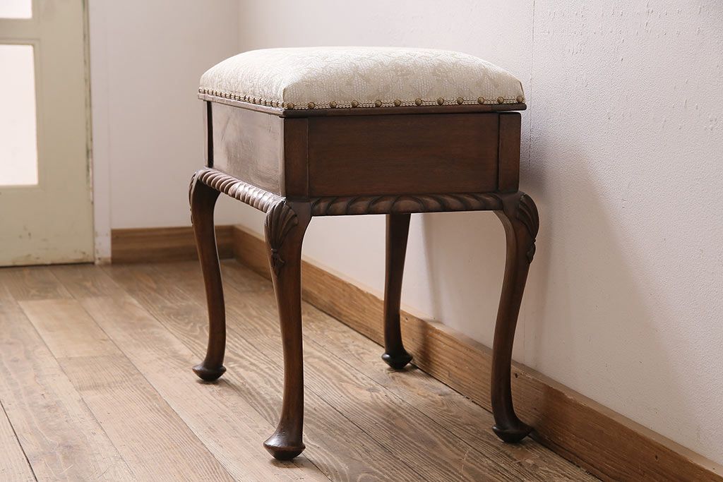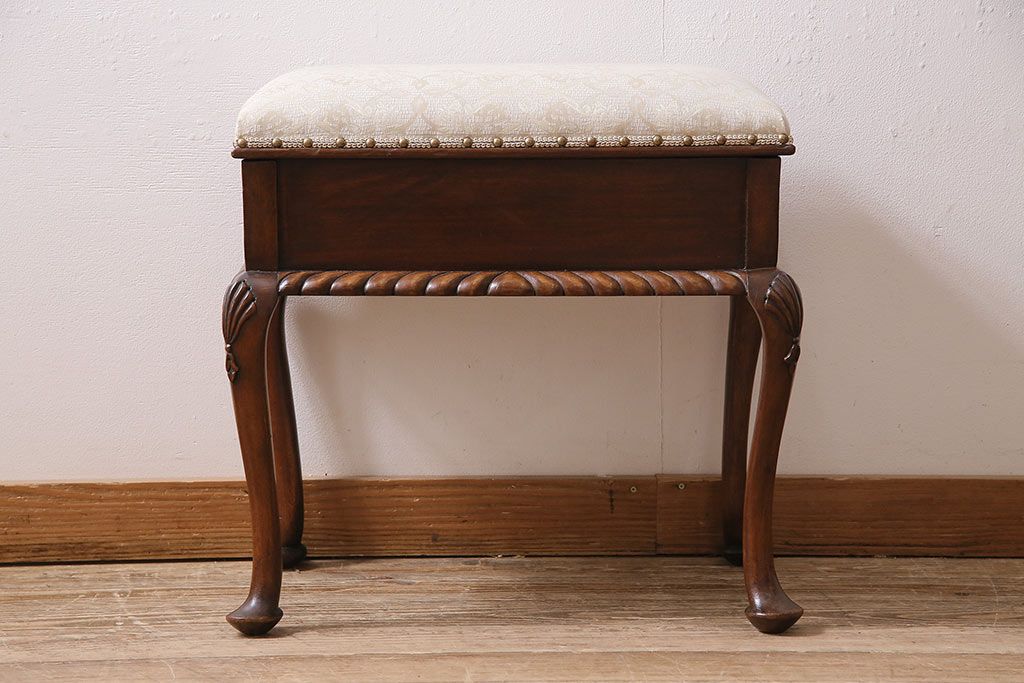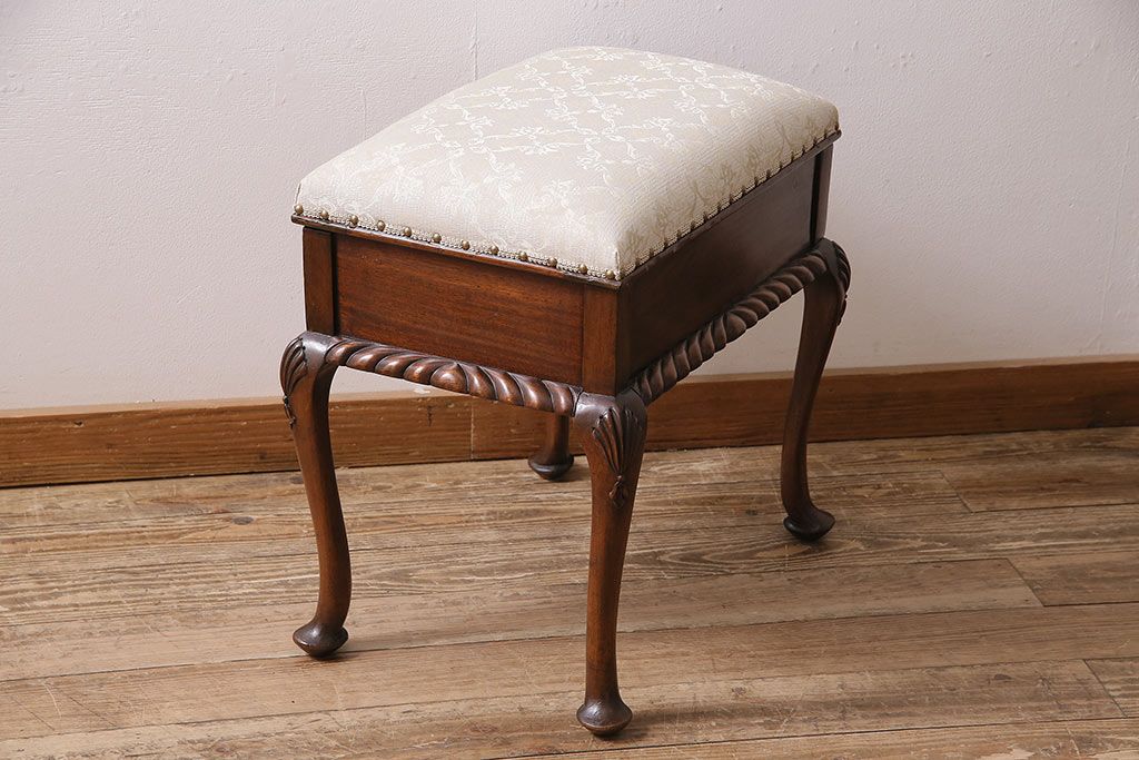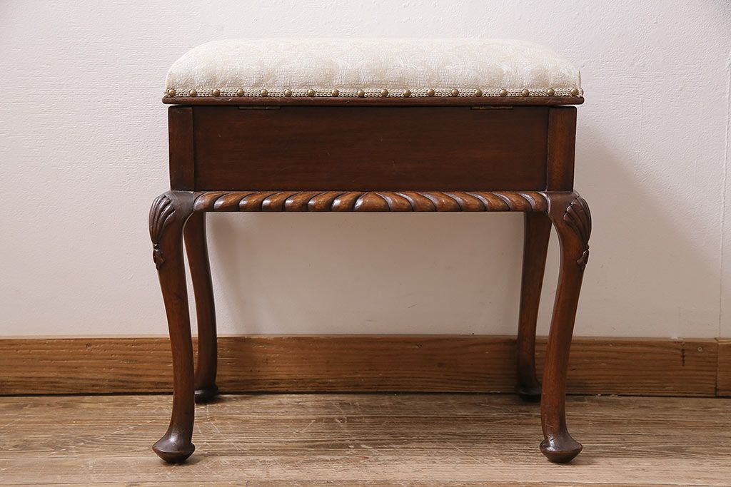 イギリスアンティーク ARDING&HOBBS マホガニー材 収納付きが珍しい!凝った彫刻や脚のデザインがエレガントなスツール(チェア、椅子)(R-047107)です。