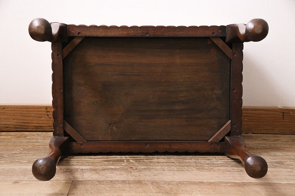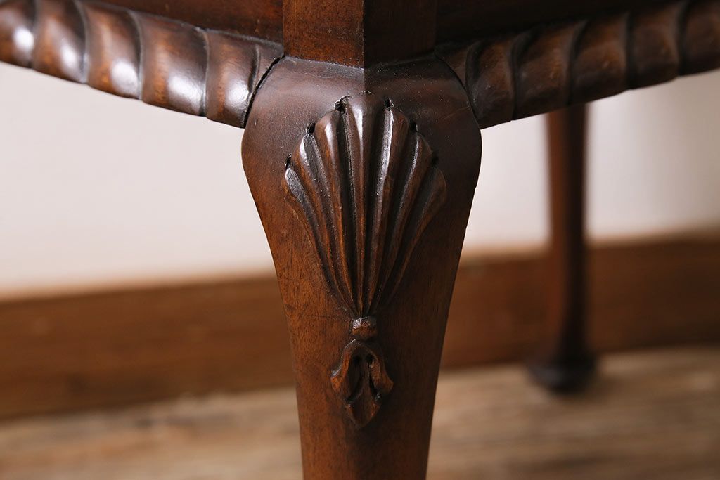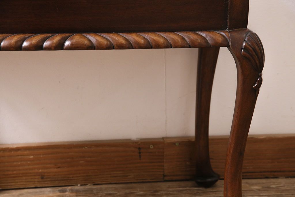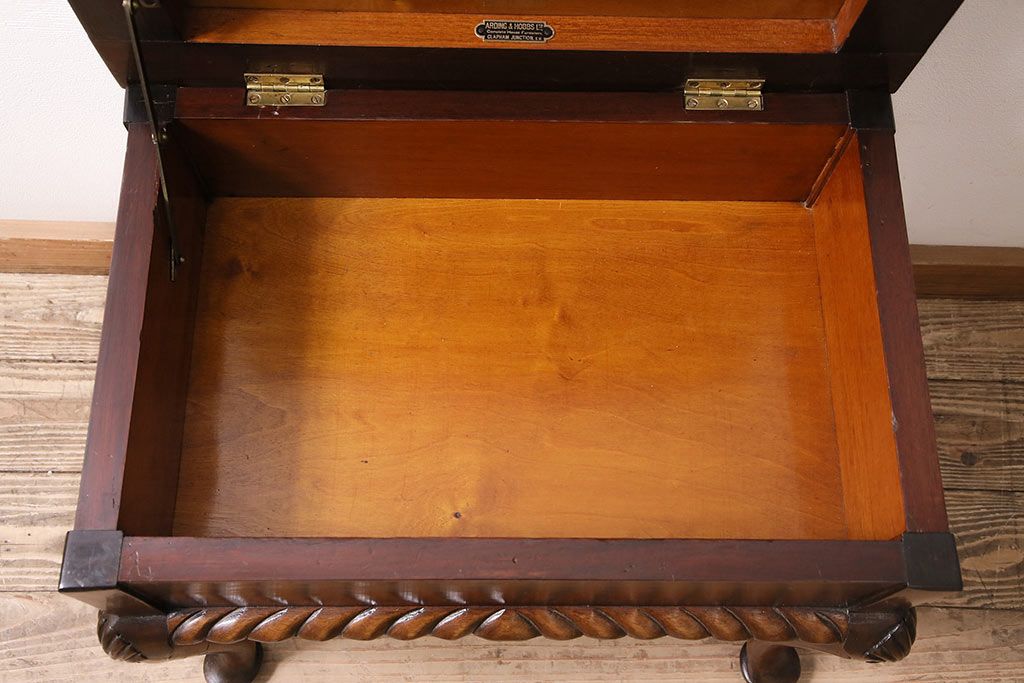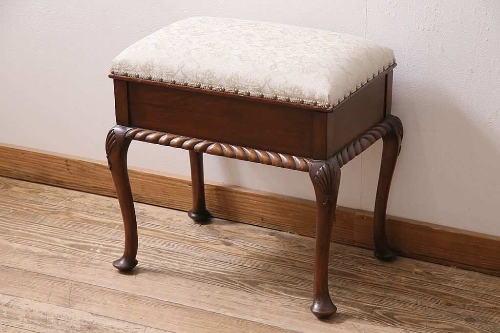 イギリスアンティーク ARDING&HOBBS マホガニー材 収納付きが珍しい!凝った彫刻や脚のデザインがエレガントなスツール(チェア、椅子)(R-047107)です。