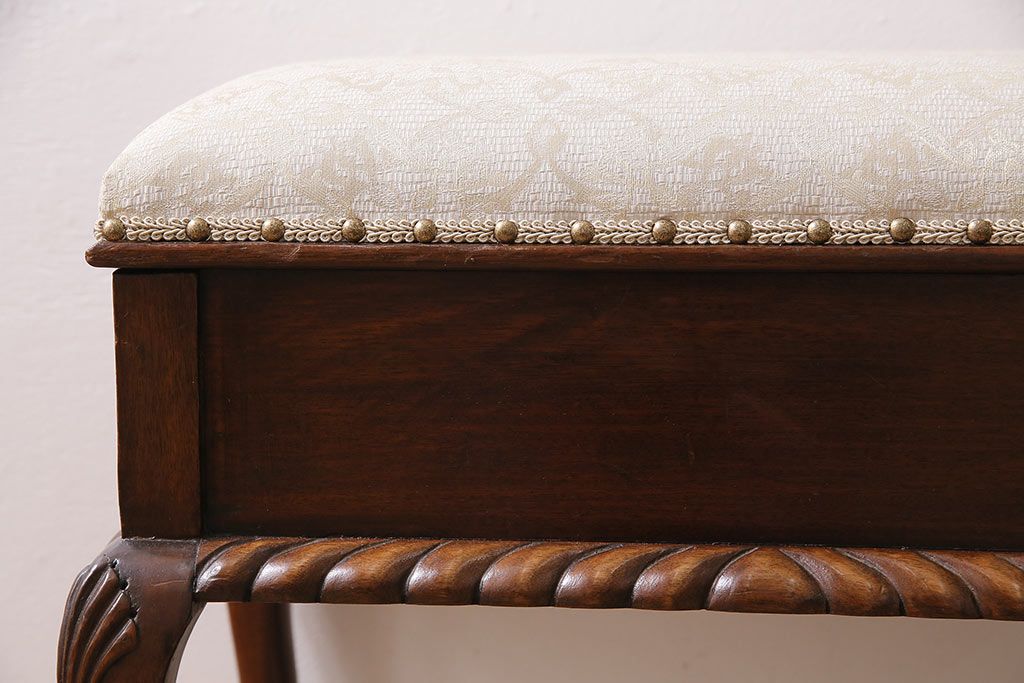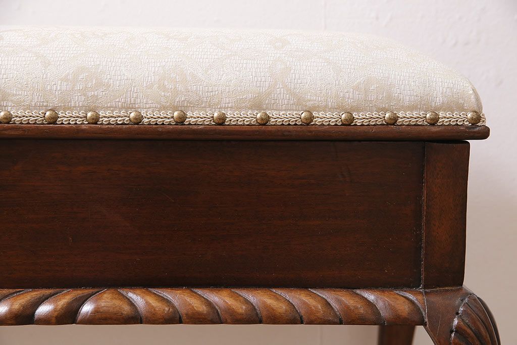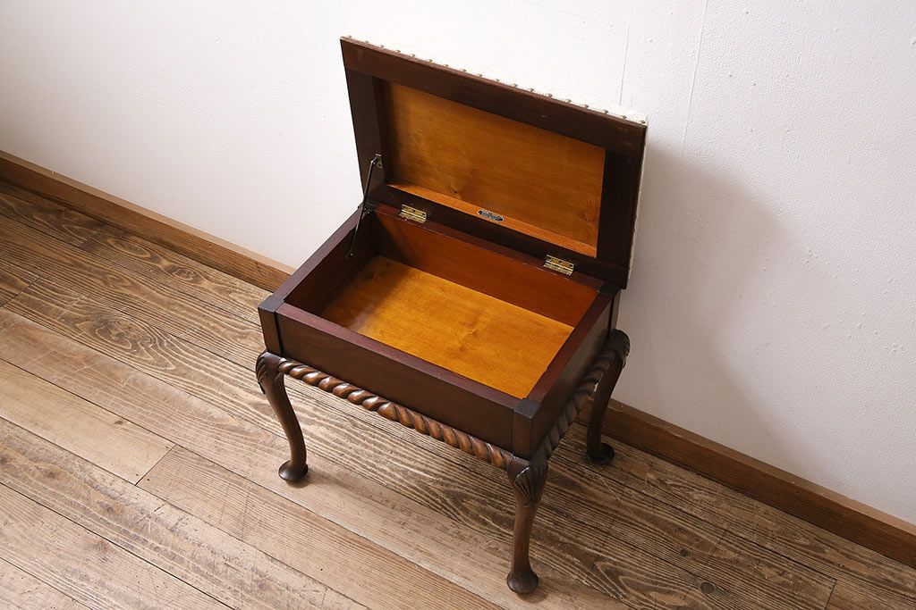 イギリスアンティーク ARDING&HOBBS マホガニー材 収納付きが珍しい!凝った彫刻や脚のデザインがエレガントなスツール(チェア、椅子)(R-047107)
