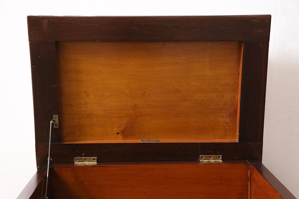 椅子・ベンチ> スツール > イギリスアンティーク ARDING&HOBBS マホガニー材 収納付きが珍しい!凝った彫刻や脚のデザインがエレガントなスツール(チェア、椅子)(R-047107)