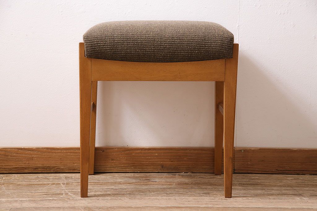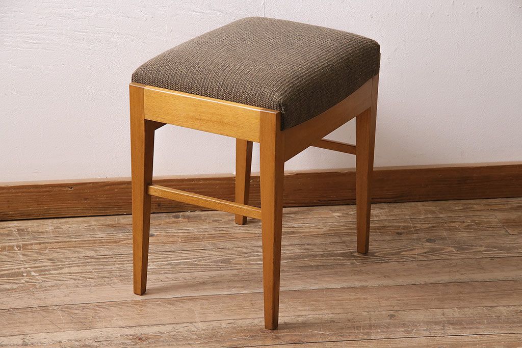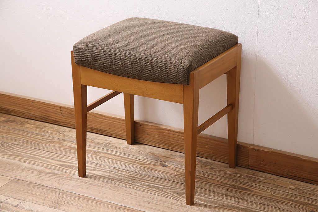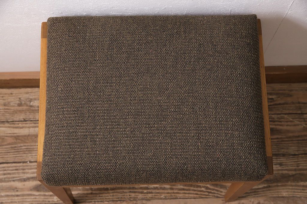 椅子・ベンチ> スツール > イギリスヴィンテージ HERBERT E. GIBBS(ハーバート・E・ギブス) チーク材 ブラウン座面がお洒落な角型スツール(チェア、椅子、ビンテージ)(R-047105)