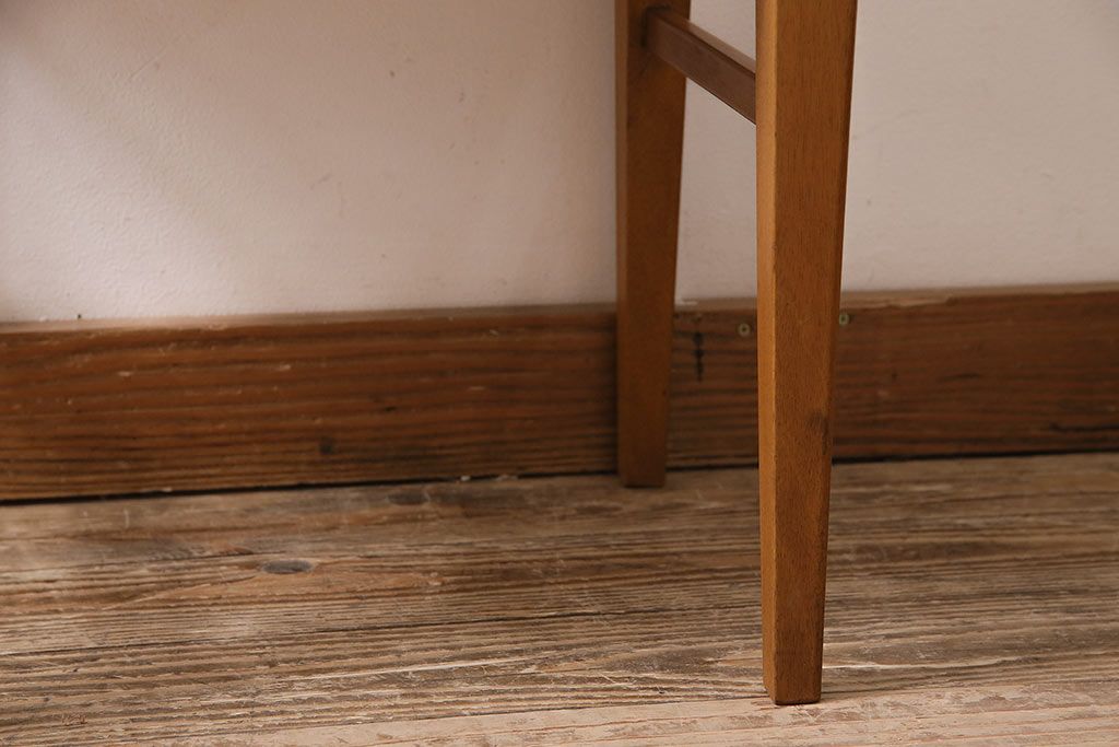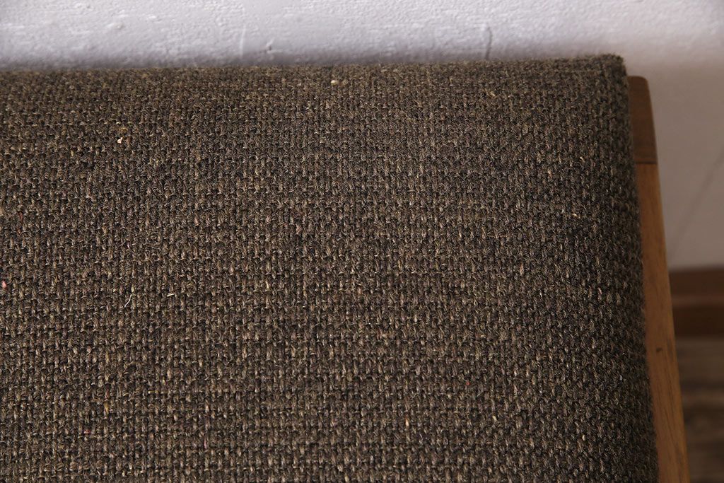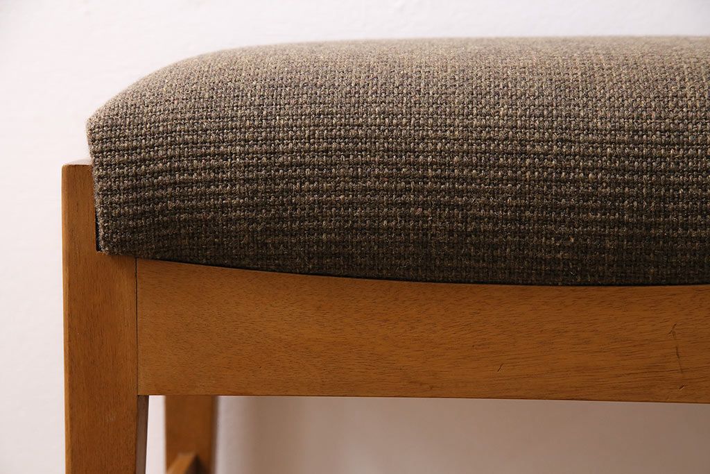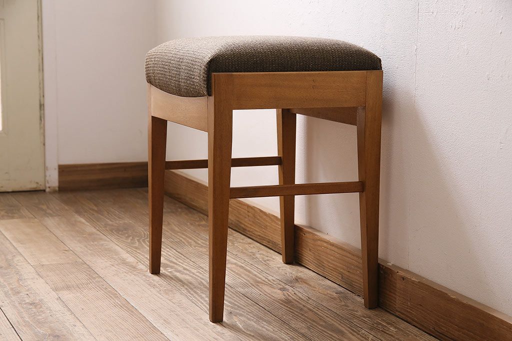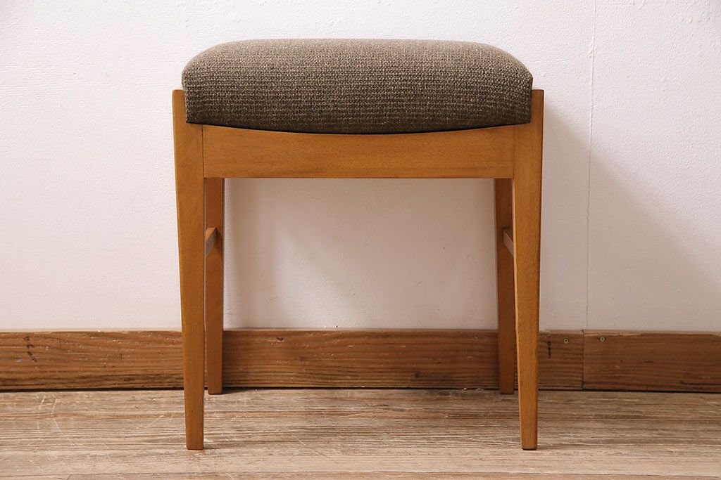 椅子・ベンチ> スツール > イギリスヴィンテージ HERBERT E. GIBBS(ハーバート・E・ギブス) チーク材 ブラウン座面がお洒落な角型スツール(チェア、椅子、ビンテージ)(R-047105)