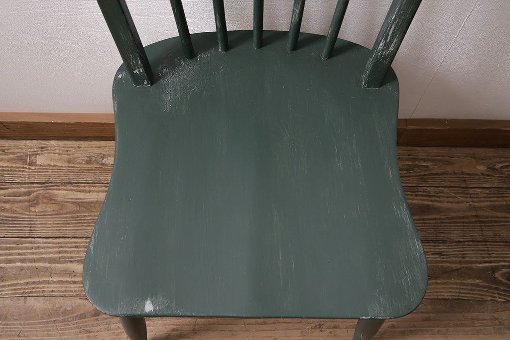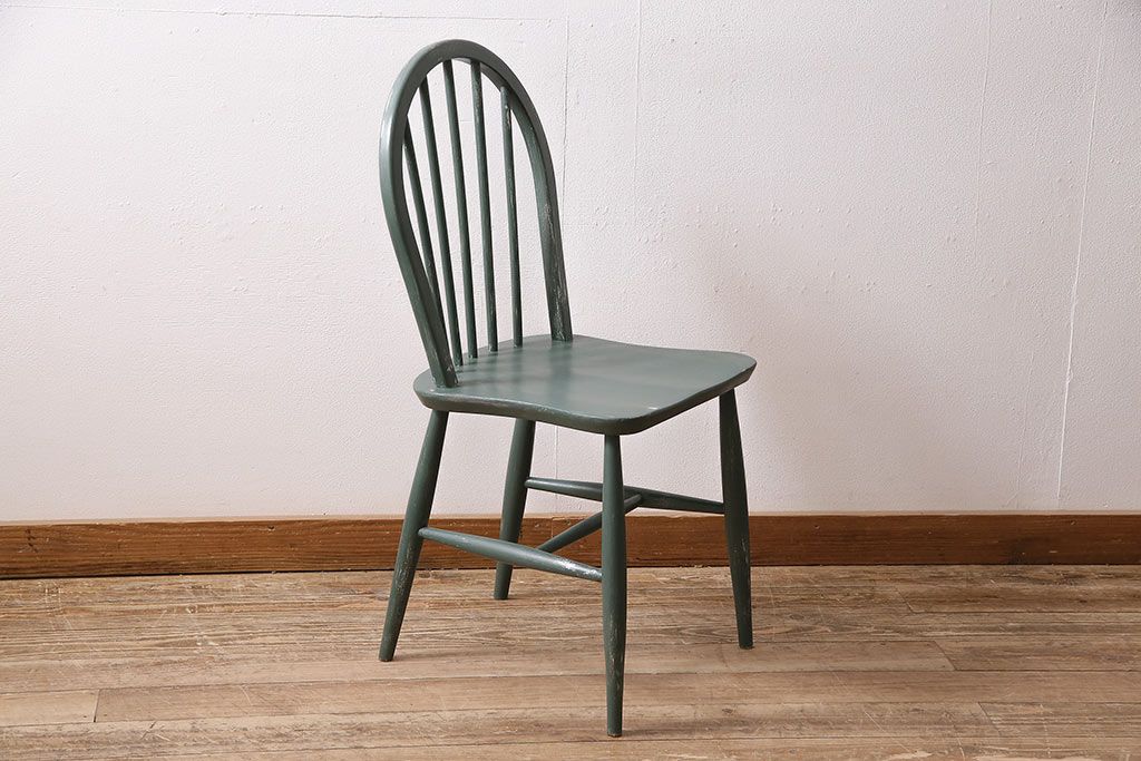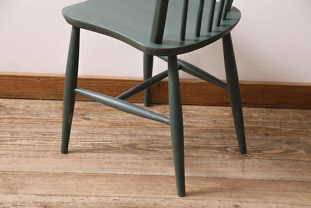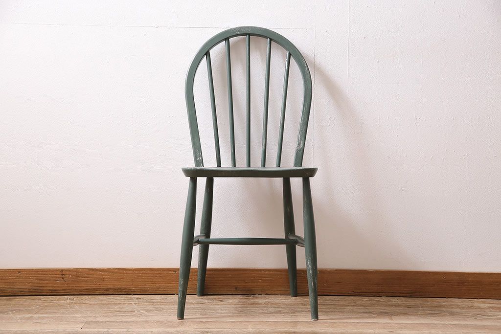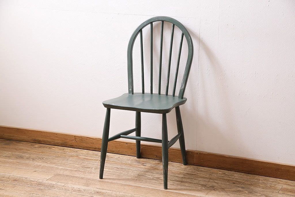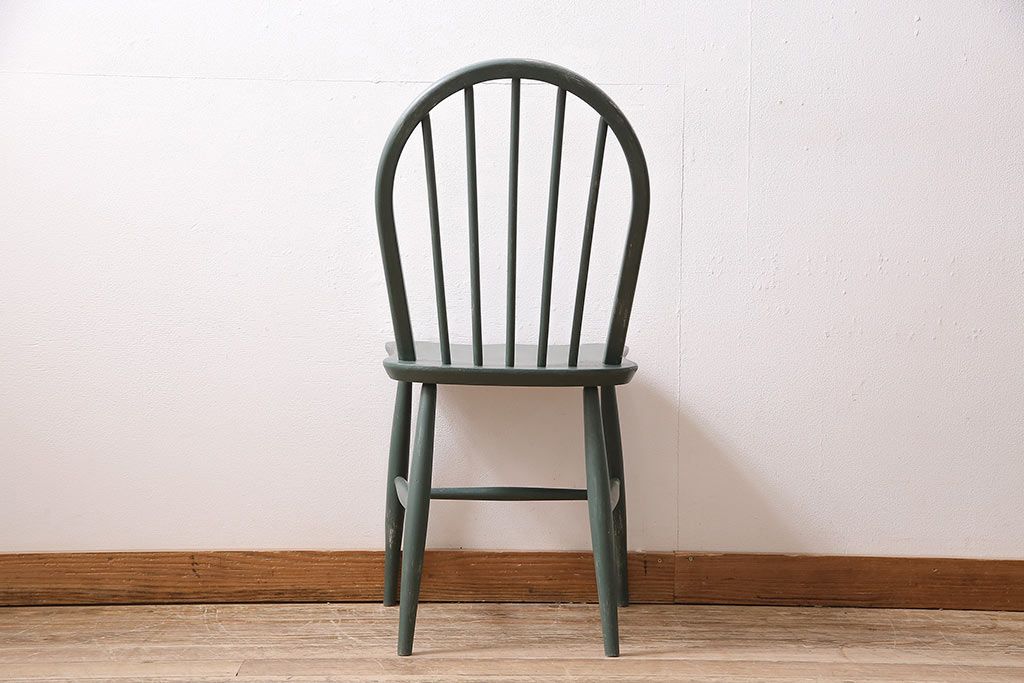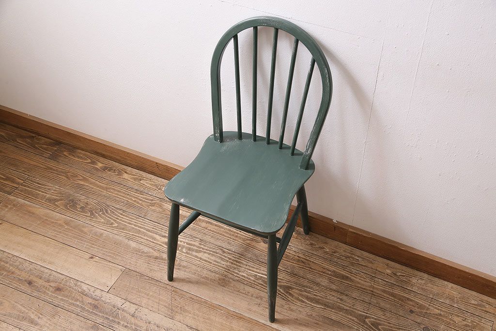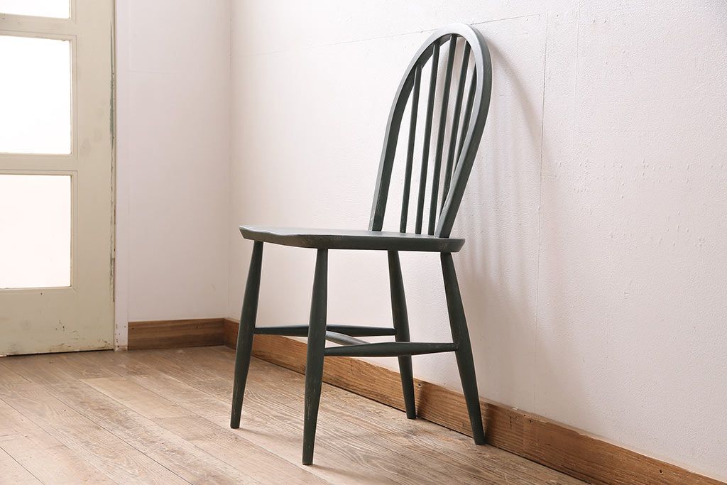 イギリスヴィンテージ ERCOL(アーコール) お部屋のアクセントになるダークグリーンのチェア(ダイニングチェア、ビンテージ)(R-047138)