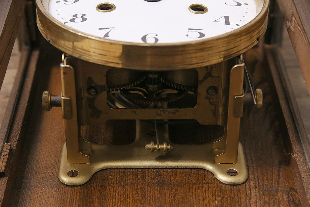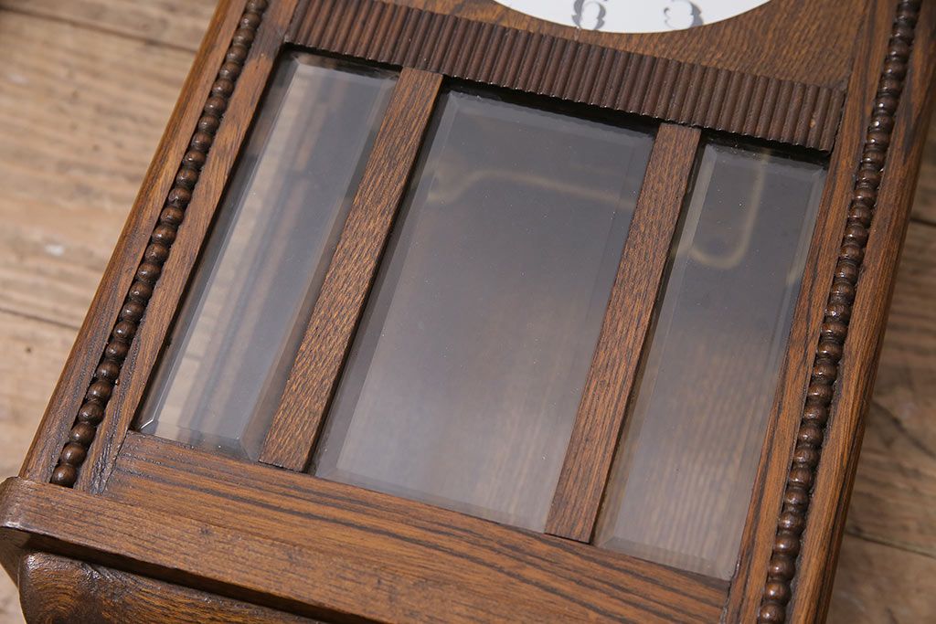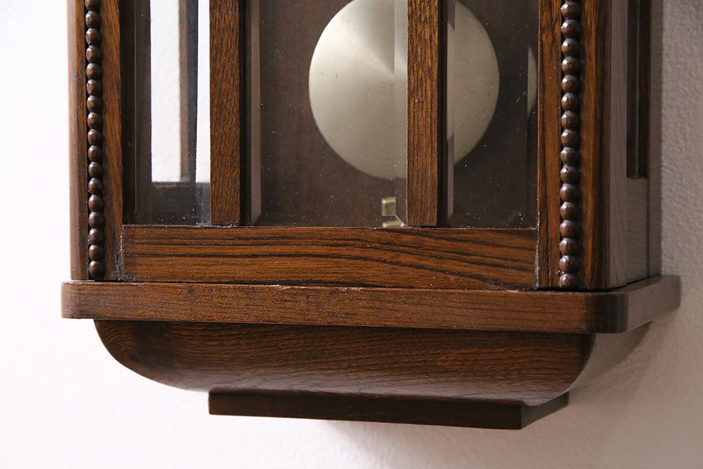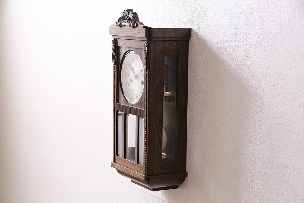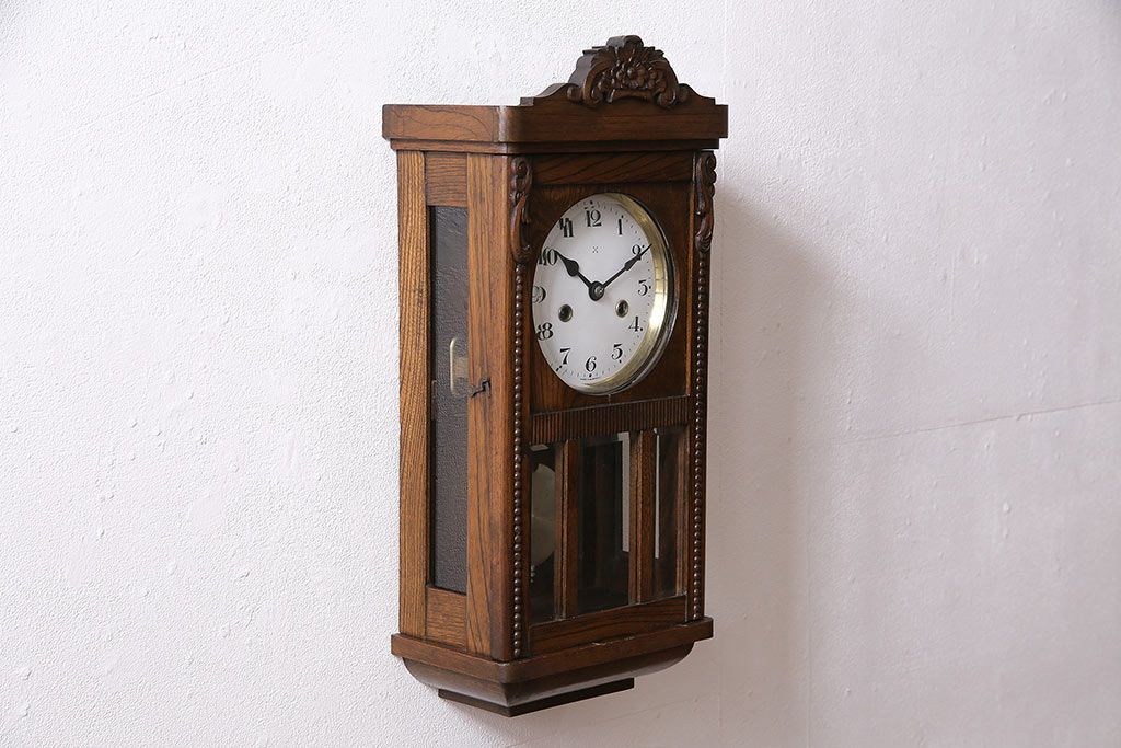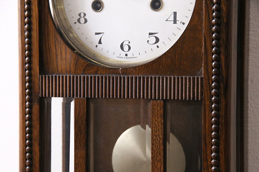 アンティーク時計 ドイツ製 ゼンマイ式 浮き彫り 木の温もりを感じる振り子時計(掛け時計、柱時計、古時計)(R-047099)