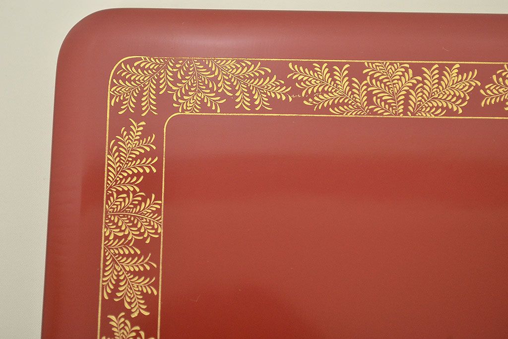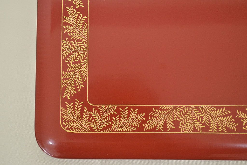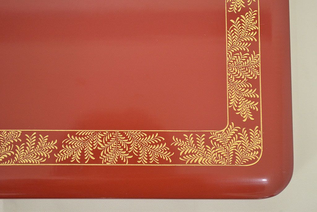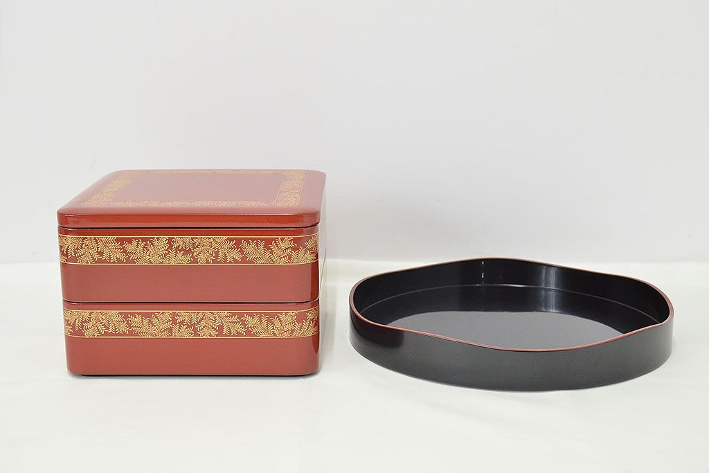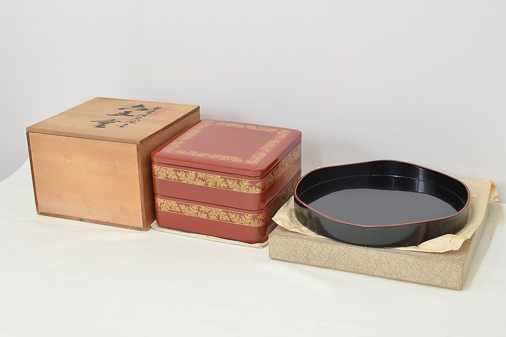 輪島塗 朱塗 信夫 沈金 木製二段重 / 奥田五右衛門 木製お盆(漆器)(R-047427)