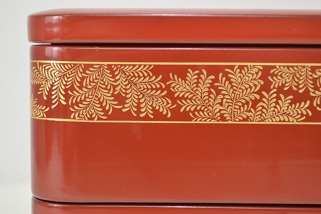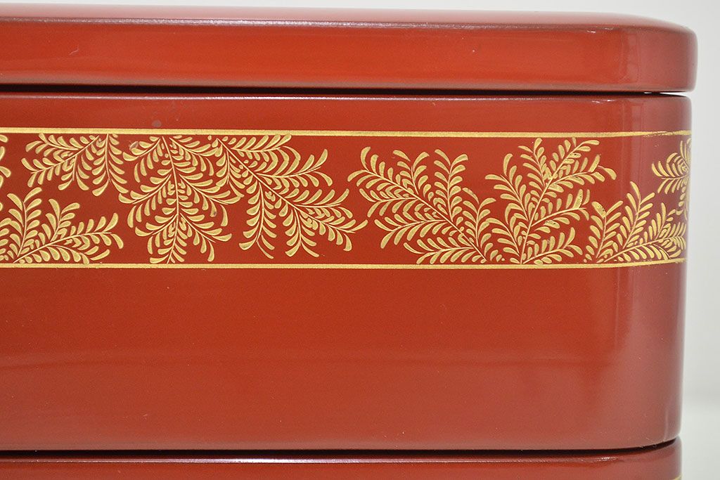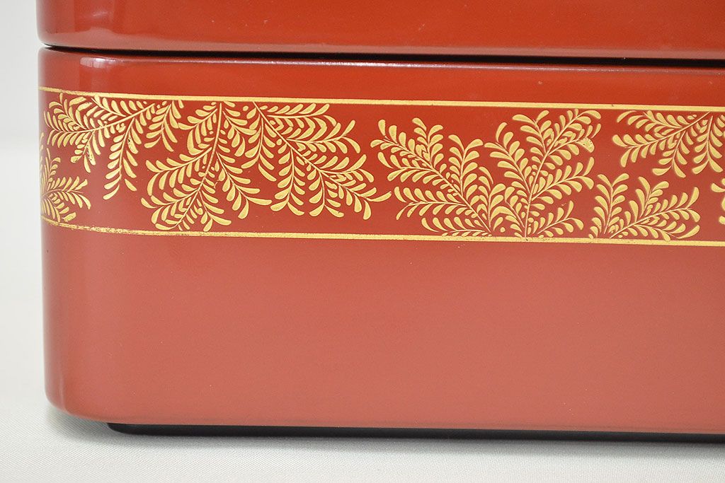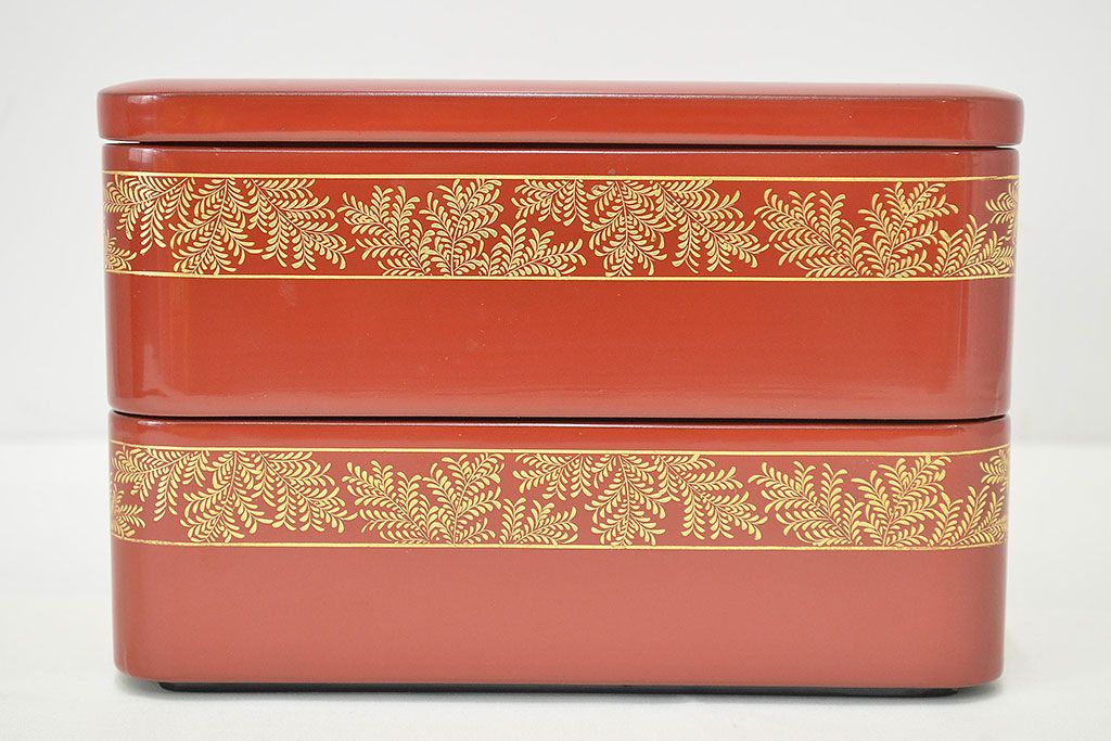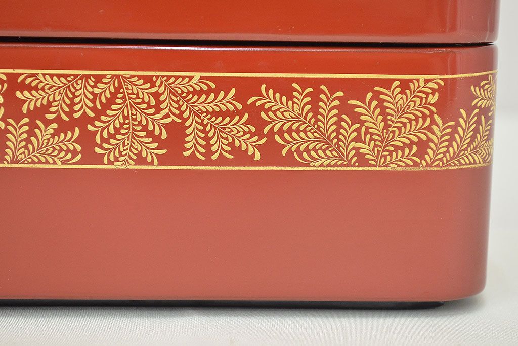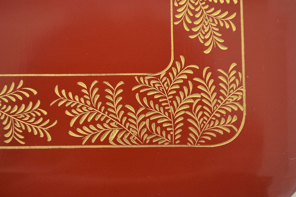 輪島塗 朱塗 信夫 沈金 木製二段重 / 奥田五右衛門 木製お盆(漆器)(R-047427)