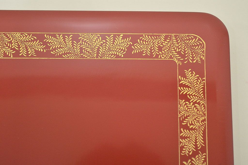 輪島塗 朱塗 信夫 沈金 木製二段重 / 奥田五右衛門 木製お盆(漆器)(R-047427)です。