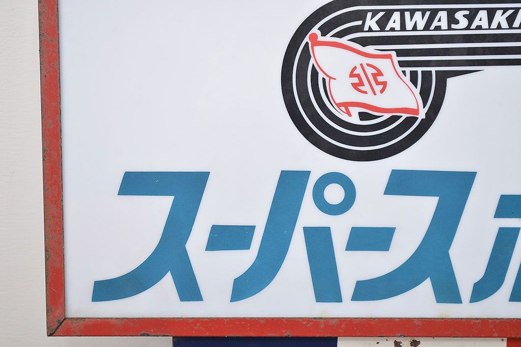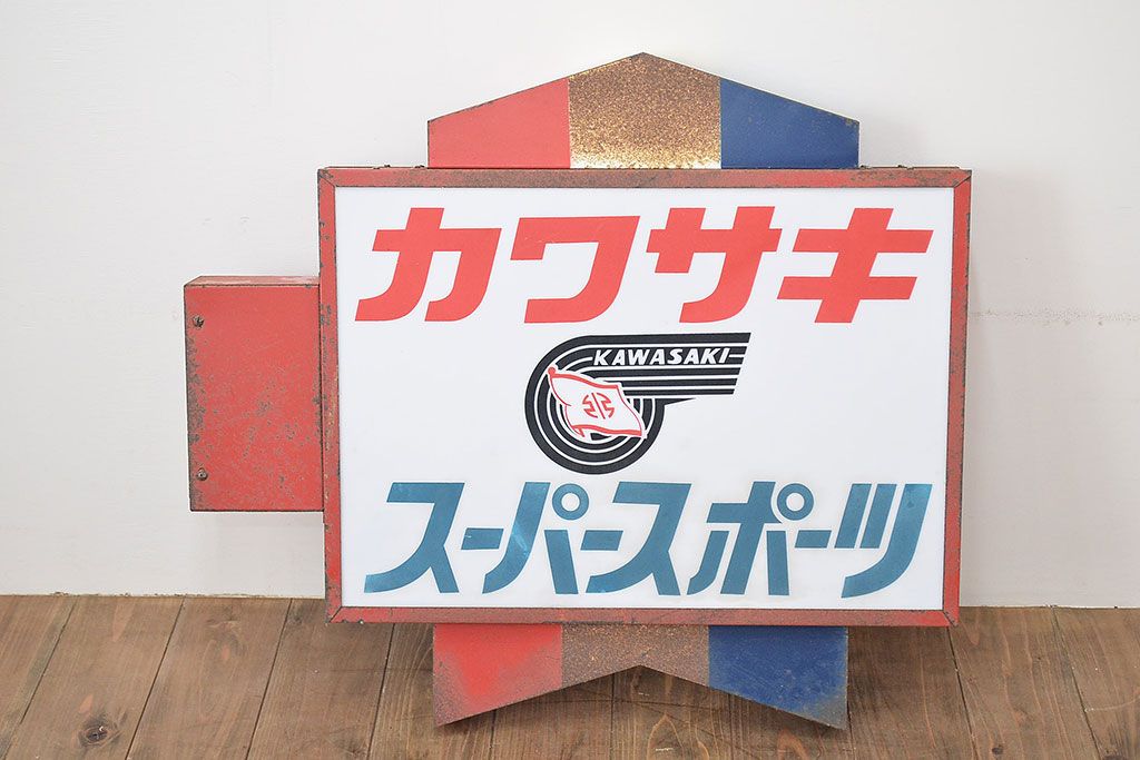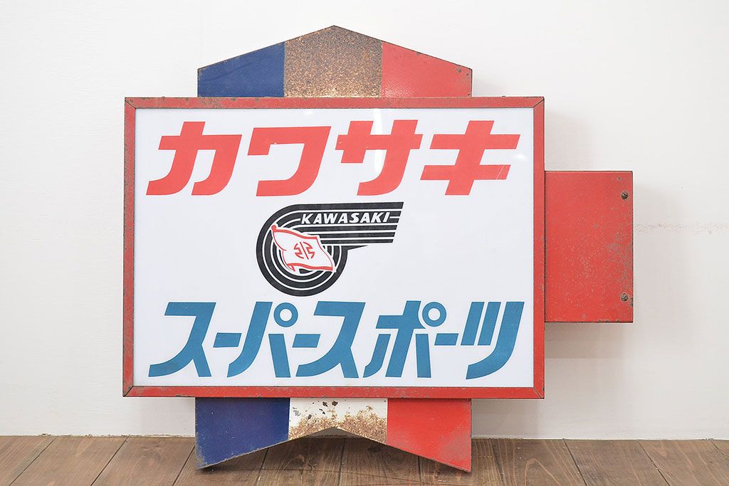 古い カワサキ スーパースポーツ 両面看板(ブリキ、アクリル)(R-047431)