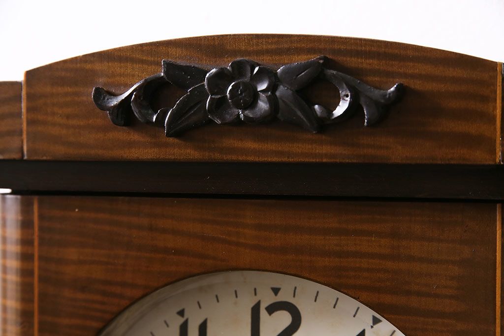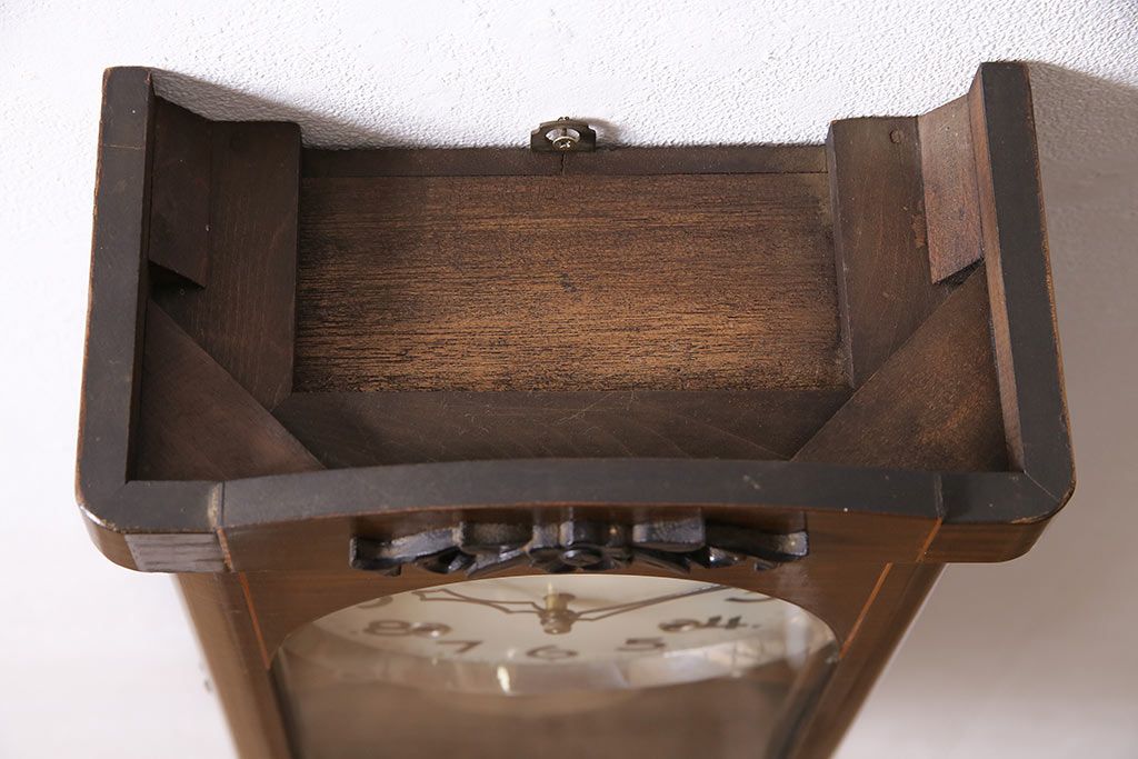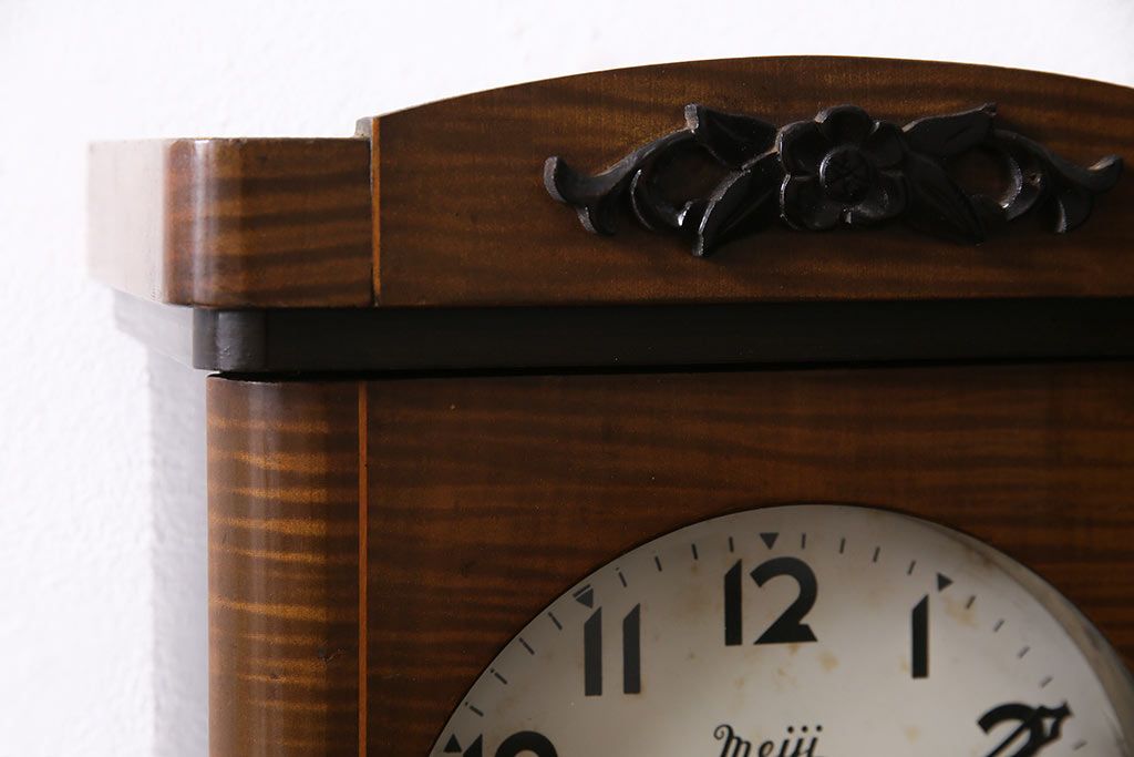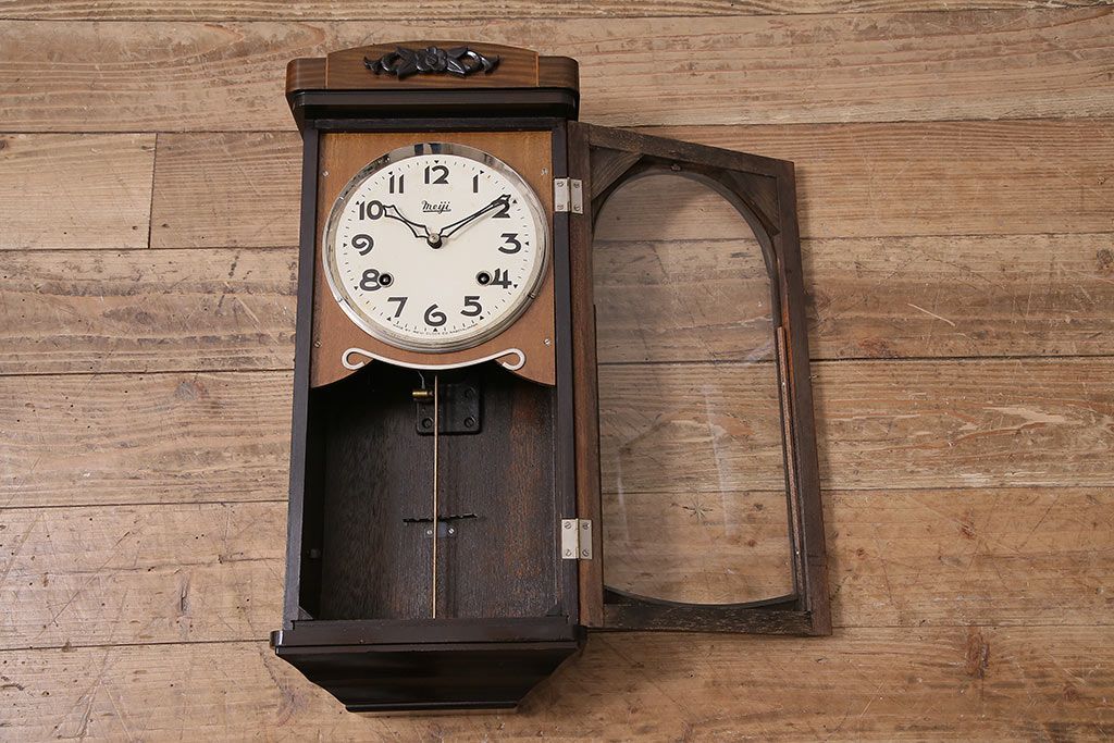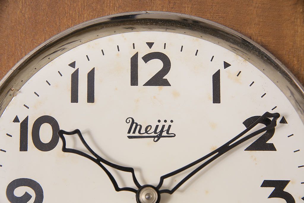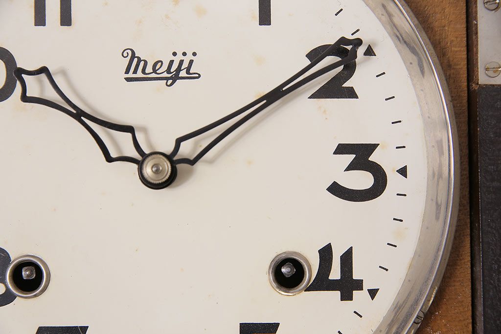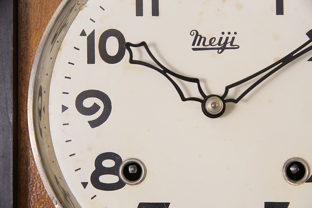 時計> 掛け時計 > ヴィンテージ時計 昭和中期 Meiji(明治時計社) ゼンマイ式 クラシカルな雰囲気溢れる大振りの掛け時計(振り子時計、柱時計、古時計、ビンテージ)(R-047039)