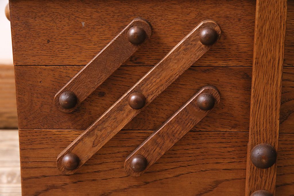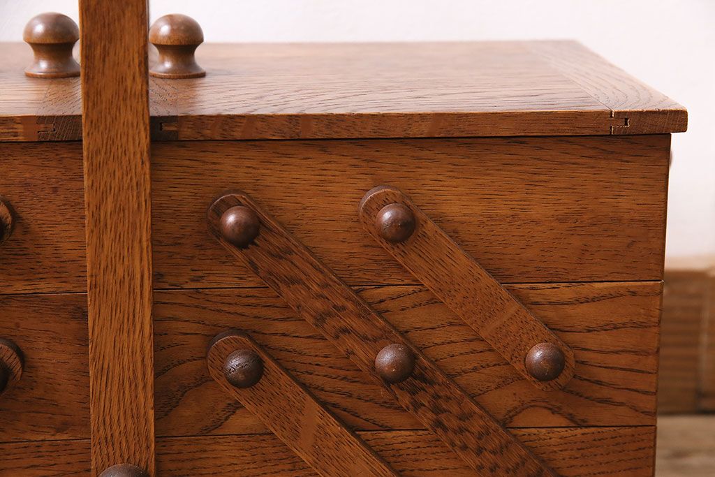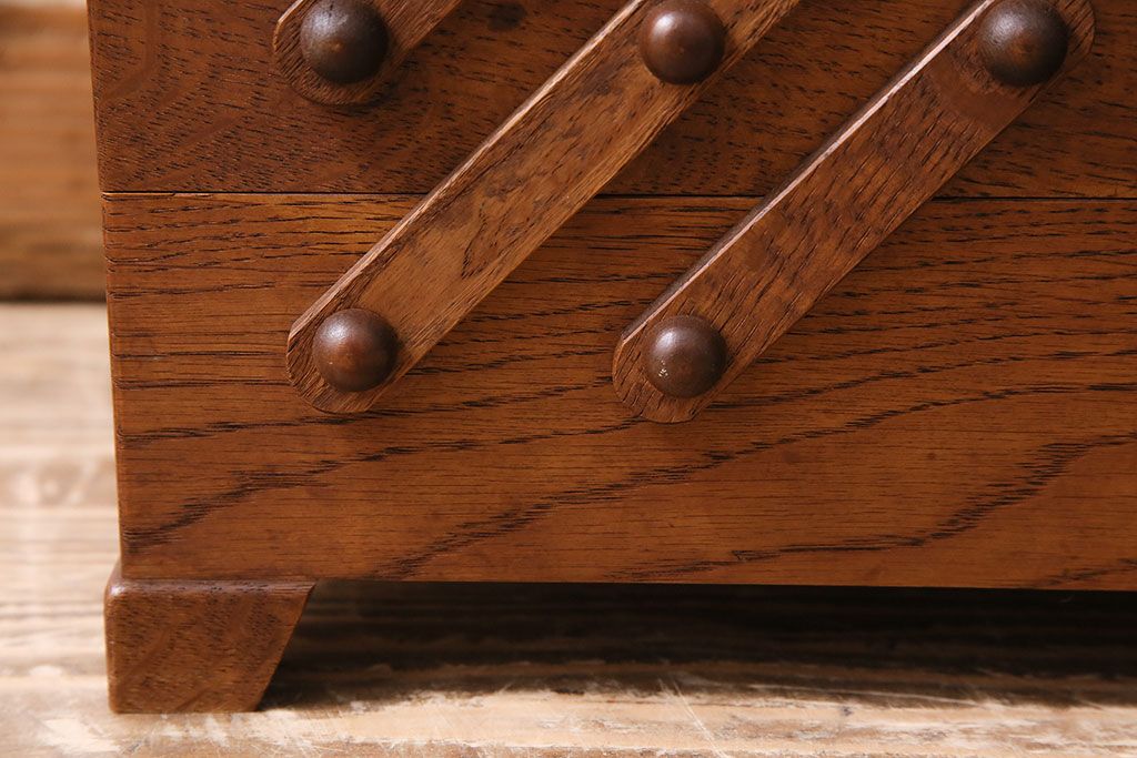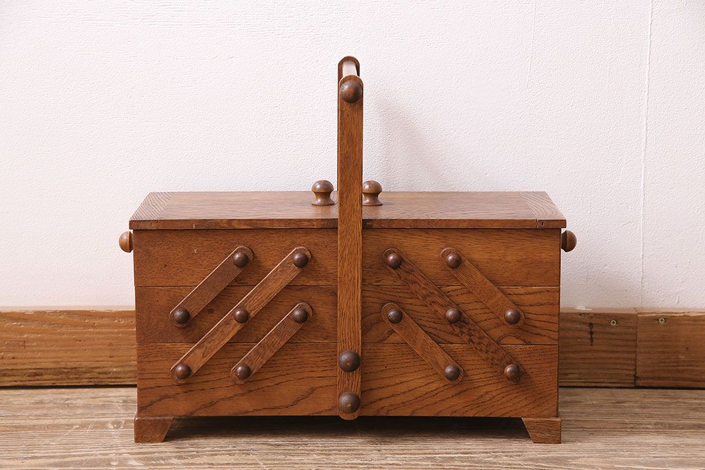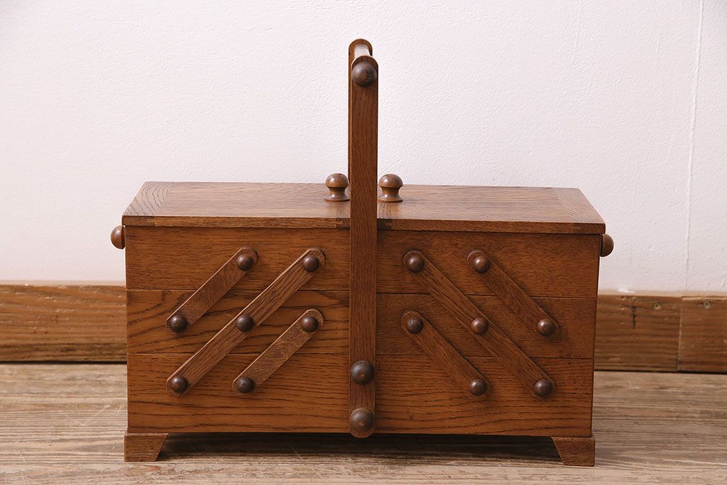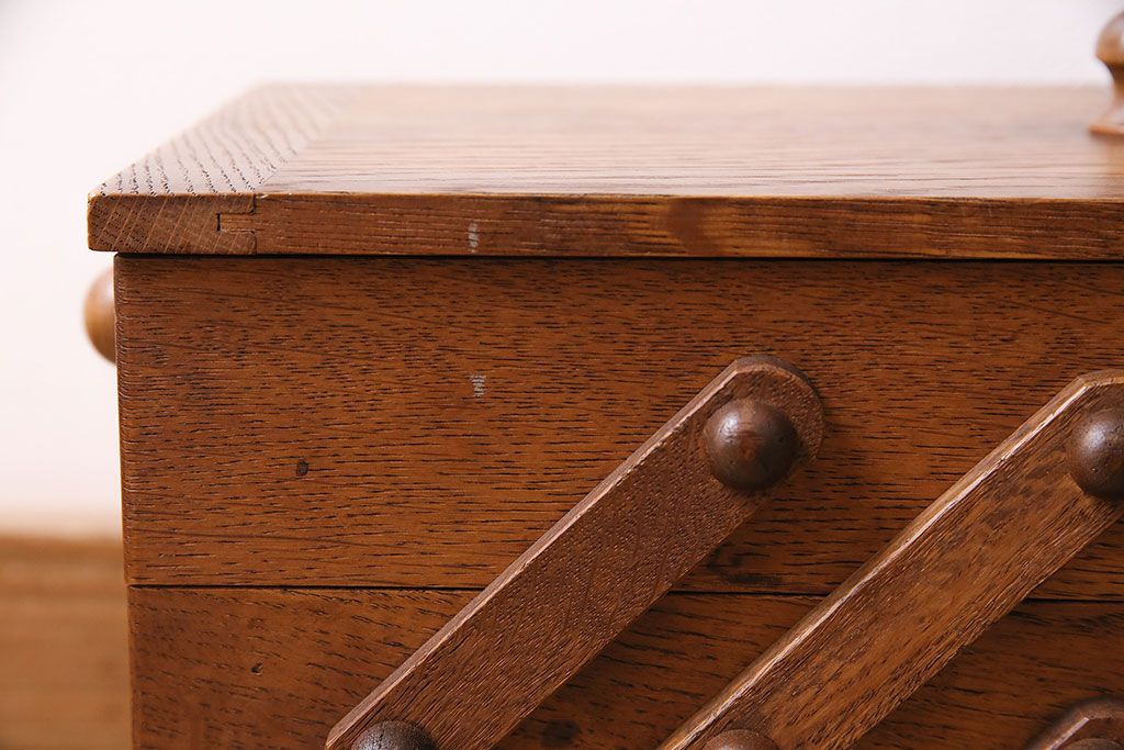民芸家具 > アンティーク雑貨 松本民芸家具 絶版品!希少! 木の温もりを感じる脚付きソーイングボックス(針箱、裁縫箱)(R-047377)