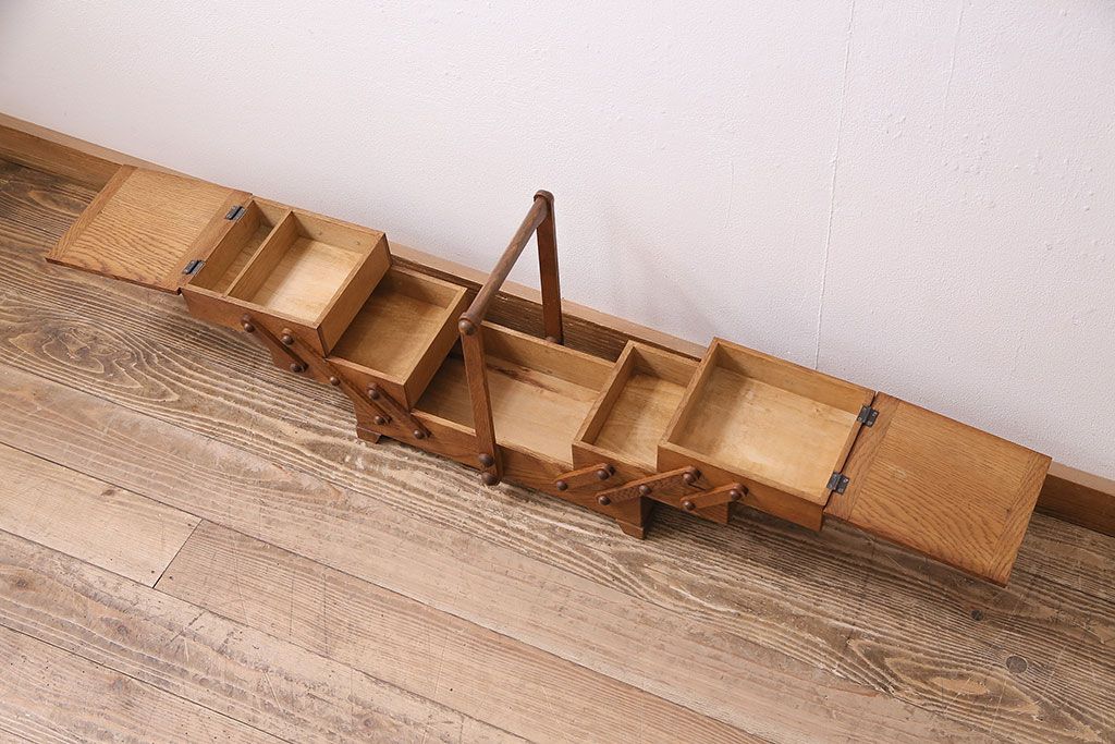 雑貨 > アンティーク雑貨 松本民芸家具 絶版品!希少! 木の温もりを感じる脚付きソーイングボックス(針箱、裁縫箱)(R-047377)