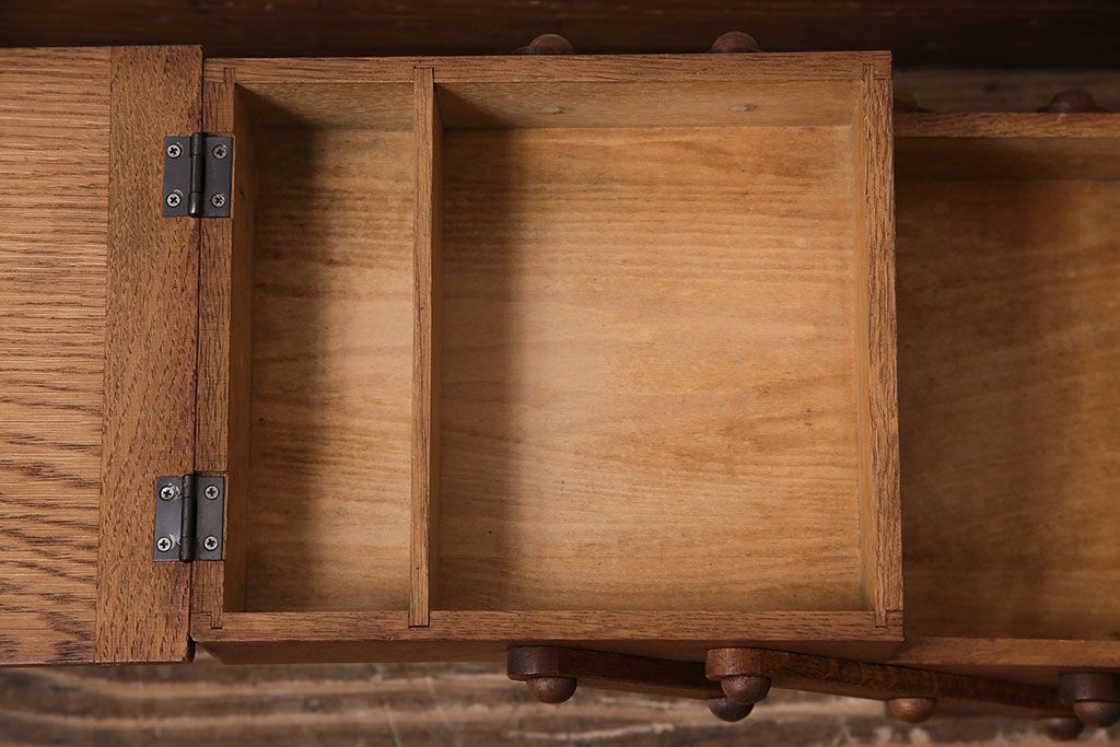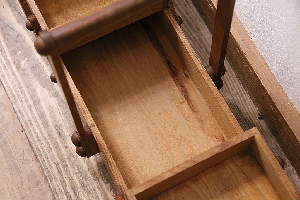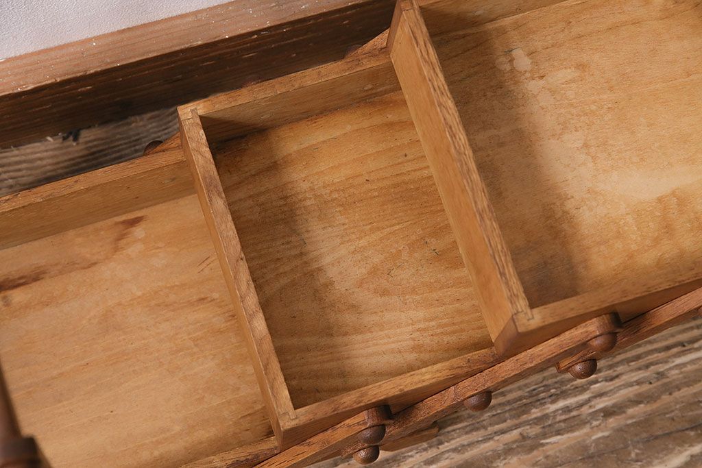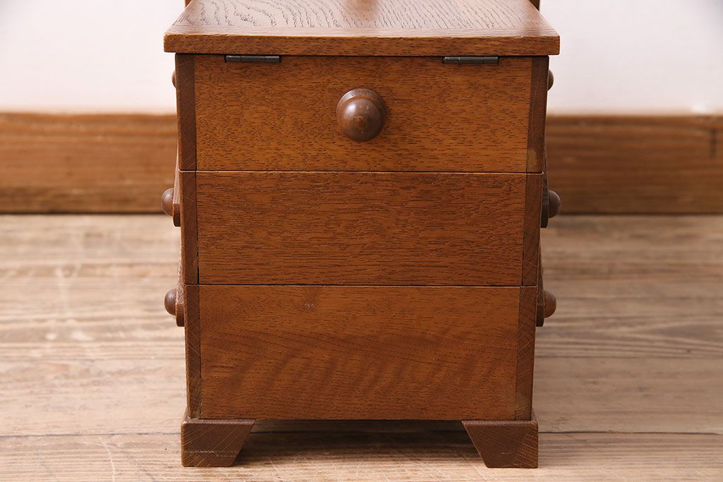 小物収納・トランク> 小引き出し > アンティーク雑貨 松本民芸家具 絶版品!希少! 木の温もりを感じる脚付きソーイングボックス(針箱、裁縫箱)(R-047377)