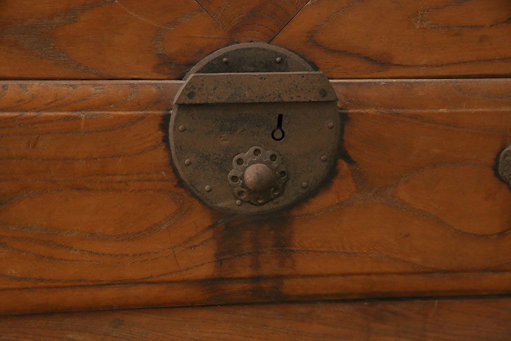 ラフジュ工房> 店長おすすめの逸品 > 和製アンティーク 前面ケヤキ材 特大サイズで迫力抜群!希少な九尺物の収納箪笥(9尺、布団箪笥、重ね箪笥、水屋箪笥、夜具箪笥)(R-047133)